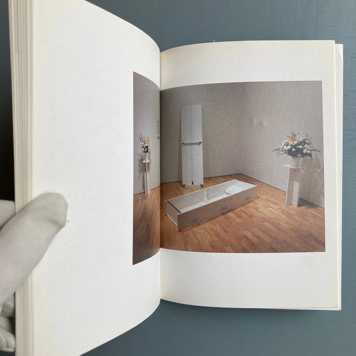 At the end of the book, we better understand the death part of the piece with the last call and the photo of the coffin with two vases. The coffin was exhibited in a museum along with other pieces from the project. The piece is called Do It Yourself Dead on Arrival (AnnLee). The back cover shows a drill, which can also be seen as a pistol.