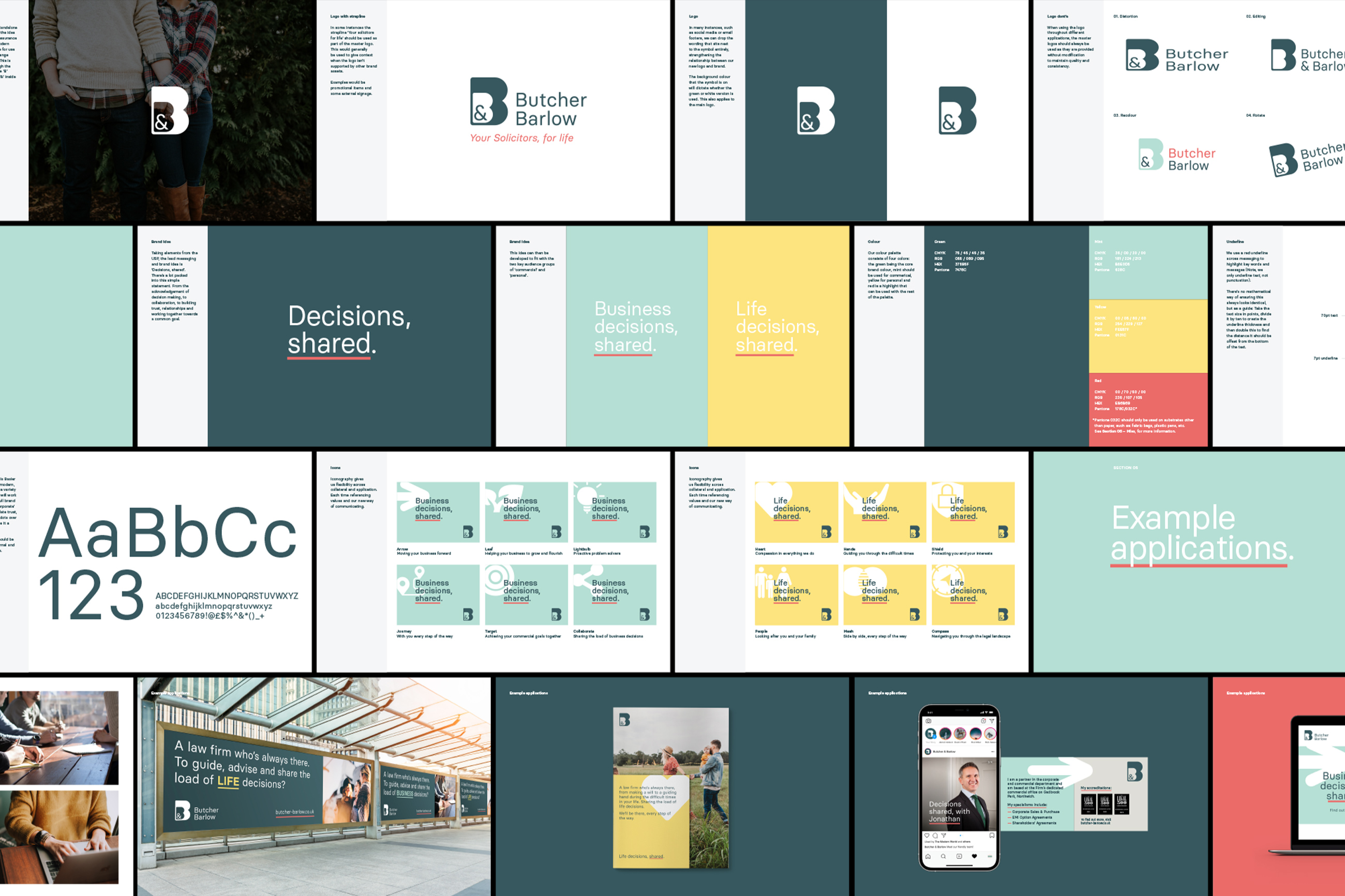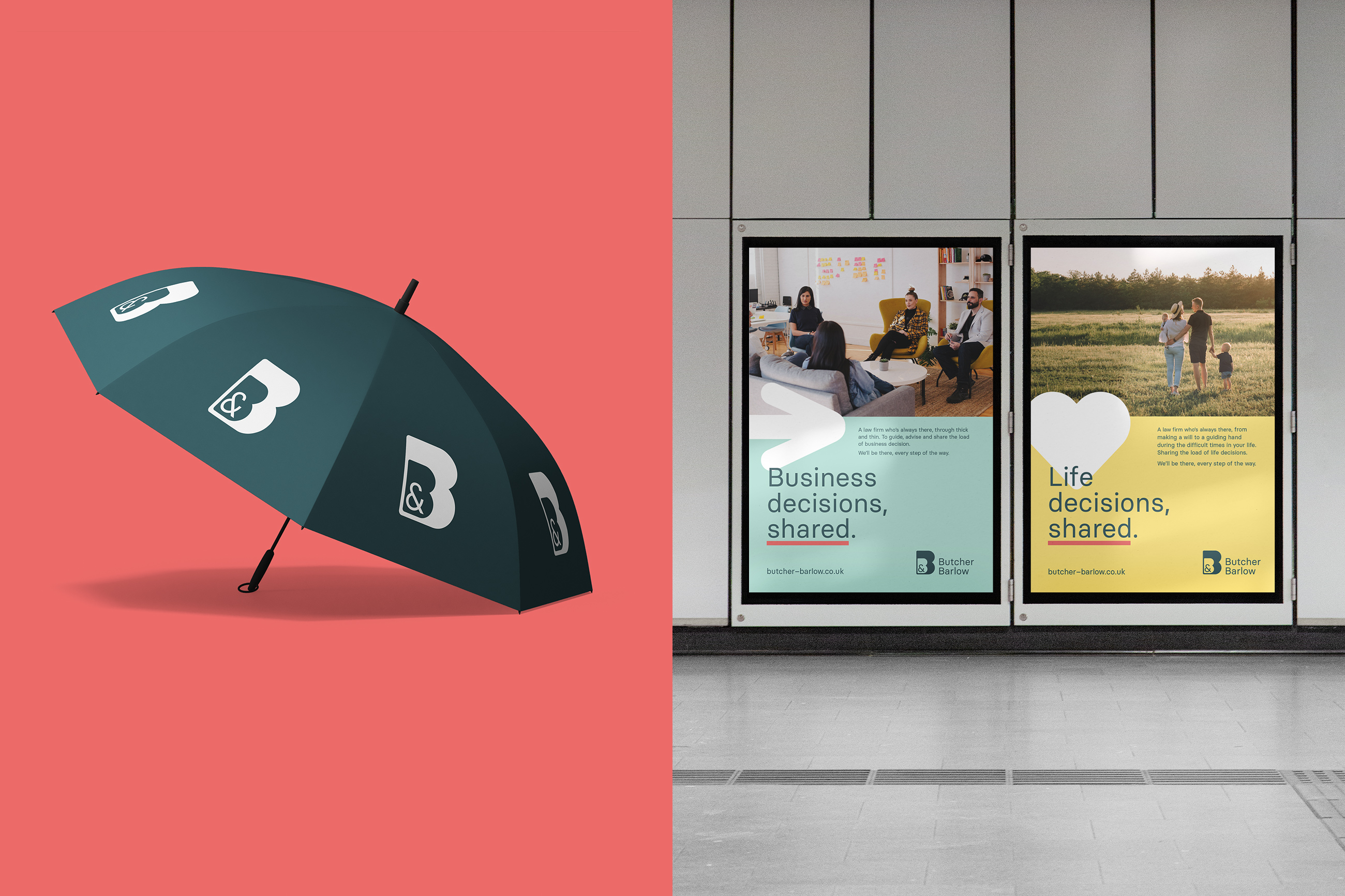 Butcher & Barlow is a law firm with the weight of 135 years of history on its shoulders, and all the corporate stereotypes that come with it. But as generational change happened internally to promote younger and more entrepreneurial partners, the firm needed to reflect that externally. That meant a modern identity that echoed the more relatable and personable direction the firm wanted to head in. The symbol, featuring an outer protective B enclosing an inner B, symbolised trust and reassurance.