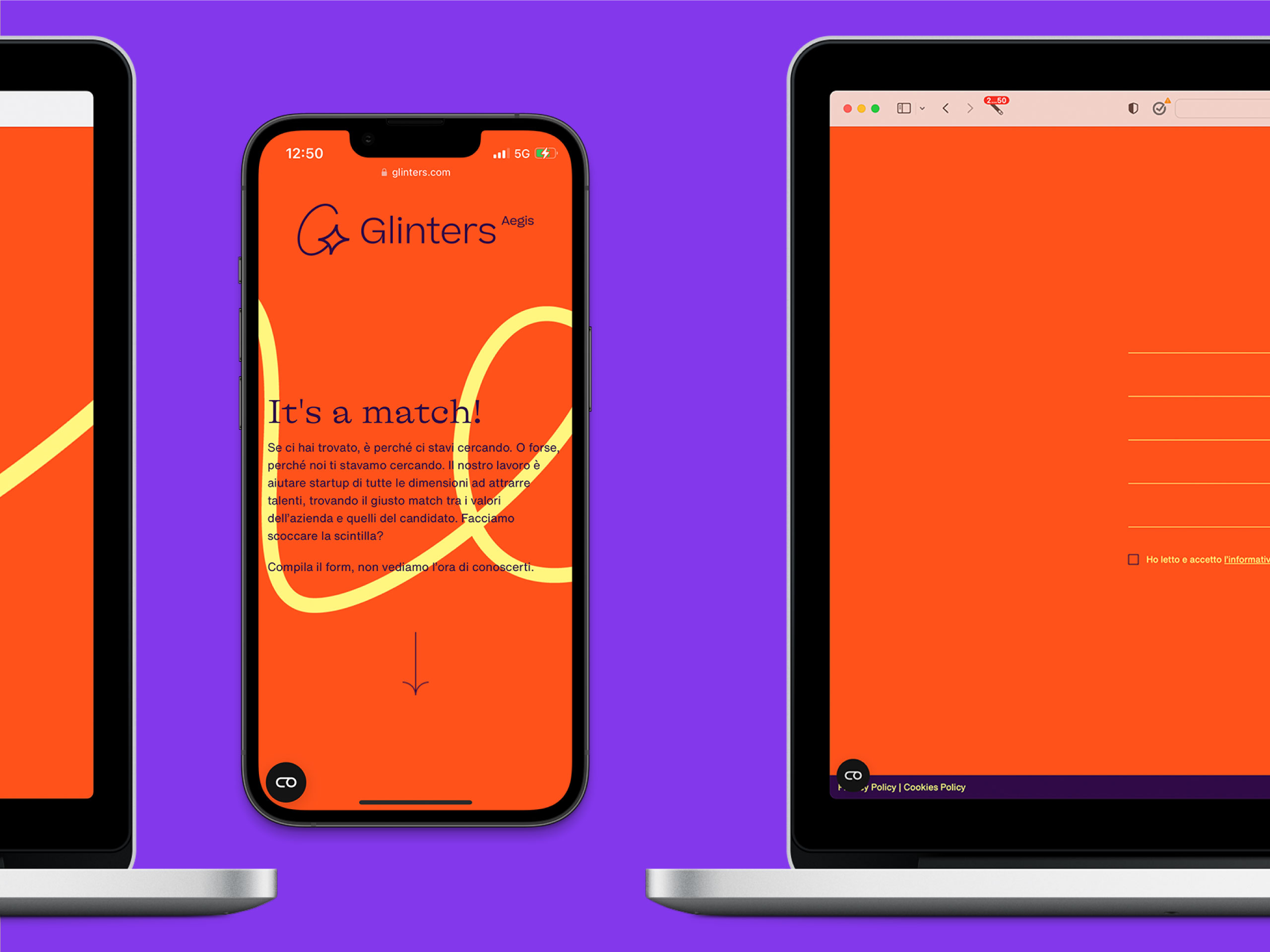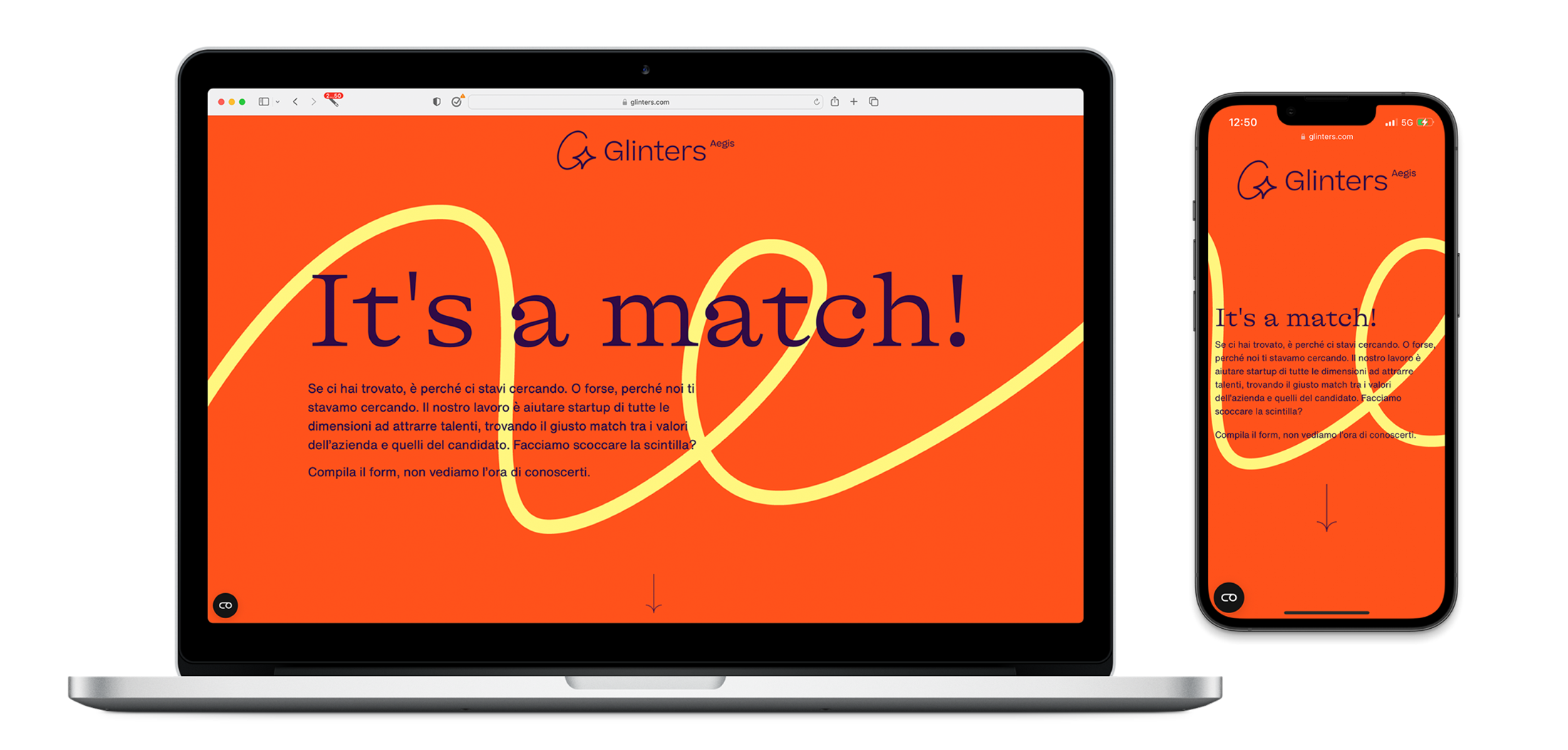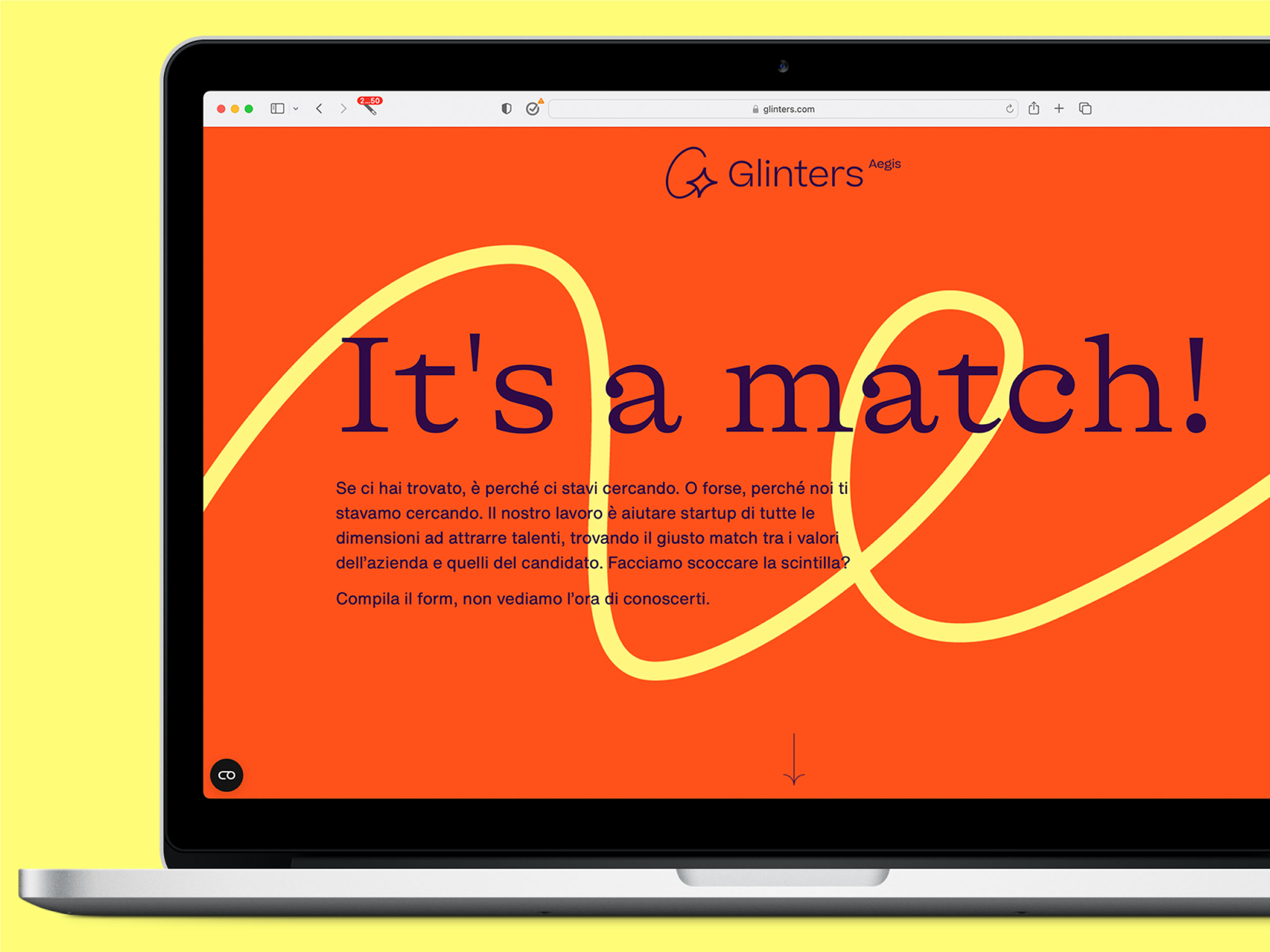 Following this funding aspect of their work, the monogram is a stylization of the G incorporating a spark, chosen as an element capable of telling the company’s innovative method. A method that simply works, as if by magic. The spark also synthesizes the candidates’ talent, Glinters’ intuition and the beginning of an effective relationship.