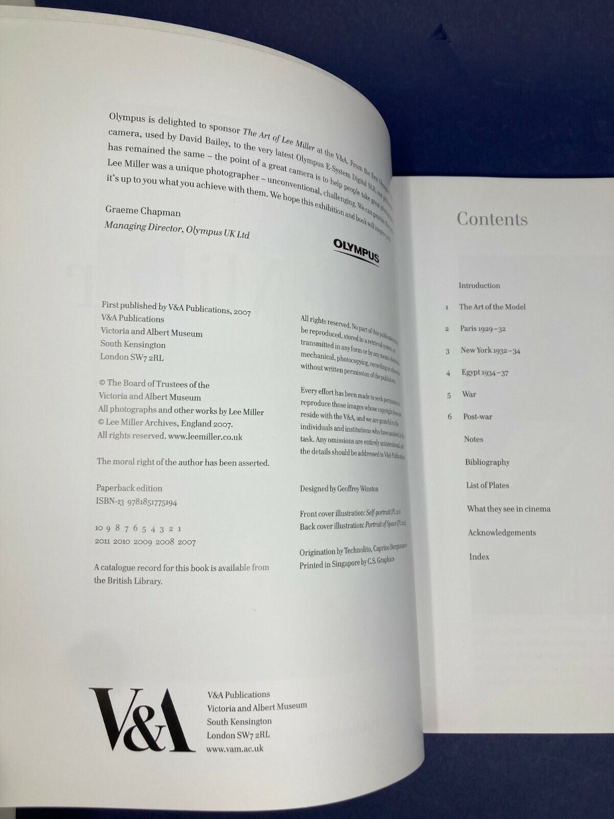 This monograph of American photographer Lee Miller (1907–1977) was published on the occasion of an exhibition shown at the V&A South Kensington from 15 September 2007 to 6 January 2008. It was edited by Mark Haworth-Boothand and published by V&A Publications, and in the USA by Yale University Press.