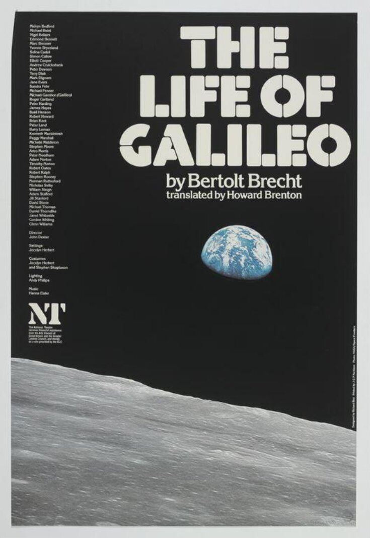 Poster for Bertolt Brecht’s The Life of Galileo as performed by the National Theatre under the direction of John Dexter. According to the National Theatre Archive, this production premiered in August 1980. (The record in V&A’s Theatre and Performance Collection dates it to August 1986.)