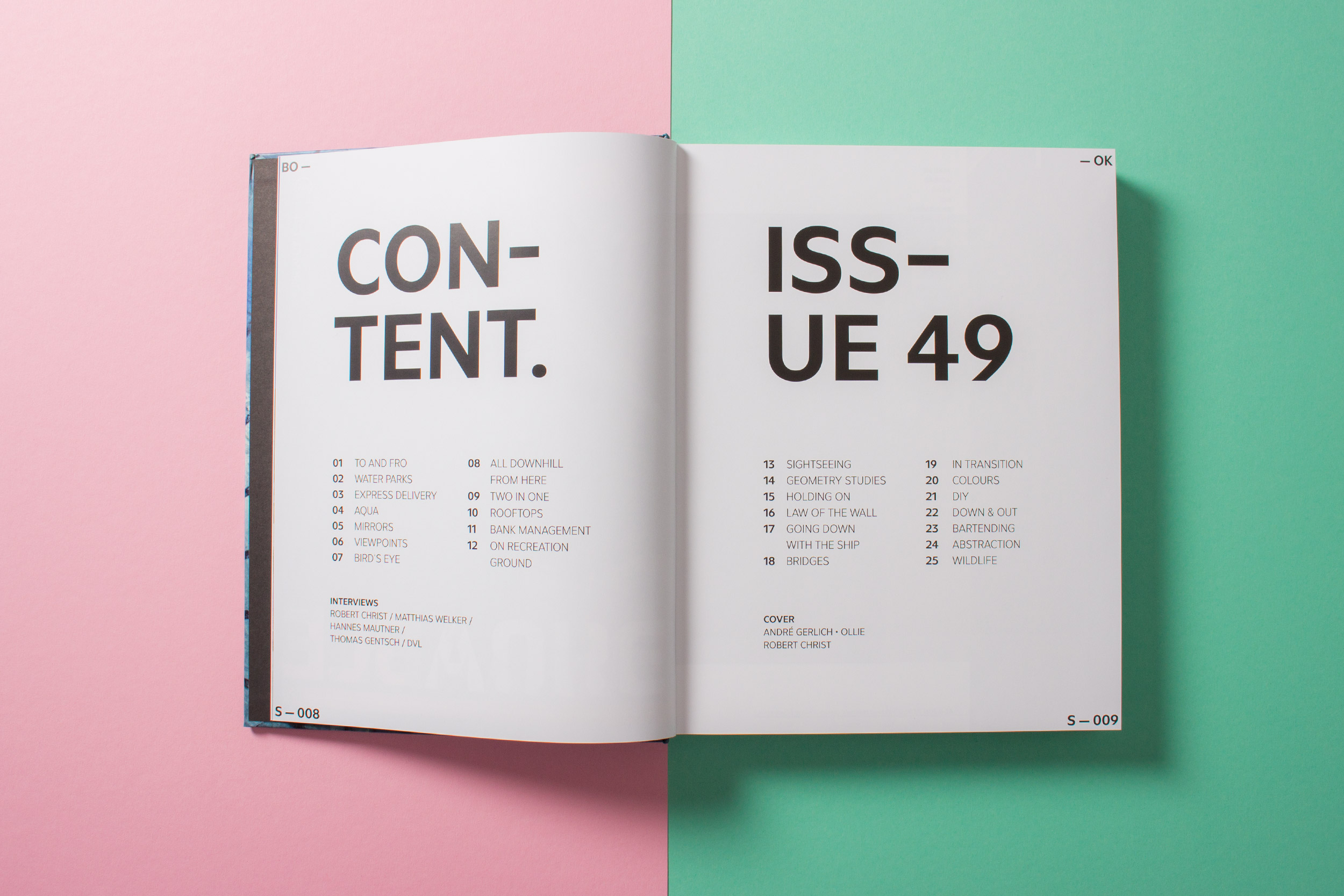 Art director Stefan Gottwald chose a combination of typeface families Spitzkant and Ardena by Julien Fincker for this year’s issues. The typefaces are combined in very different and playful ways for headlines and body text. Each article gets its own look and feel, in a very modern and high-class way.