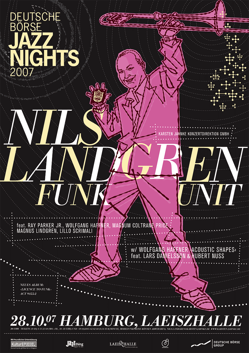 JazzNights, Season 9 Contributed by Stephen Coles on Dec 27th, 2013. Artwork published in 2007. Source: www.gigposters.com License: All Rights Reserved. Illustrations by Guy Burwell. Source: www.gigposters.com License: All Rights Reserved. Typefaces More about Bodoni-AntiquaGet Bodoni-AntiquaMore about Akzidenz-Grotesk CondensedGet Akzidenz-Grotesk Condensed Formats Posters/Flyers (5879) Topics Event (3291) Music (6457) Designers/Agencies mitchum d.a. (6) Tagged withjazz (496)concert & gig posters (525)Nils Landgren (1)concerts (121)Deutsche Börse JazzNights (3)alternating glyph colors (298)series (1189)Al Jarreau (1)trombones (17) Artwork location Germany (3930) Hamburg (305) Post a comment Name Email – will not be published Website Your response Submit Comment More Akzidenz-Grotesk Condensed in use s.Oliver Würzburg2018Contributed by Matthijs Sluiter Supertypes! For the Power of Typography2014Francisco RocaCarolina SáenzCátedra LonginottiContributed by Francisco Roca Percy Faith and his Orchestra – Subways Are For Sleeping album art1961Photo(s) by Bart Solenthaler on Flickr. Sponsor More in Music The Bird Yellow – “The Place We’re In” single2020Ignasi Àvila PadróContributed by Ignasi Àvila Padró Manu Dibango – Mélodies Africaines, Vol. 21984Danièle PinotContributed by Matthijs Sluiter Twogether – A couple of Times album art1973VISCO-StudiosManfred SpiesContributed by Nick Sherman No Sanctuary, Blessure, Detached and Filature concert flyer2023brique noireContributed by Ludovic Boy More in Posters/Flyers T. Rex “Bolan Boogie” tour posters1973Mama ConcertsContributed by Florian Hardwig And Architecture2019Studio GangplankContributed by Ganplank Botanical Becontree by Uriel Orlow2022In The Shade Of A TreeContributed by 205TF Tierschutzfestival2016unknownContributed by Florian Hardwig More Fonts In Use Dumbo Feather Magazine, Issue 272011Chase & GalleyContributed by Stephen Coles Staff Pick The Nightwalker – Atheneum book jacket1980Lawrence RatzkinContributed by Stephen Coles Staff Pick Jacobin magazine and website2023TstoJacobinLauren Traugott-CampbellContributed by Camelot Typefaces Staff Pick What is Music? festival 20252025Clara Briones VediaMabel EstebanContributed by Alex Slobzheninov Staff Pick