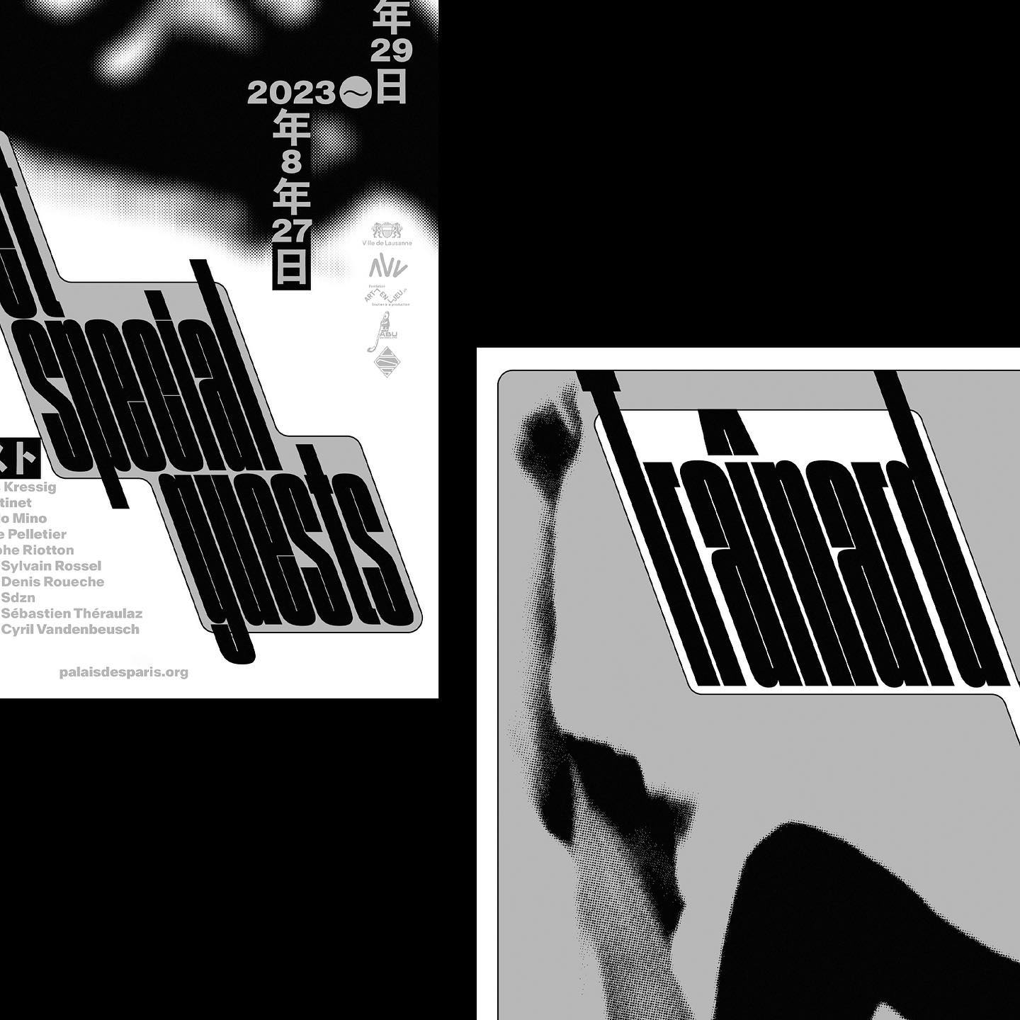 Poster design by Balmer Hählen for the exhibition Traînard, Daniel Ruggiero and special guests at Palais des Paris, Takasaki, Japan.