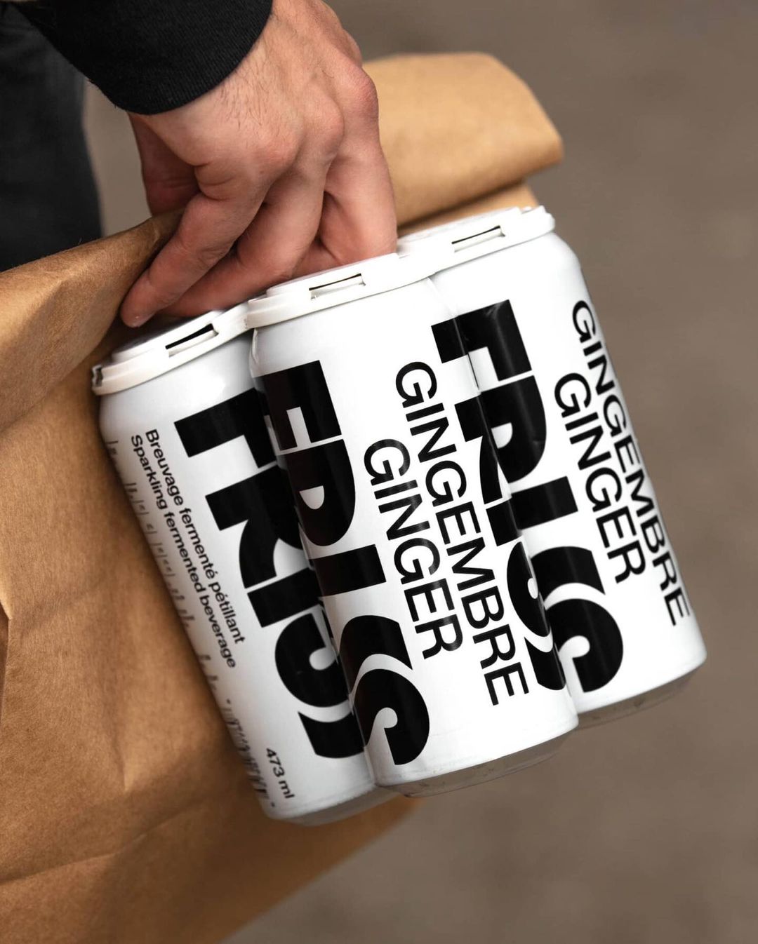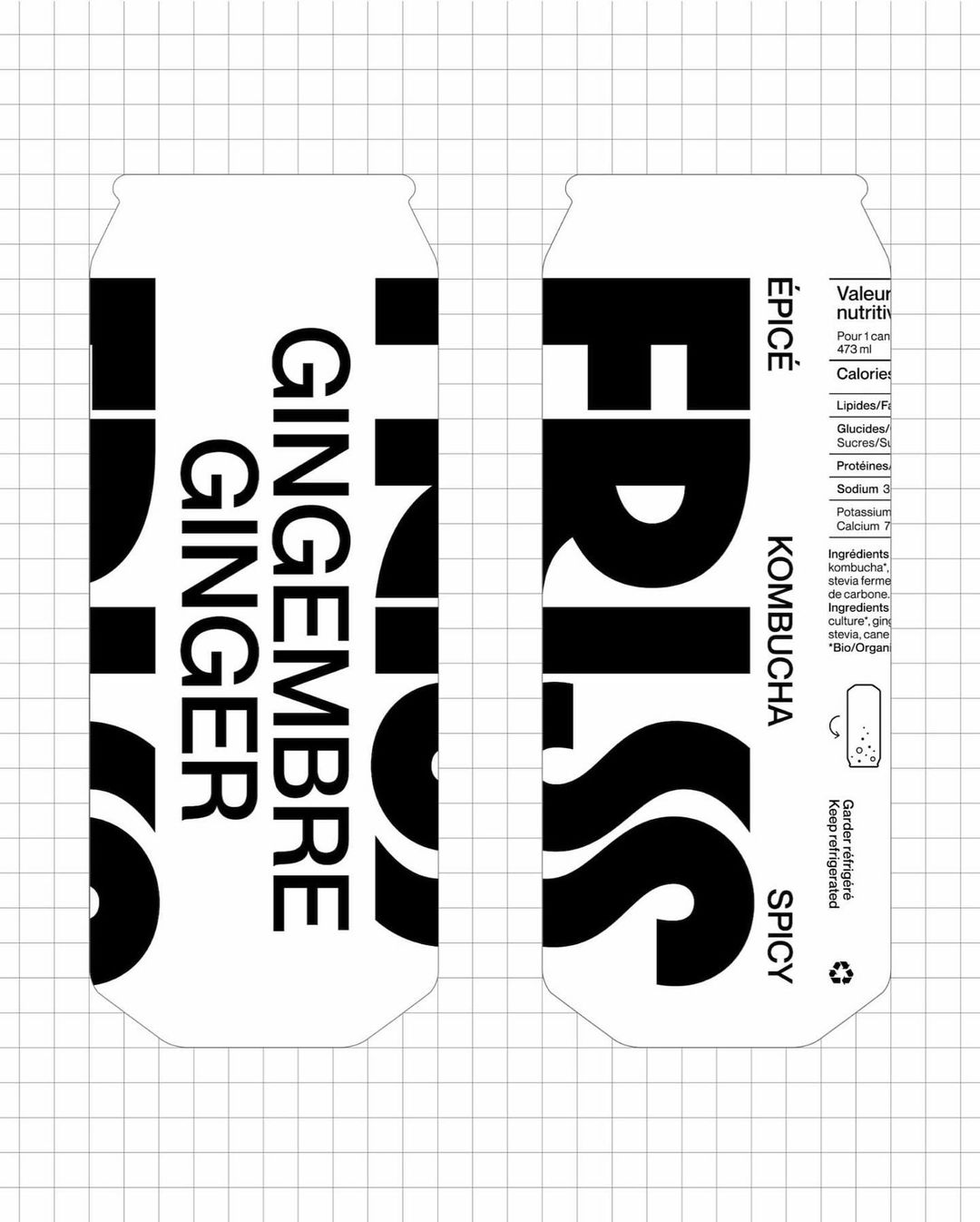 Friss is a new kombucha brand from Quebec. Studio Monozigote designed their new identity using a customised version of Herbus Bold: the logo has a modified F and SS ligature. The accompanying sans serif is the Round Dots version of Neue Haas Grotesk.