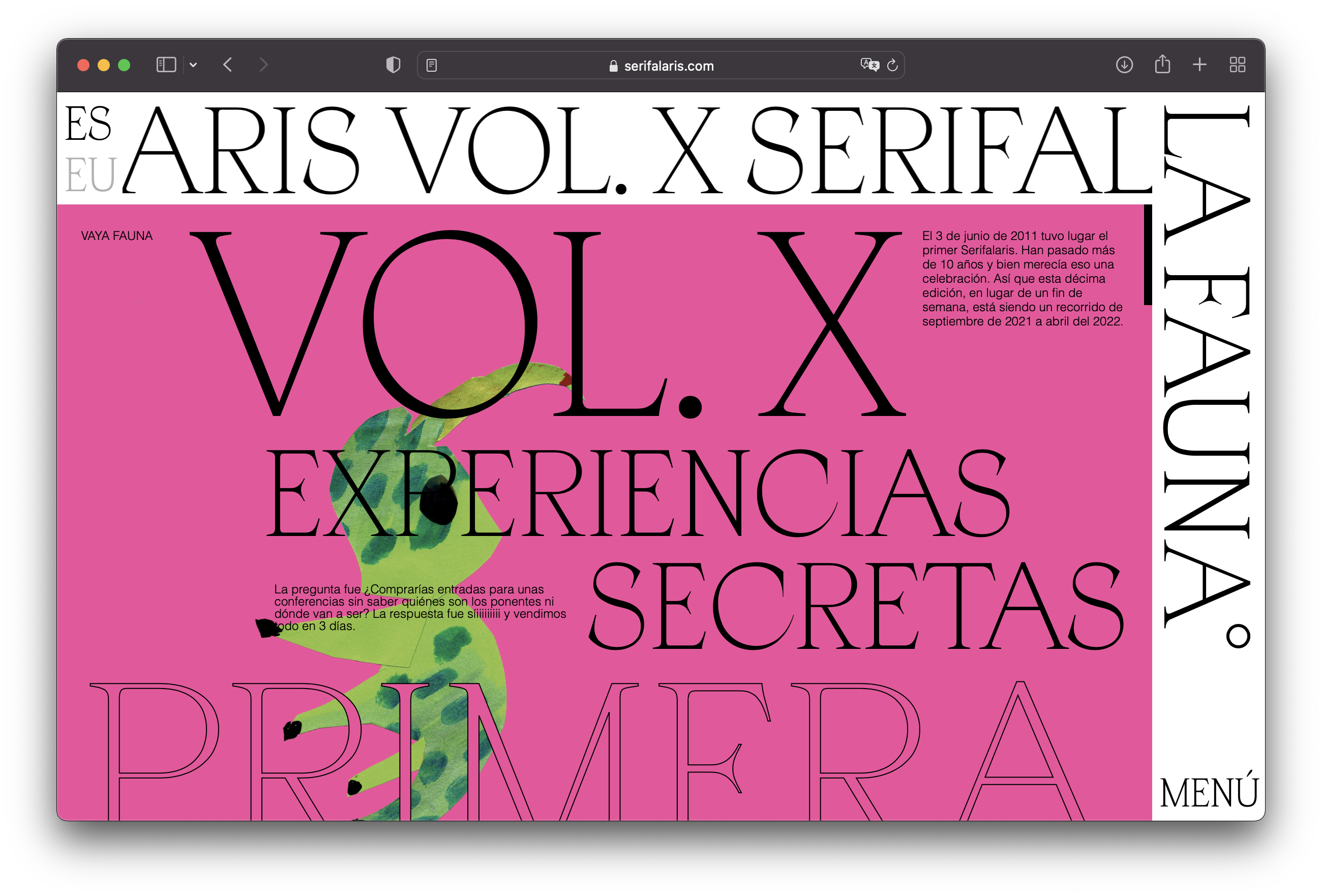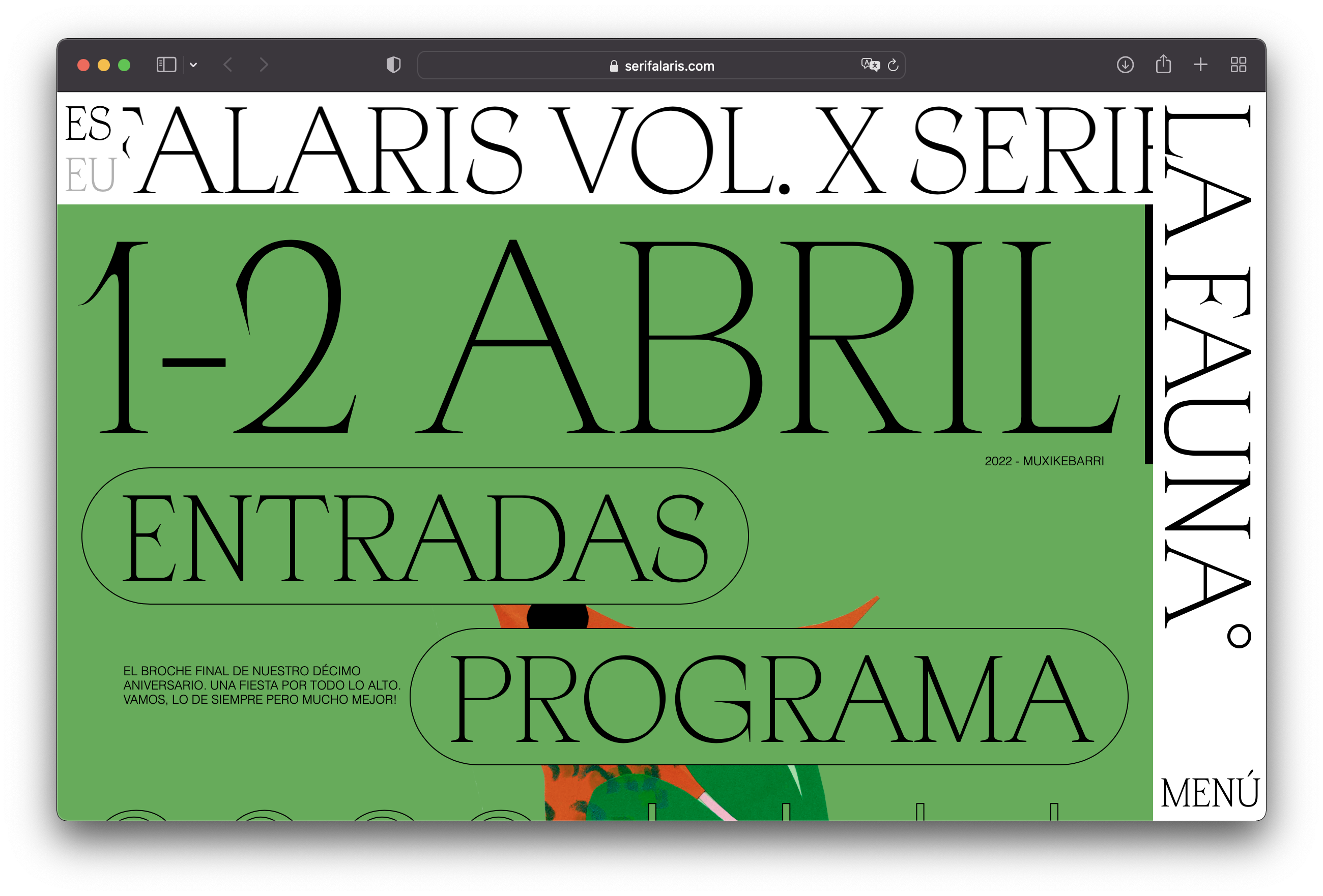 Design studios Freskue and Estudio Marina Goñi chose Apoc as the main typeface for the website of the 10th Serifa Laris design conference. From the article on type.today: