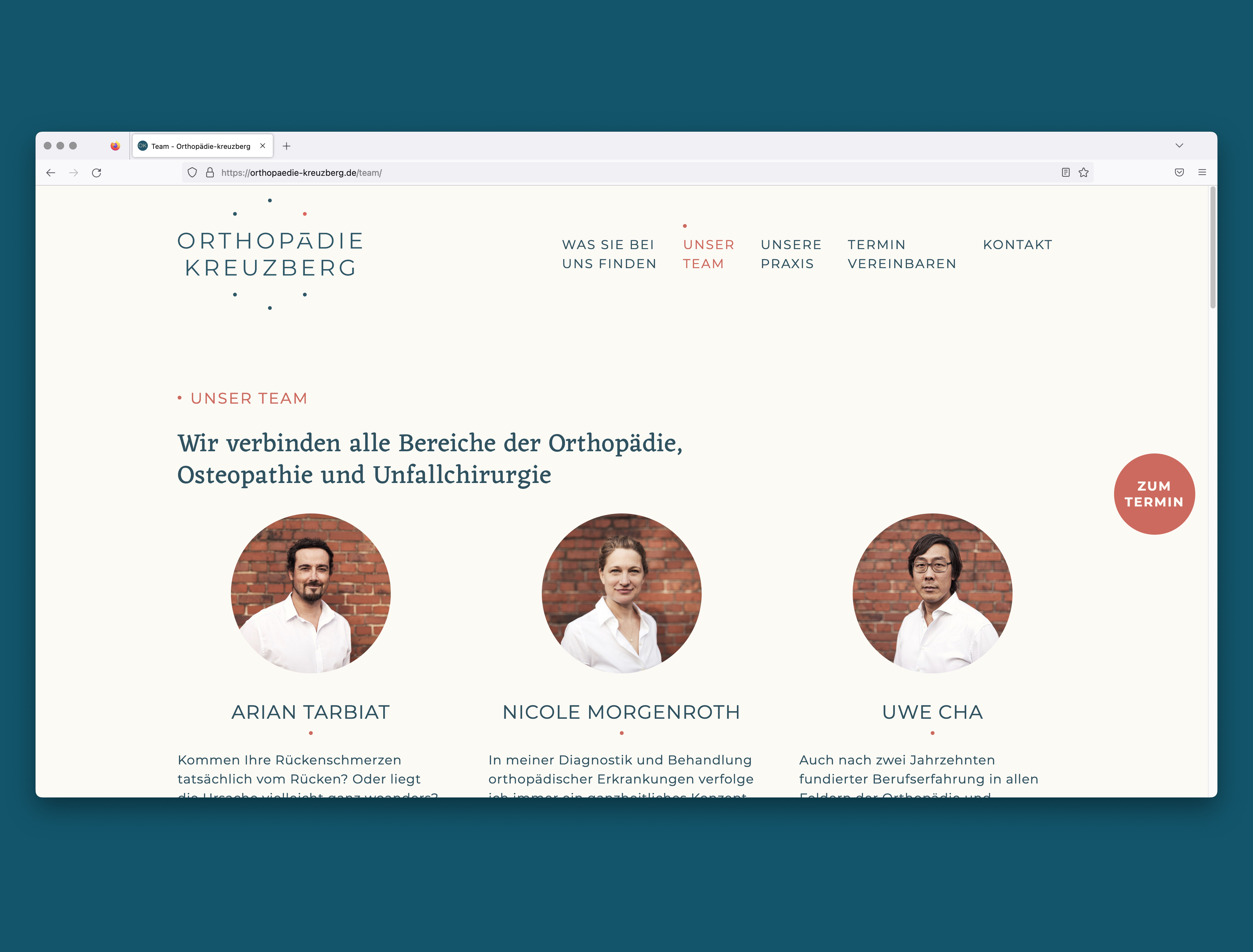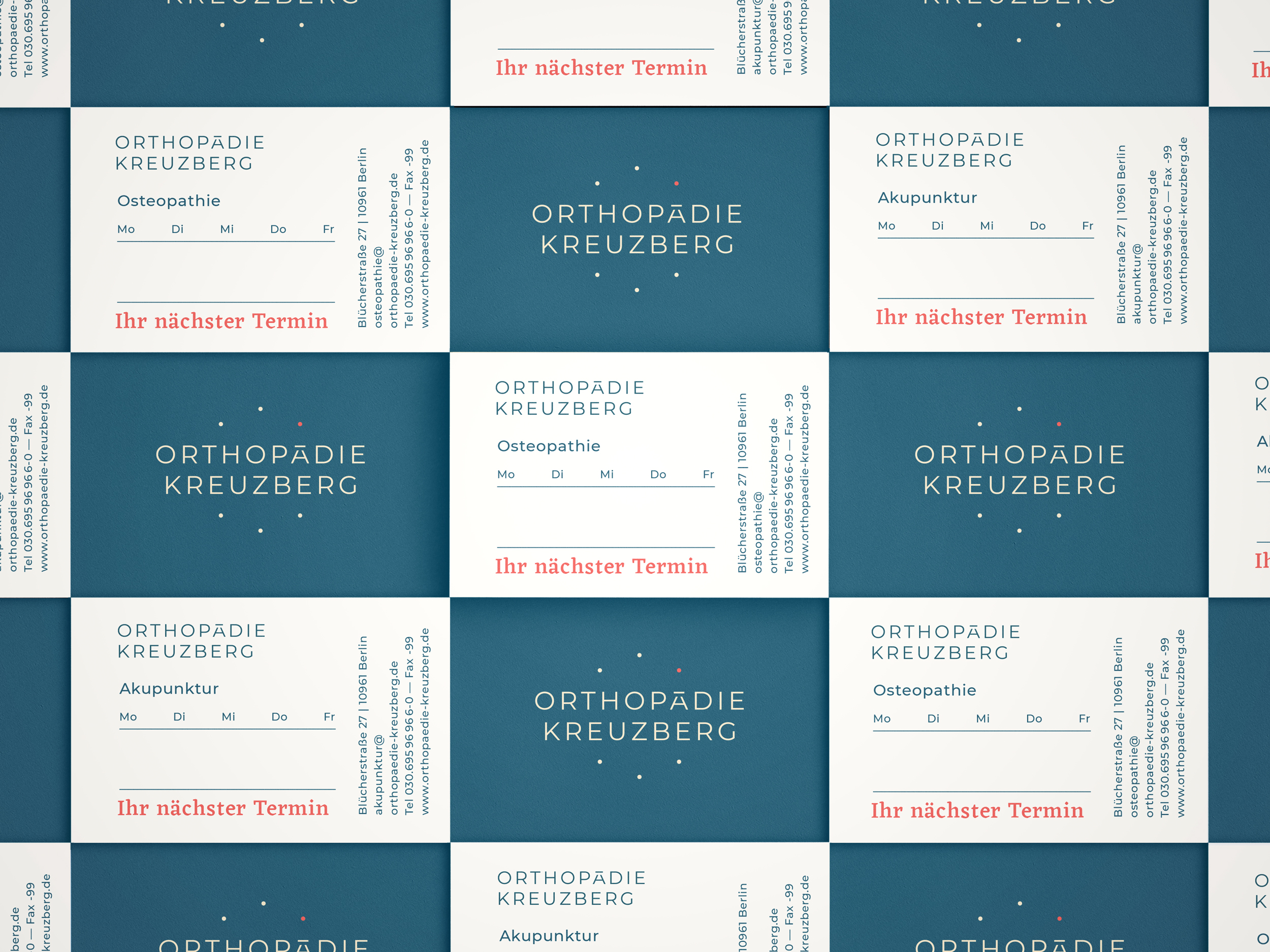Three doctors, three orientations, one practice. That is the orthopedic practice Kreuzberg. Here, orthopedics is combined with osteopathy and trauma surgery. Close, attentive and at the cutting edge of medicine. The two fonts combine exactly these aspects. The liveliness and human closeness is embodied by Eczar, while Montserrat stands for the clarity and straightforwardness of the latest standards. The result is a corporate that focuses on the three founders and the three orientations of the practice.