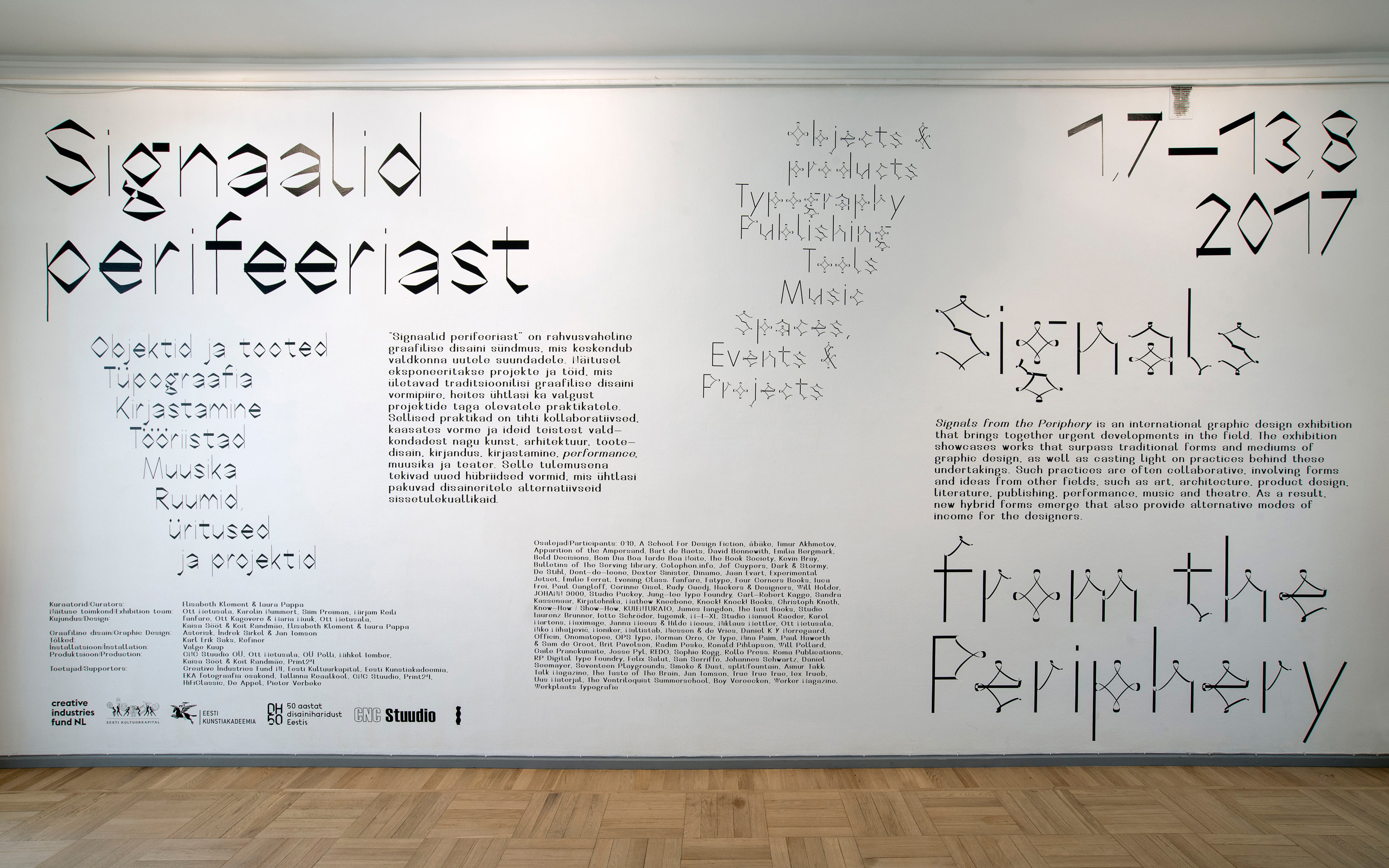 Signals from the Periphery was an international graphic design event that took place in 2017 at the Tallinn Art Hall in Estonia. The project brought together urgent developments in graphic design with a focus on practices that extend the field. These practices often expand into other cultural fields, while creating new hybrid forms, as well as seeking out new economic models to sustain themselves.