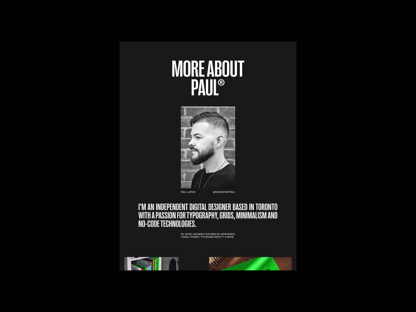 Paul Lapkin’s recently launched portfolio website features Right Grotesk and Neue Montreal, both available from Pangram Pangram. Paul is a Toronto based digital art director and designer, passionate about typography, grids, minimalism and no-code technologies: