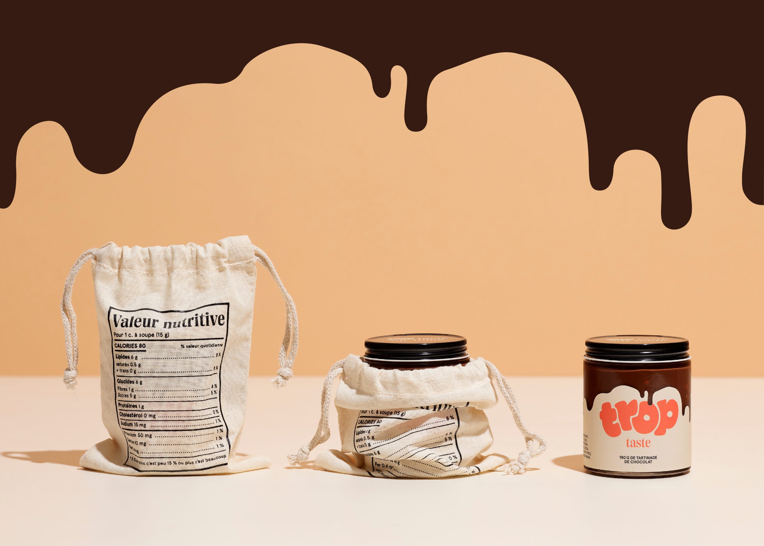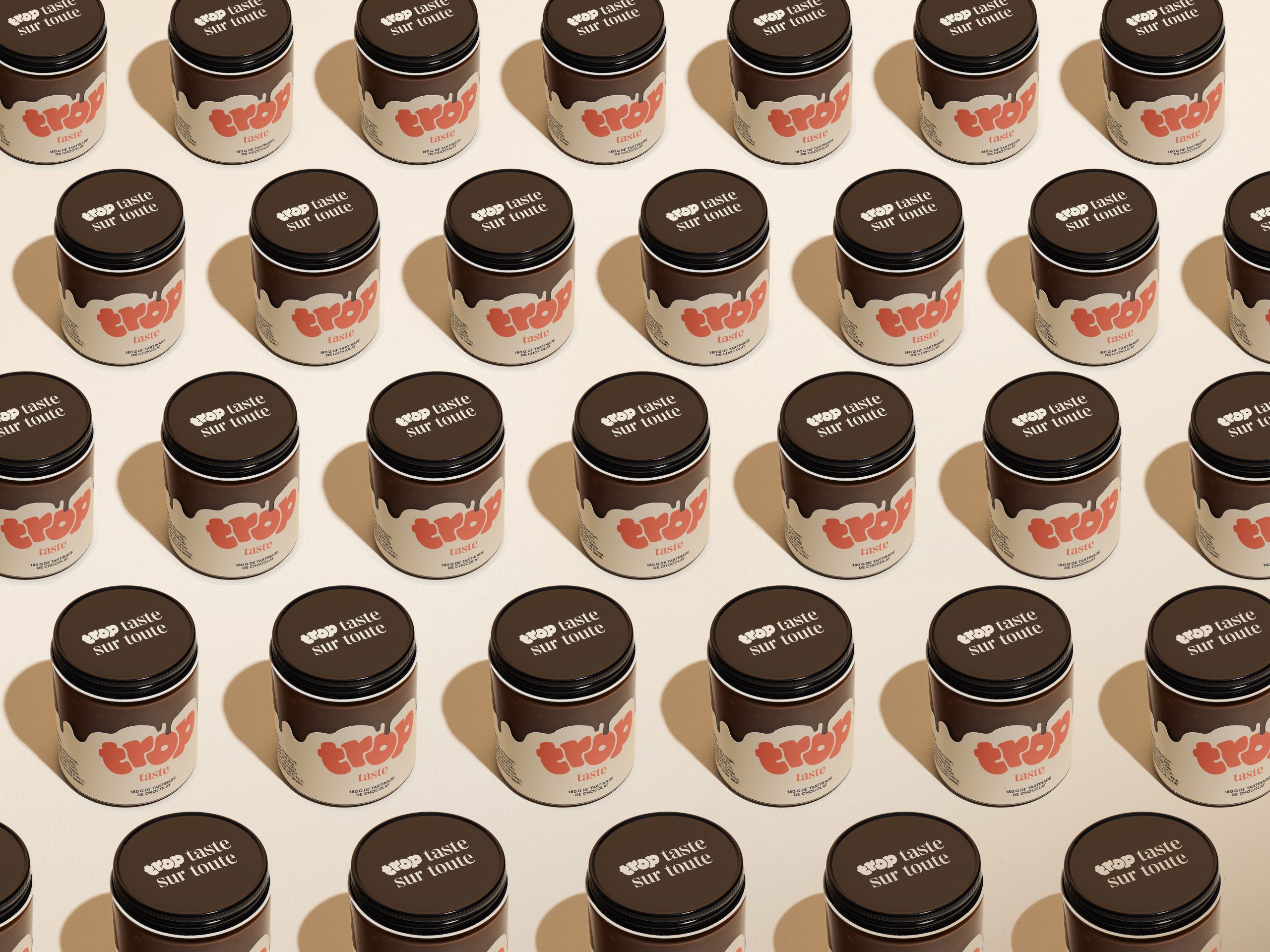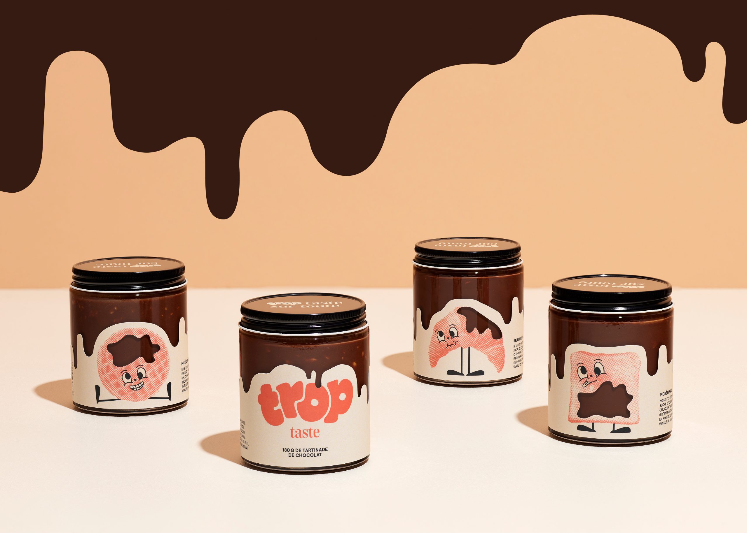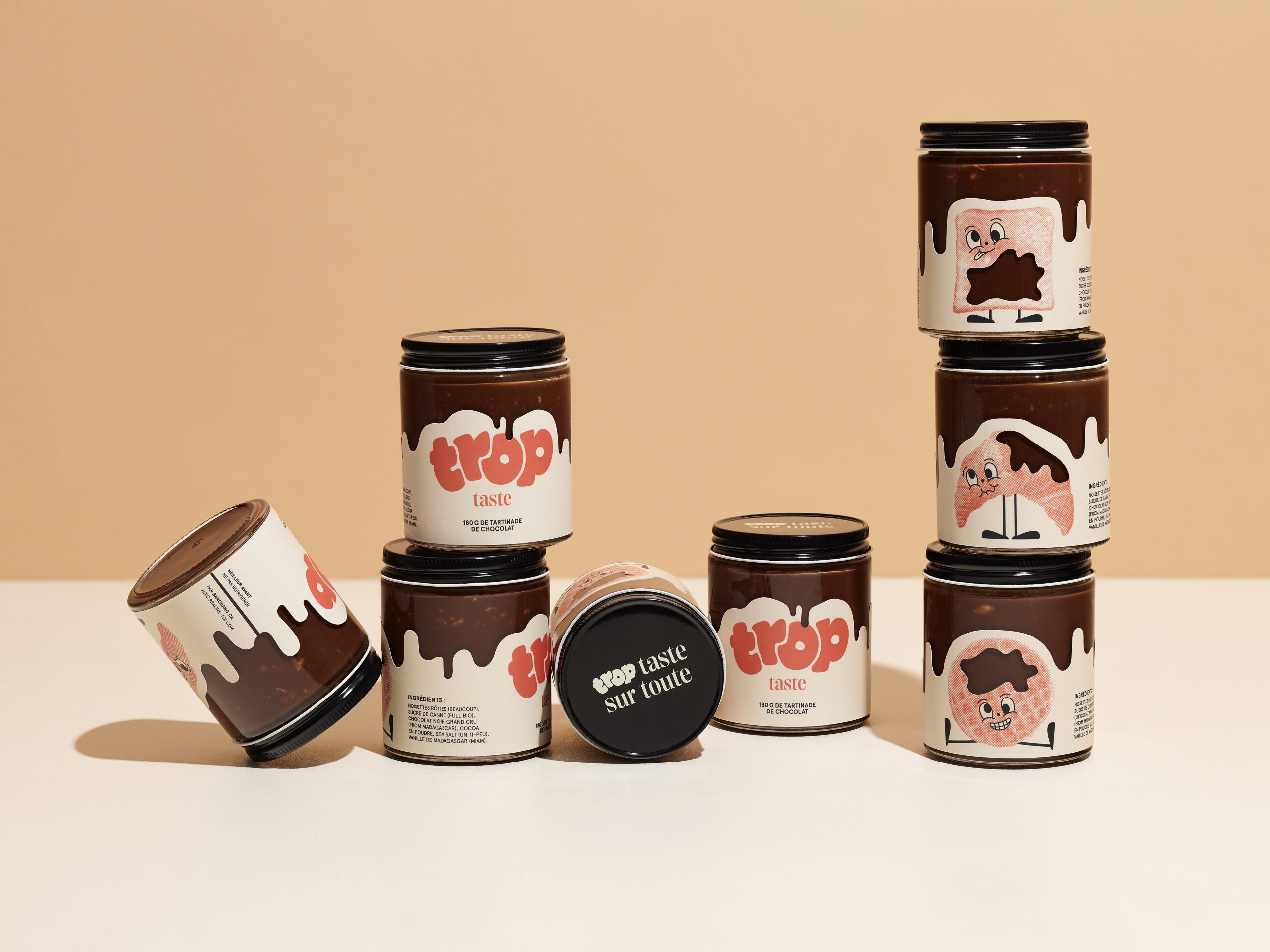 For the 3rd consecutive year, we are continuing the tradition of developing a self-promotional project in collaboration with one of our clients. This time our initiative offers 180g of really «Trop Taste» praline chocolate spread, which you can literally put on everything!!