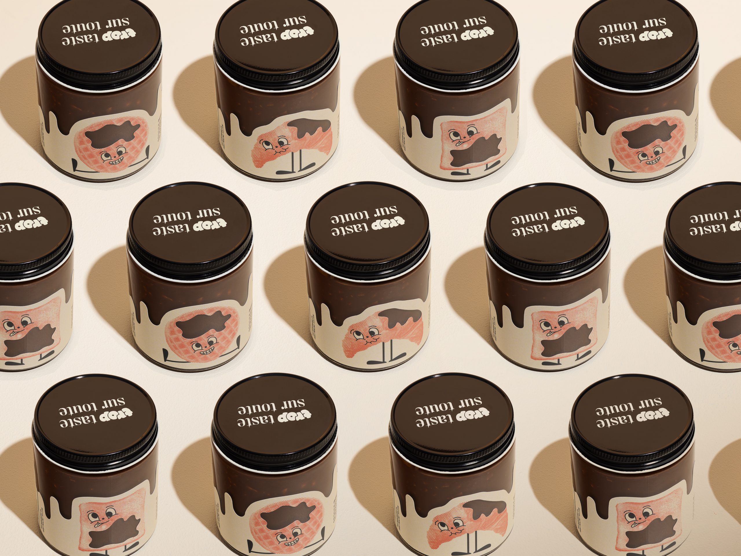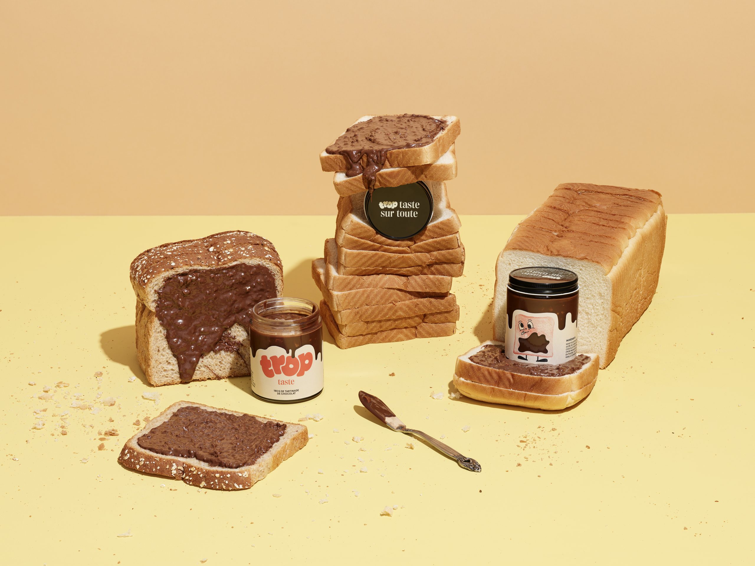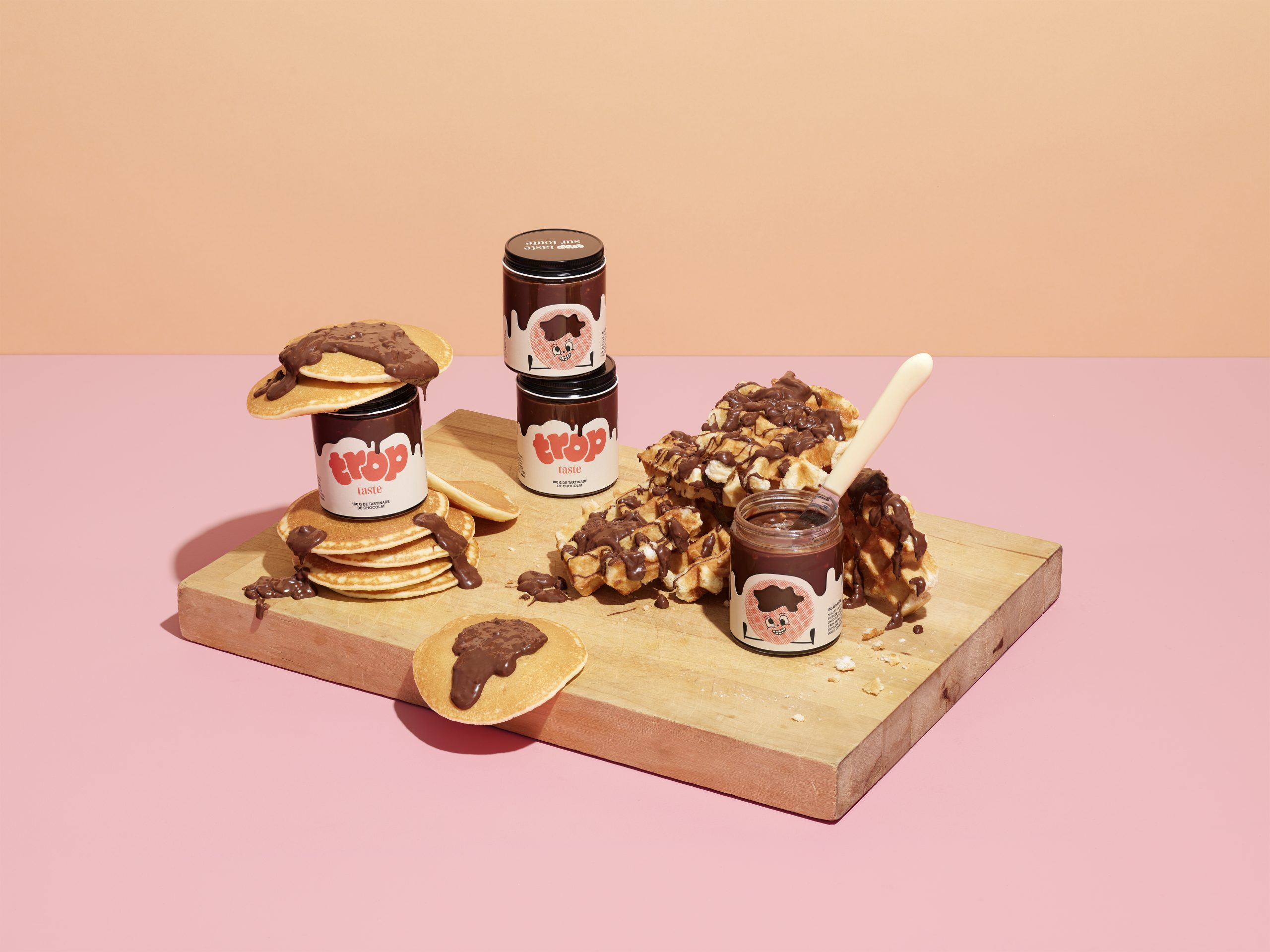For the 3rd consecutive year, we are continuing the tradition of developing a self-promotional project in collaboration with one of our clients. This time our initiative offers 180g of really «Trop Taste» praline chocolate spread, which you can literally put on everything!!