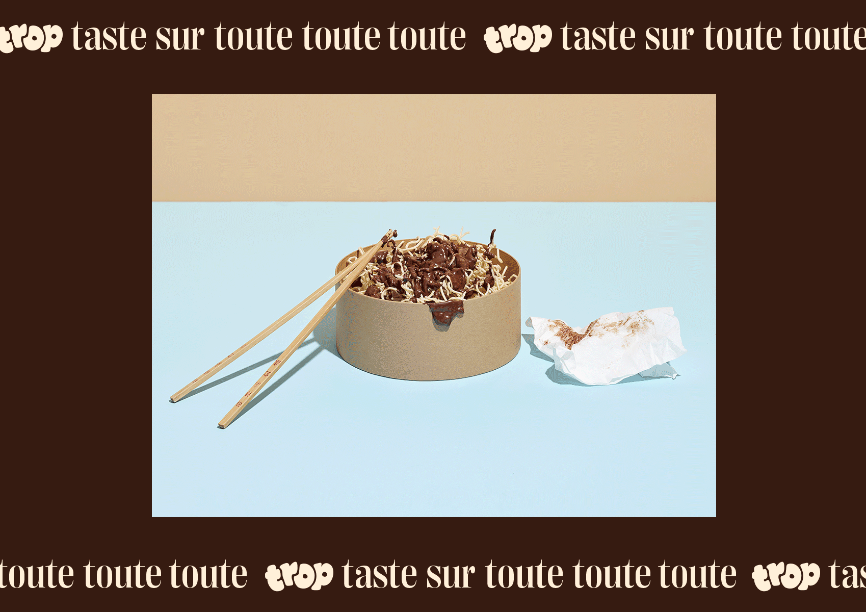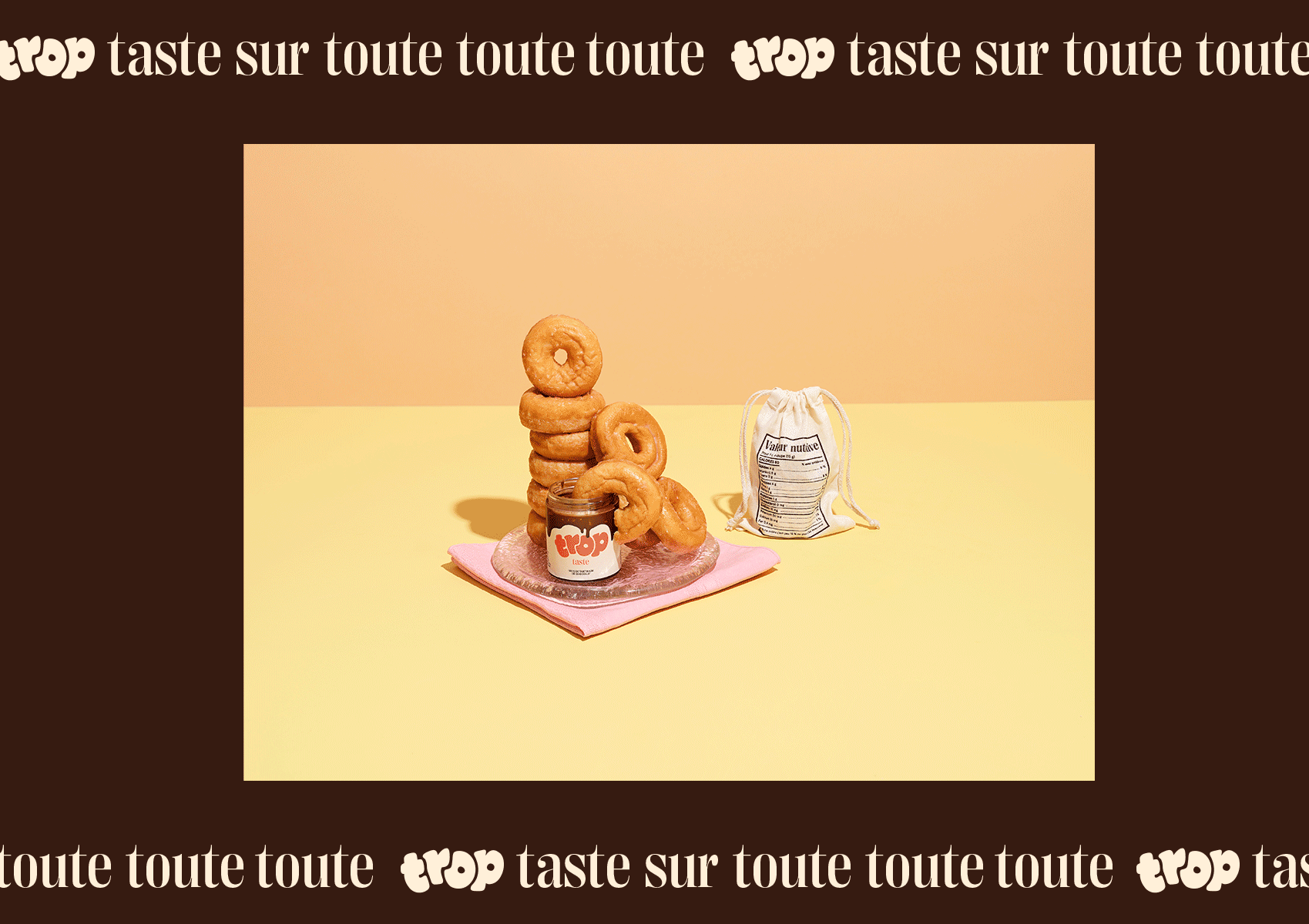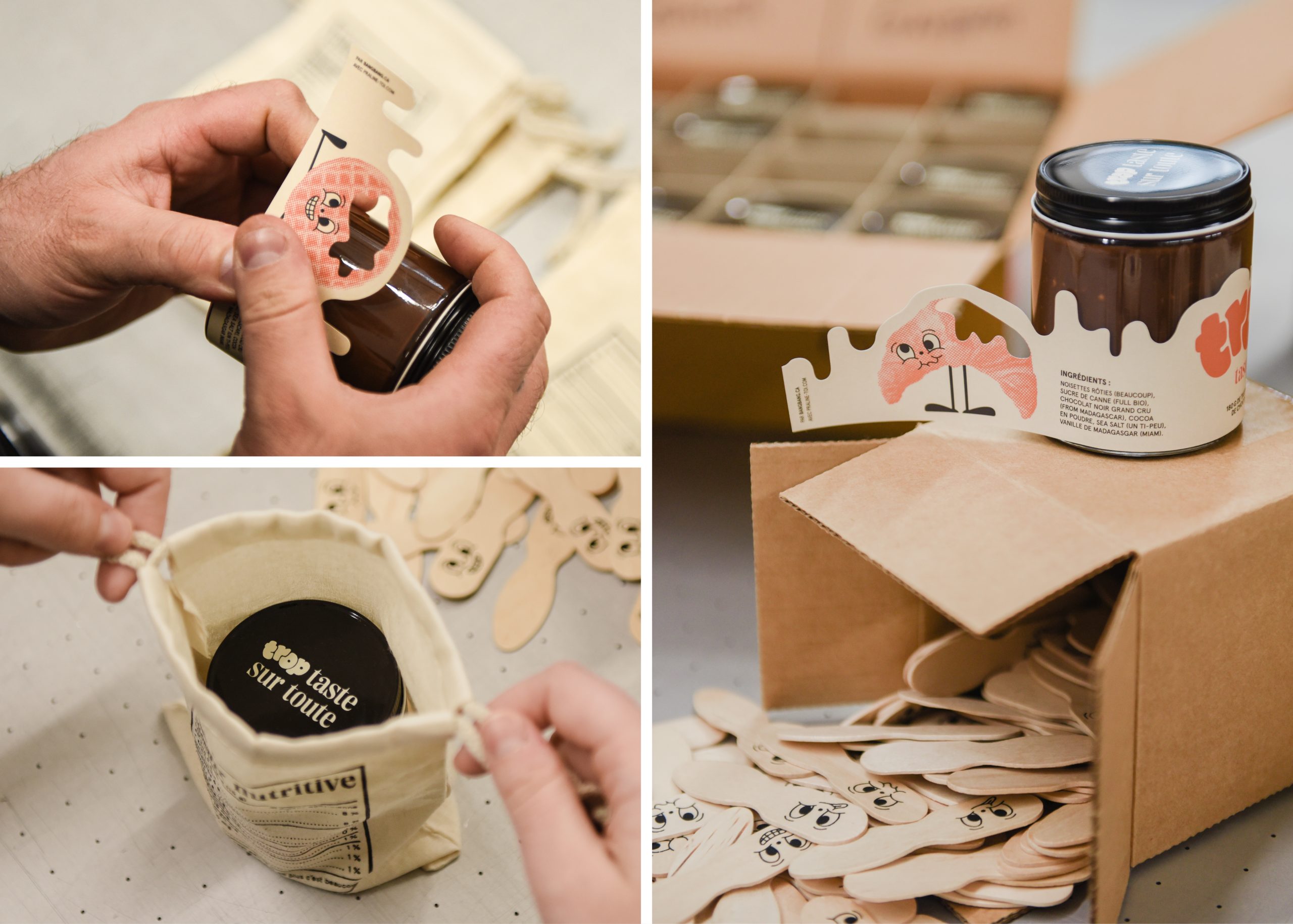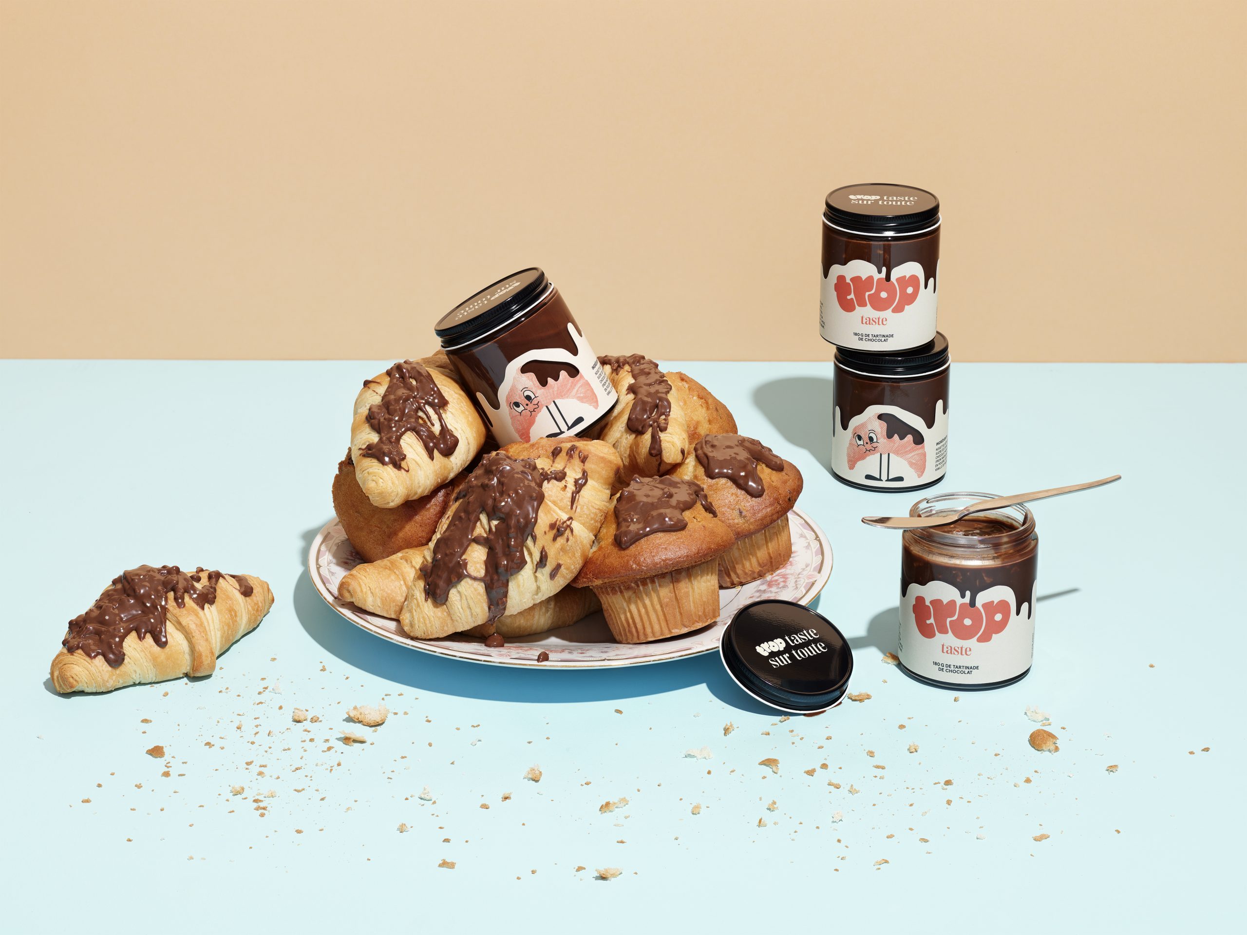 For the 3rd consecutive year, we are continuing the tradition of developing a self-promotional project in collaboration with one of our clients. This time our initiative offers 180g of really «Trop Taste» praline chocolate spread, which you can literally put on everything!!