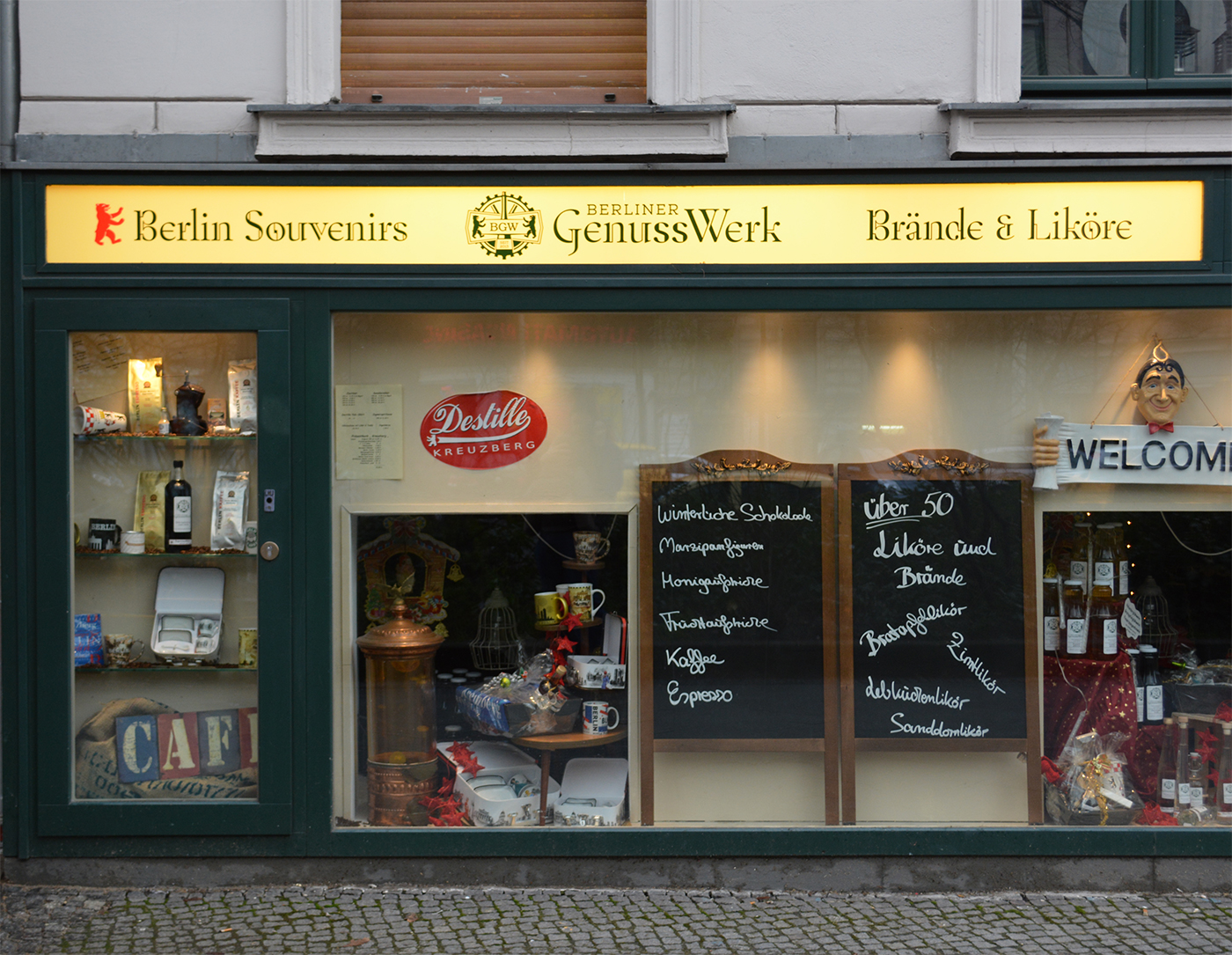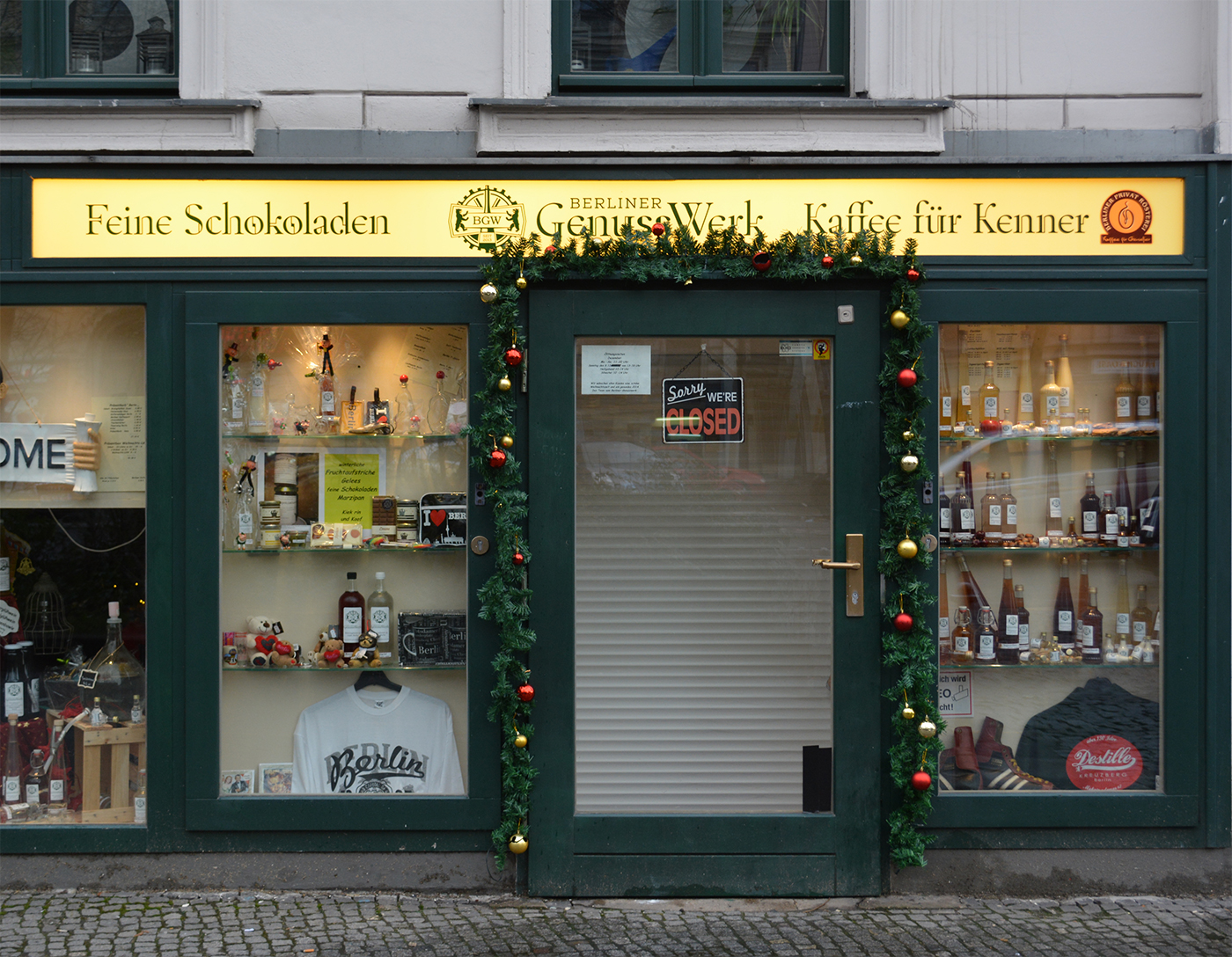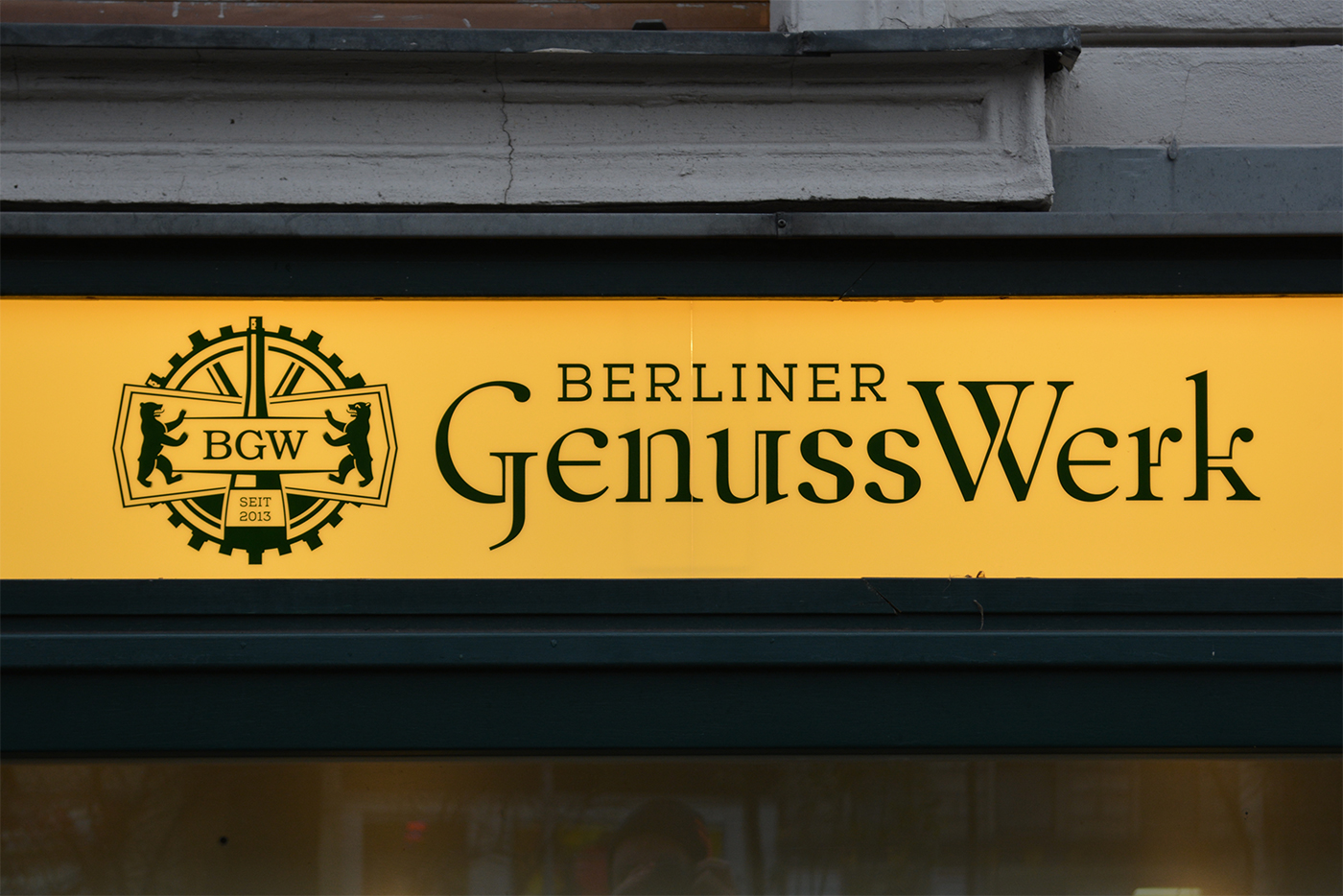 Berliner GenussWerk (“treat plant) is a newly opened shop on Mehringdamm, Berlin-Kreuzberg, offering souvenirs, liqueurs and brandywines, fine chocolate and “coffee for connoisseurs”. The store front signage is the first use of Octant that I have spotted in the wild.