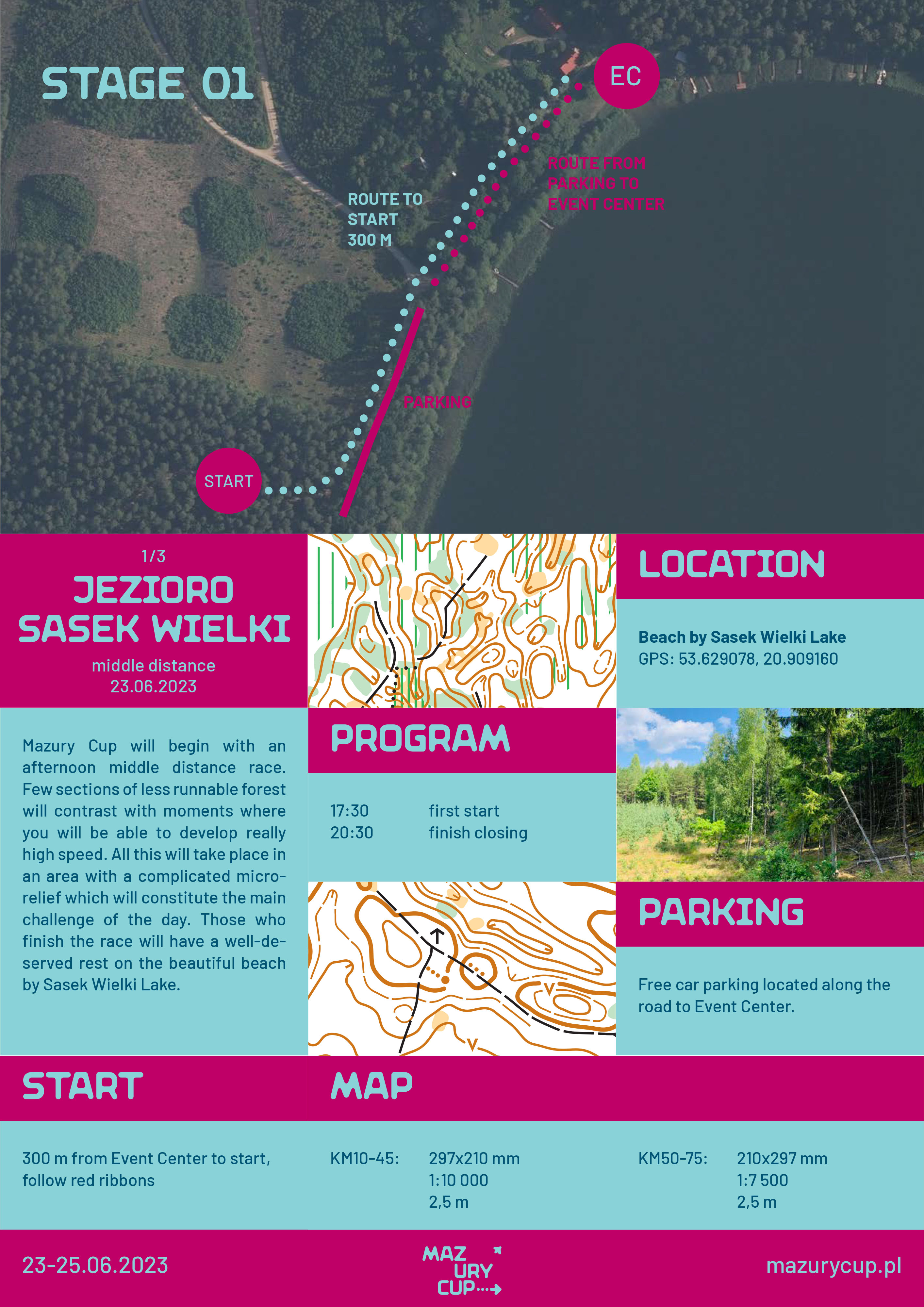 The Mazury Cup is a three-day orienteering competition set within the woodlands of the Masurian forests. Maria has been consistently employed throughout the event to craft its distinct identity. This event is an iteration of Sudety Cup, details of which are available in our prior post.