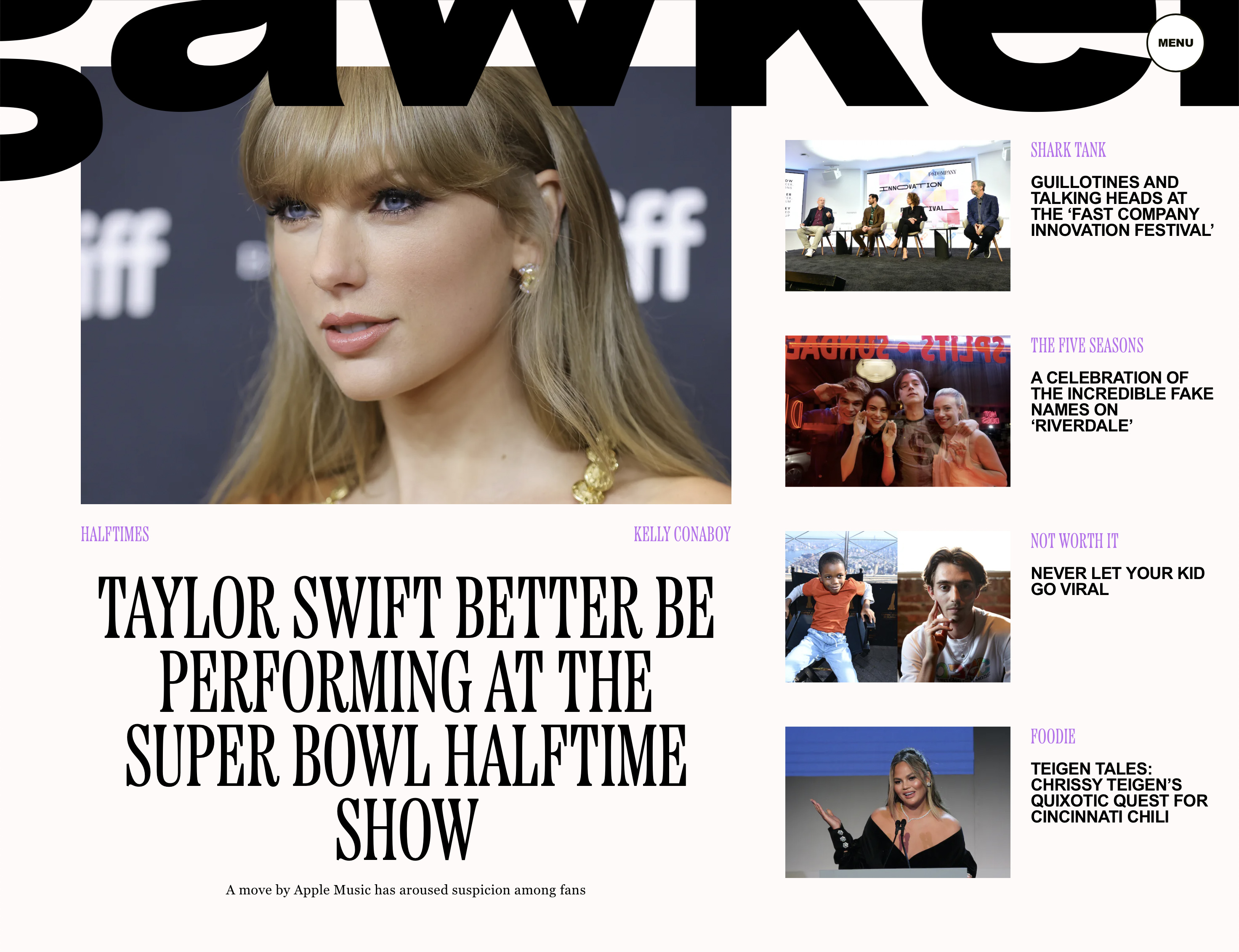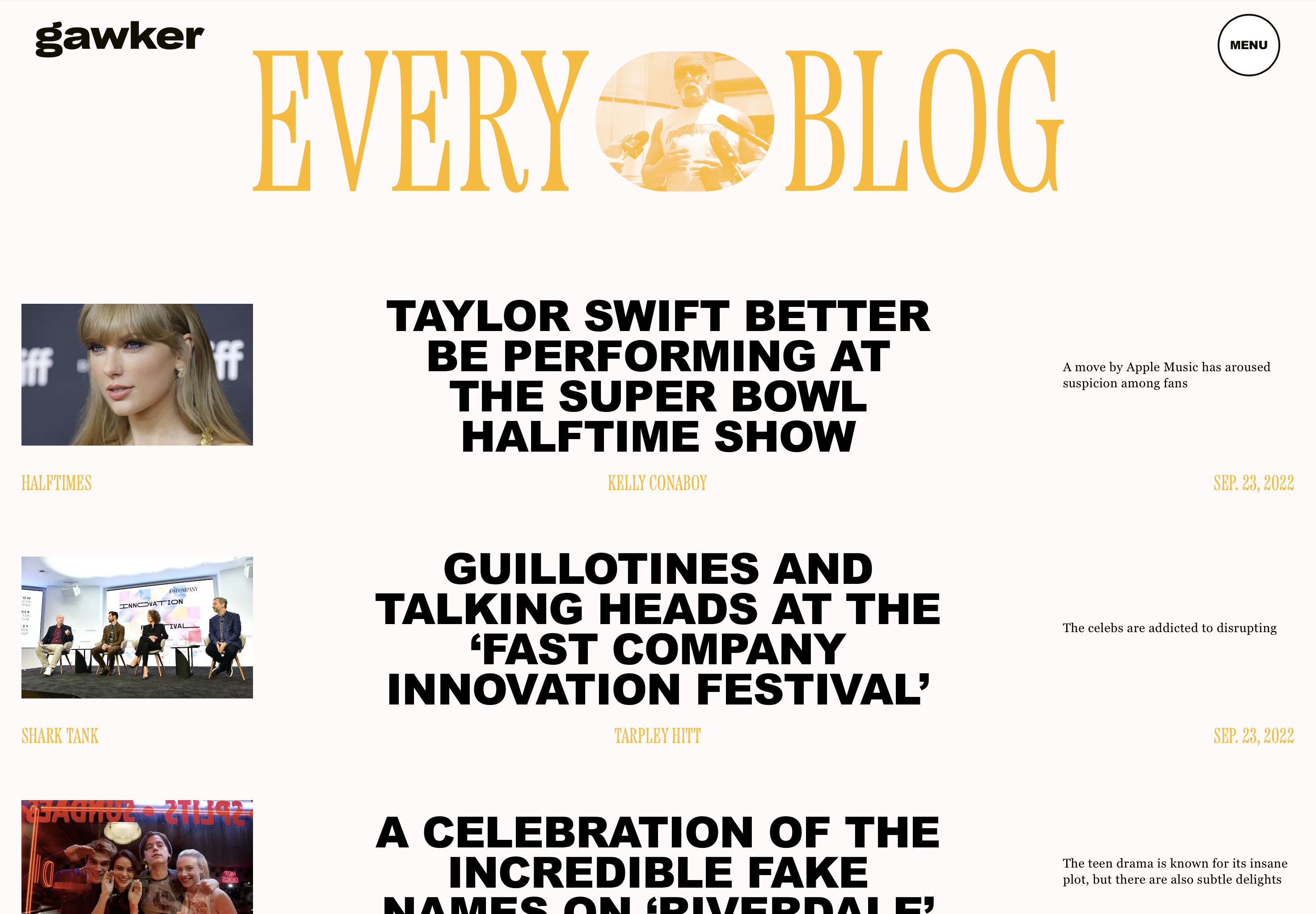 Gawker, the news and gossip website founded in 2002 by Nick Denton and which shut down in 2016, relaunched with a bold new design in July of 2021. The relaunch failed and was officially shut down in February 2023, but the site is still up (as of September 2023).