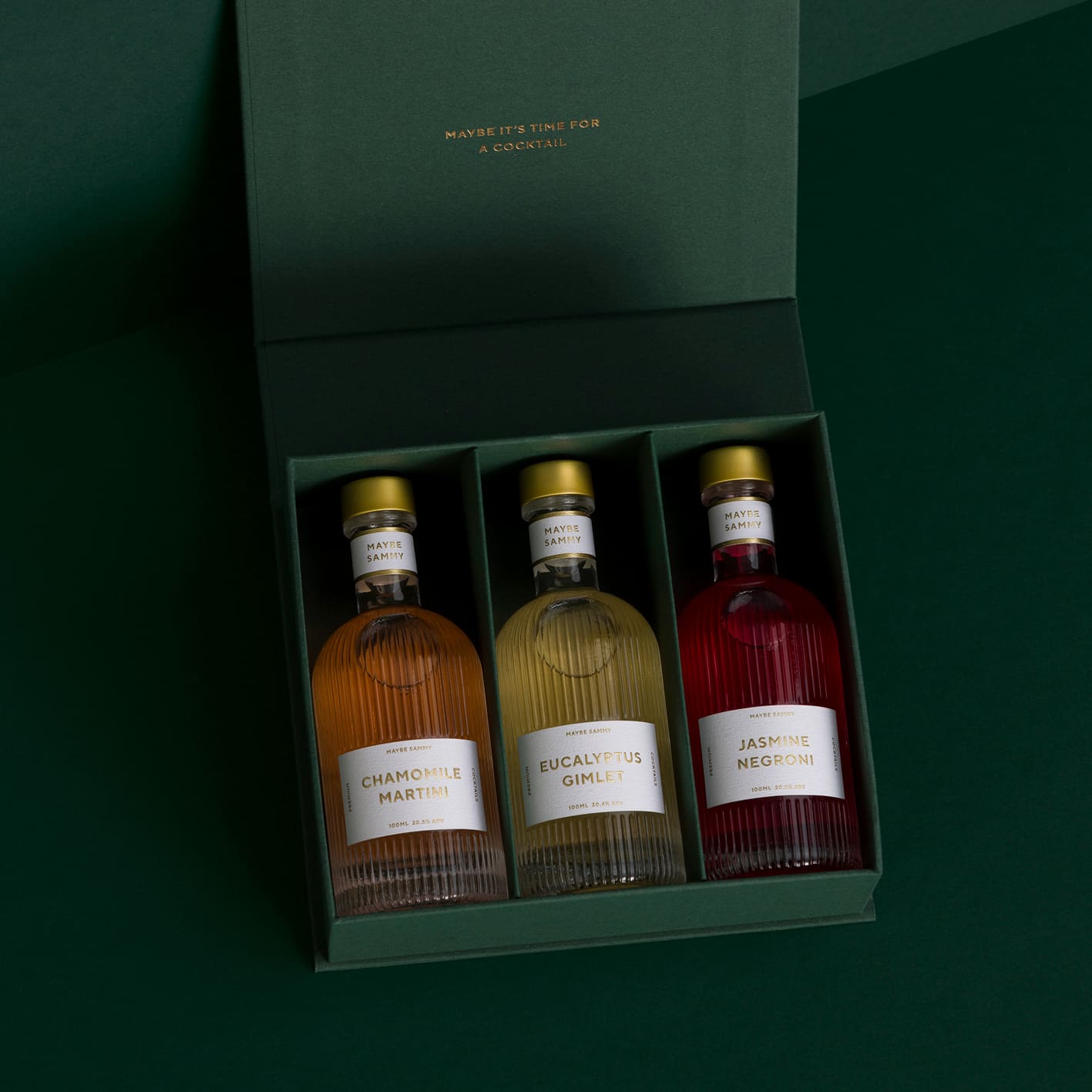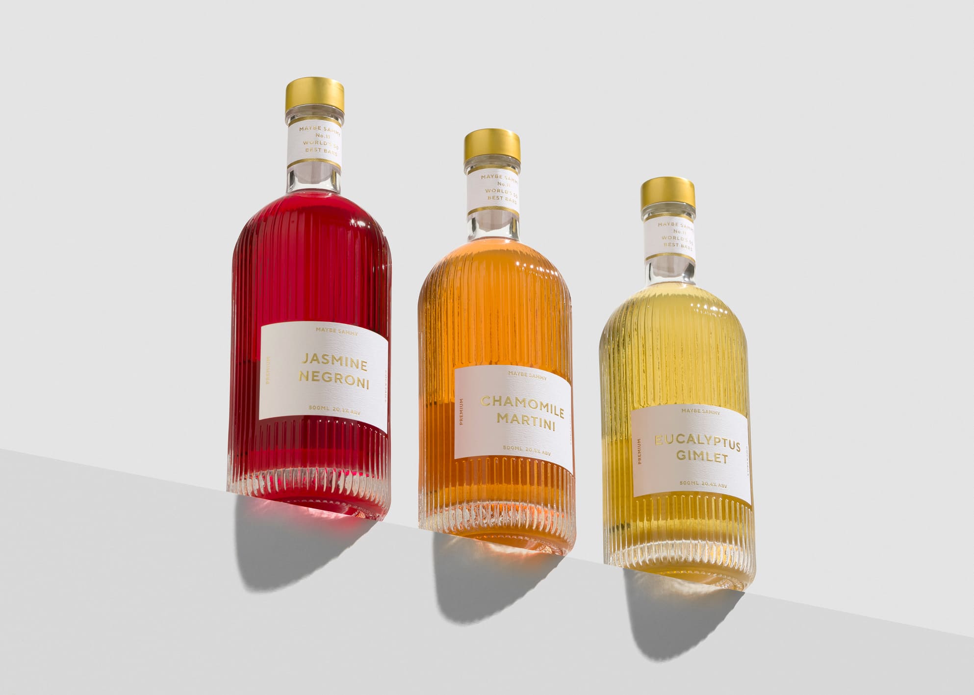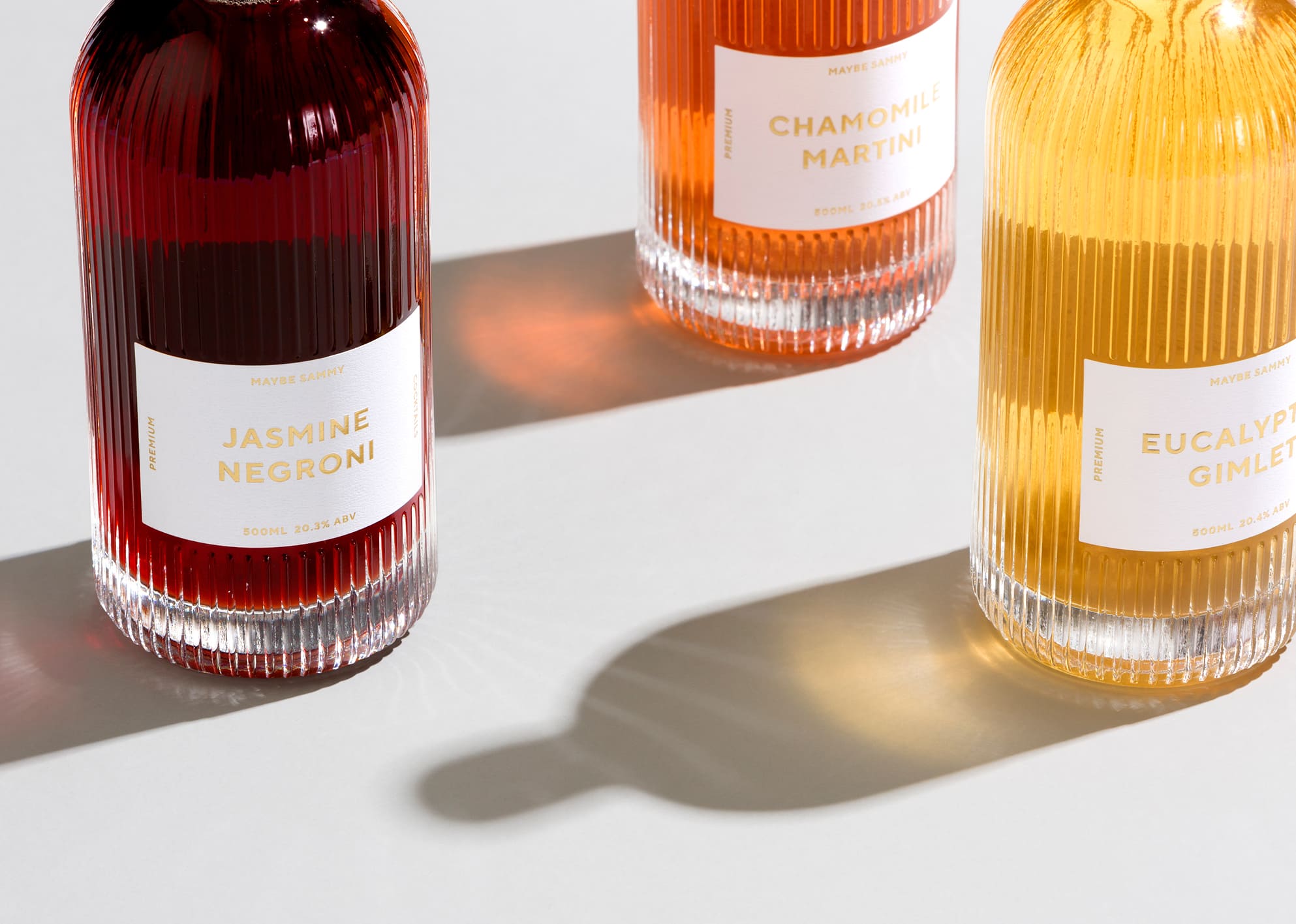 The Bar Brand People collaborated with award-winning Sydney bar Maybe Sammy to design the packaging for their suite of bespoke bottled cocktails. The Maybe Sammy mixologists have perfected the craft of the ready-to-pour cocktail, and the packaging design needed to reflect the premium product. The series features a trio of elegant 500 ml bottles, with miniature 100 ml versions of each cocktail.