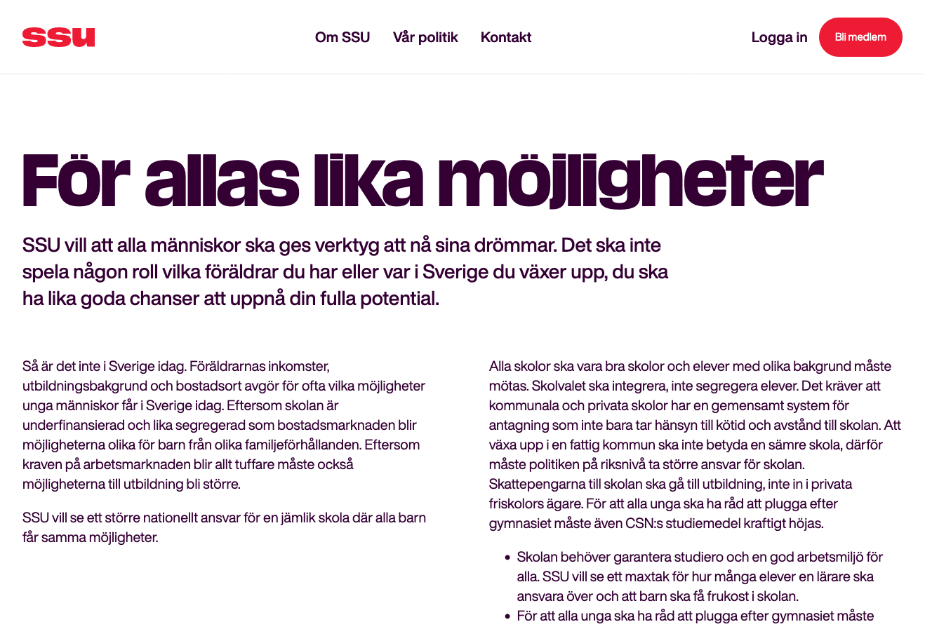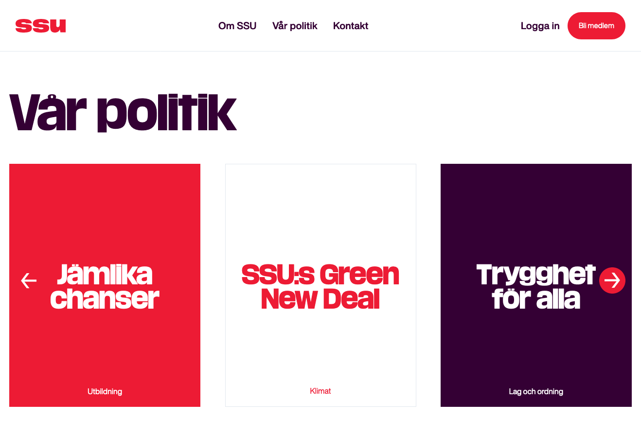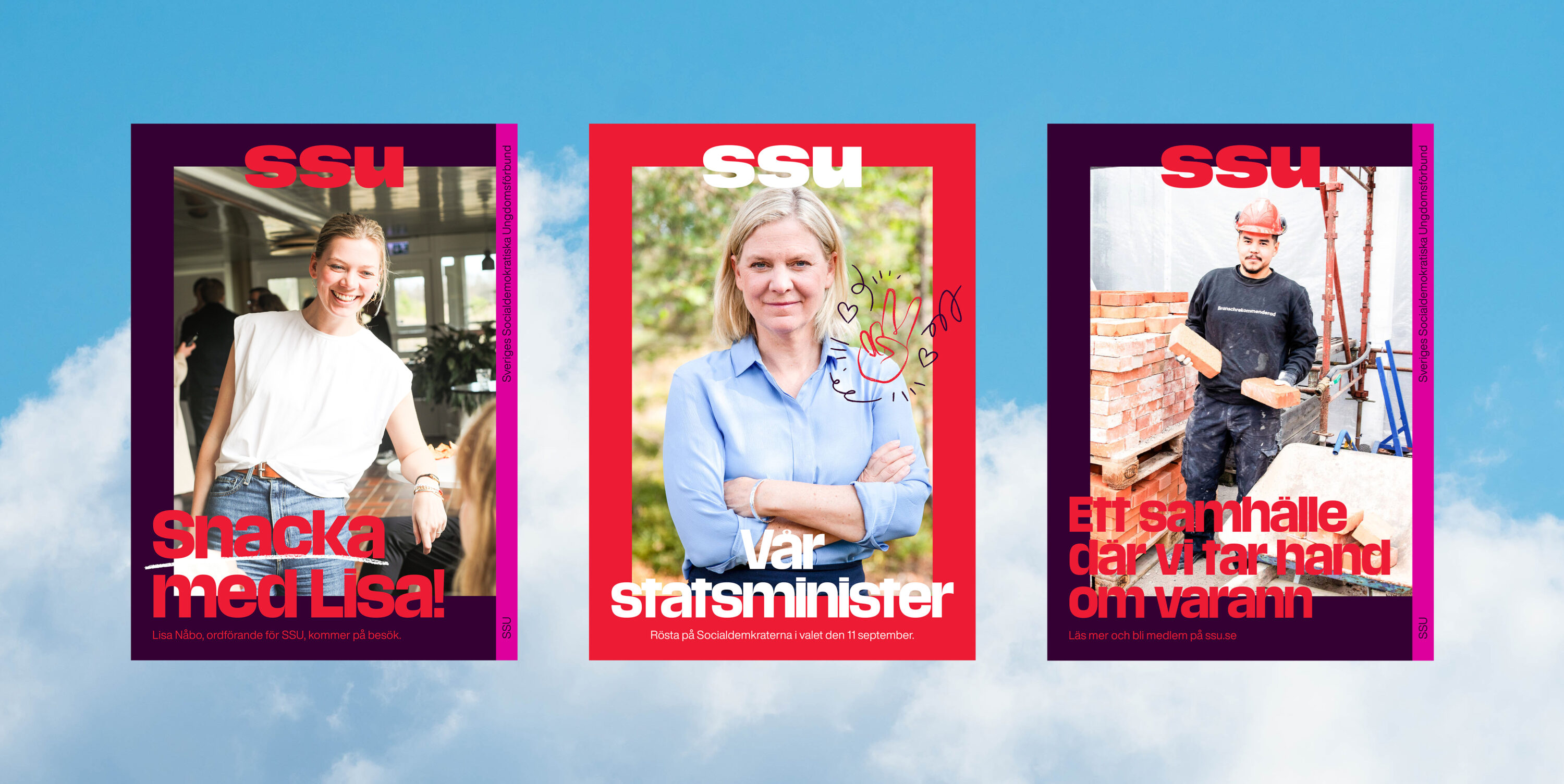 The youth organisation of Sweden’s social-democratic party (Sveriges Socialdemokratiska Ungdomsförbund, SSU) was founded in 1917 and is the country’s largest entity of that sort. In 2022 it launched a new visual identiy. Responsible for the makeover are Birdh as the content strategists and 25AH as the graphic design agency. Both are based in Stockholm.
