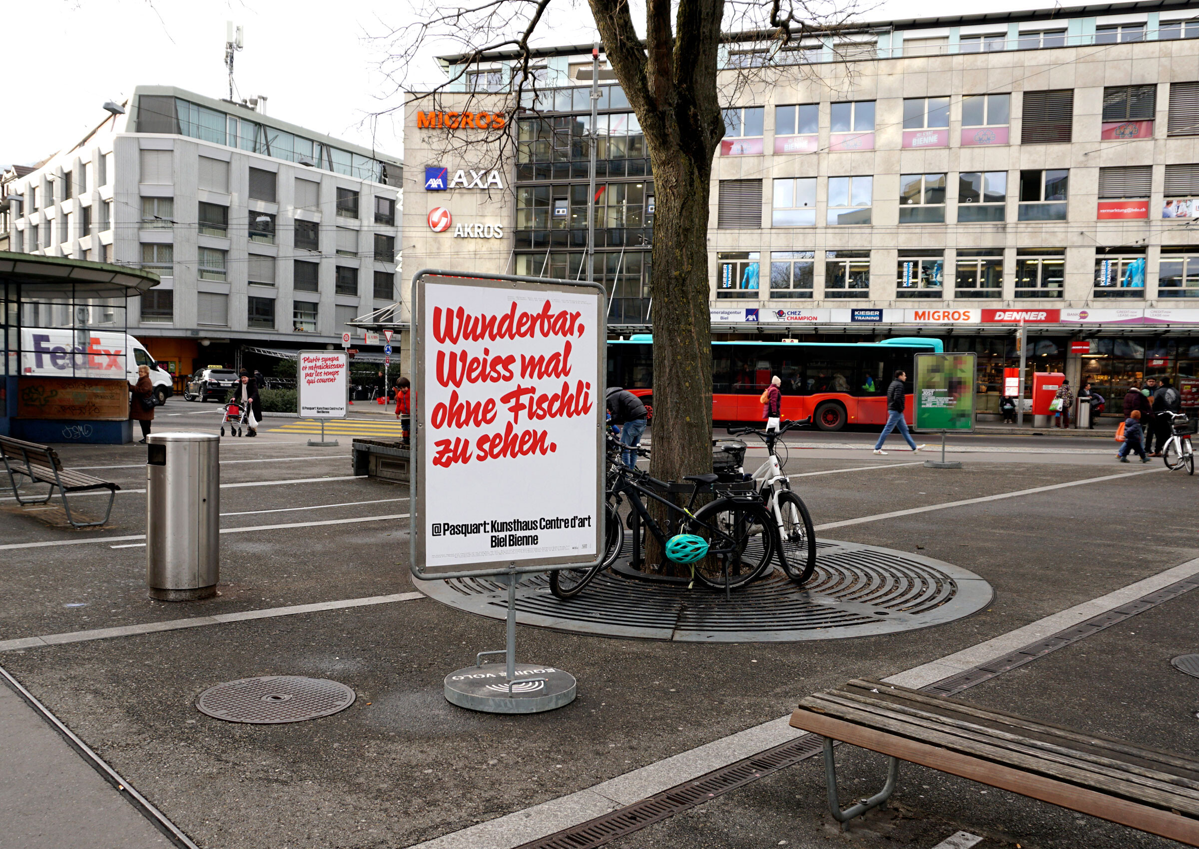 This 2023 campaign marks a change in direction at Pasquart Kunsthaus Centre d’art Biel/Bienne, Switzerland. Different quotes from the past ten years of the Kunsthaus’s guestbooks were collected and placed on the streets of Biel, conveying whether Kunsthaus is appreciated or not: