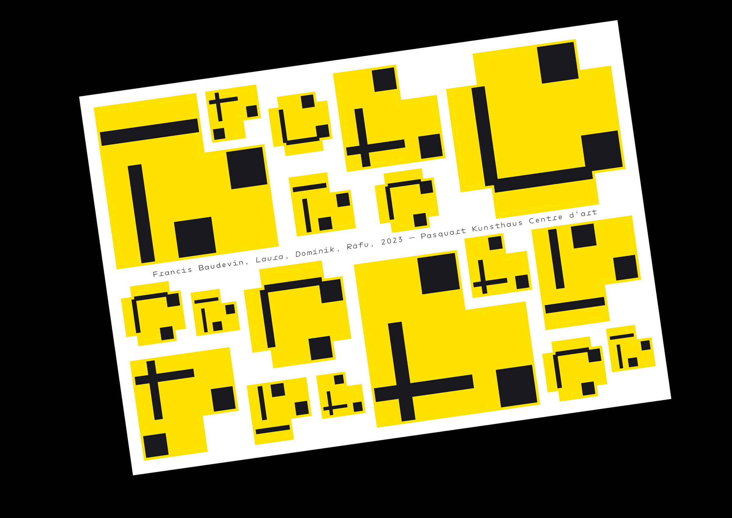 This campaign was integrated with the promotion of their first exhibition of 2023 about painter Francis Baudevin, who has been developing a body of abstract work since the end of the 1980s. His work is known to be rigorous, coherent, and playful. Always following the same method, the artist takes abstract graphic compositions from our visual domain (multinational logos, packaging from manufactured goods, book and record covers, etc.) and then removes all text references—hence, all meaning—to keep only the form itself.