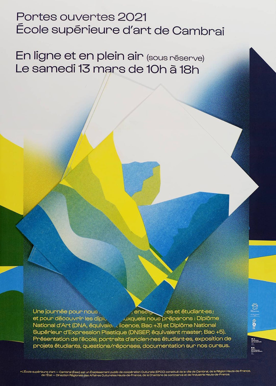 Gustavo (from Lift Type) is used for the communication around the 2021 online open days of Ésac Cambrai (school of art and communication). The design was handled by one of the school’s students, Camille Leleu: