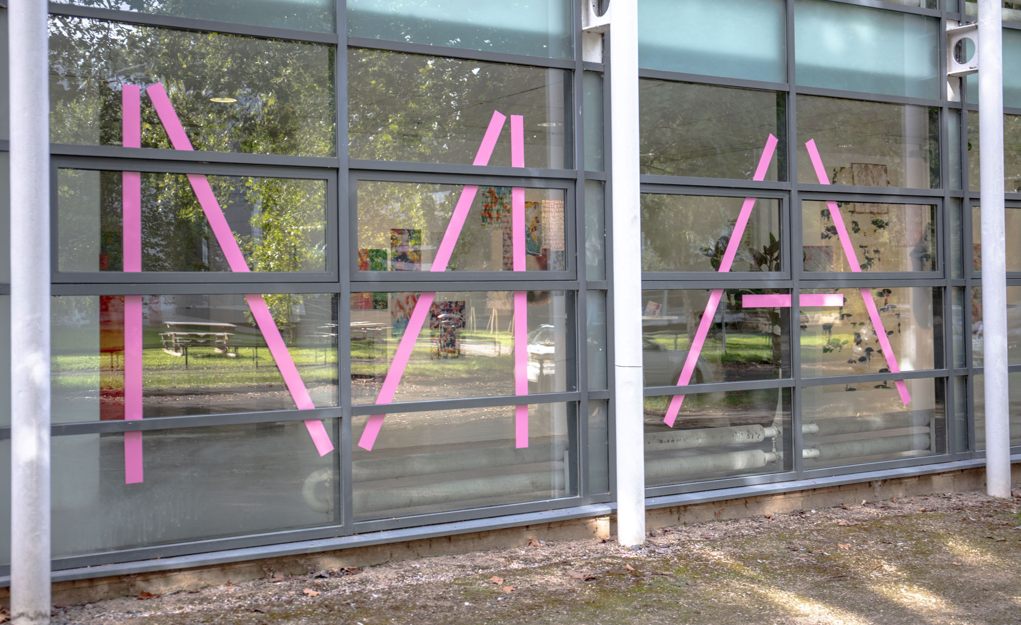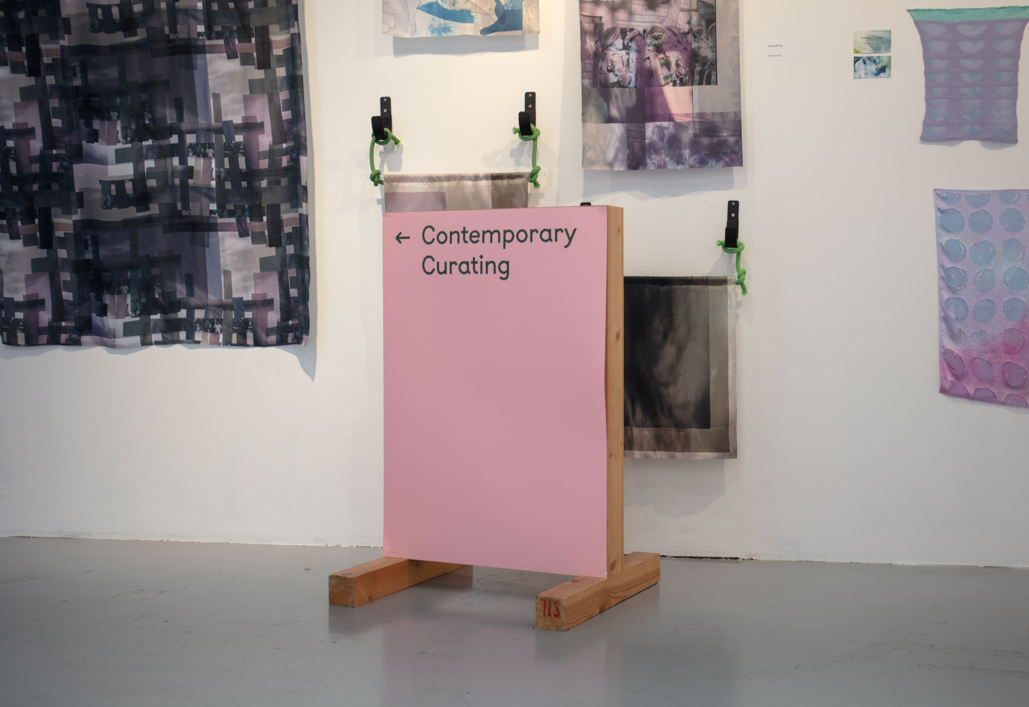 Continuing the theme of the BA Degree Show in 2023 with a visual language that reflected upon the constructing and presenting sides of an annual showcase, we developed two custom glyphs (‘MA’) which repetitively form and unform amongst a playful pink/green framework. A new font (BTP by A is for) was equally introduced based on its visual similarities with the School’s Rotunda building and wider campus architecture.