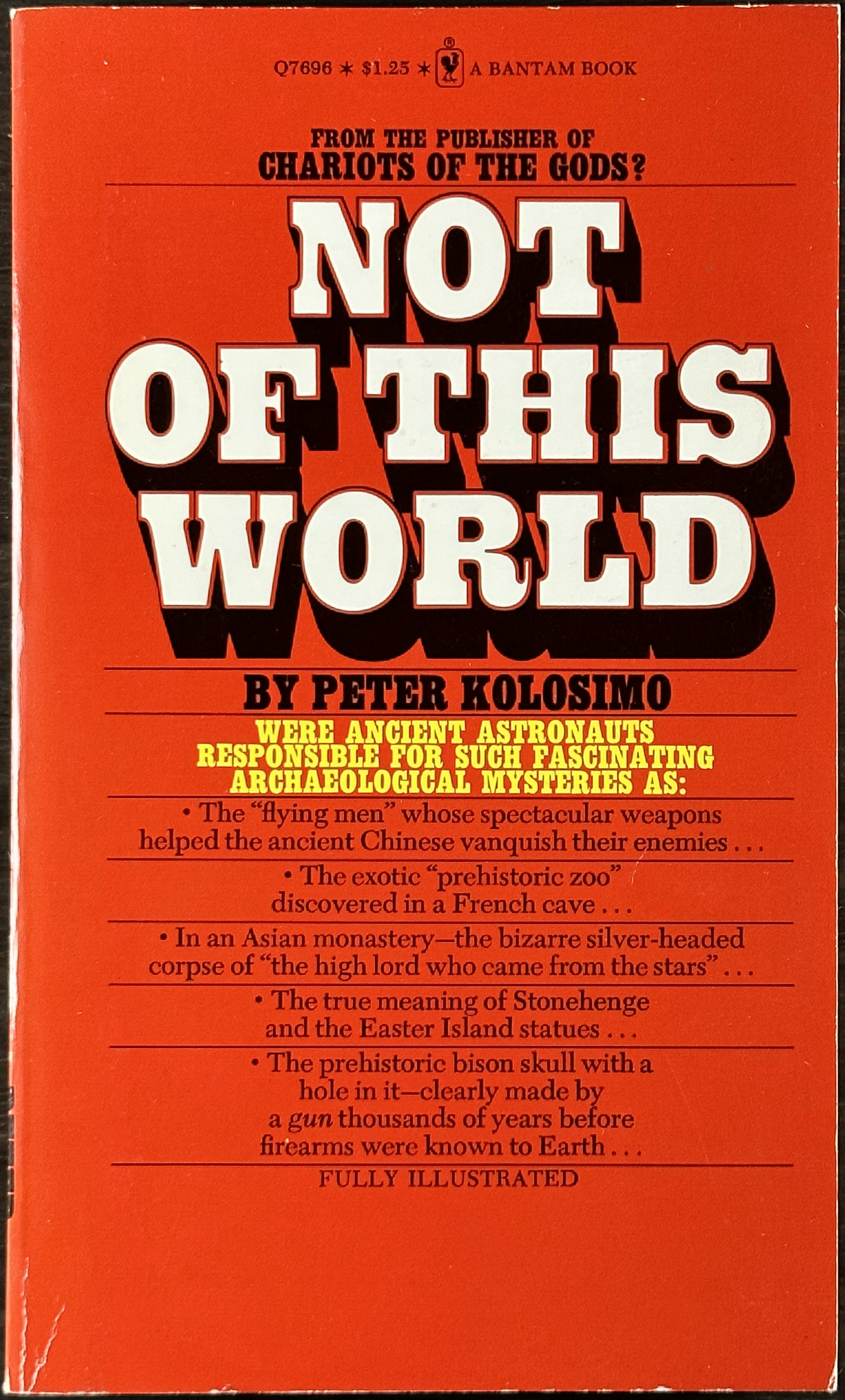 Two books by Peter Kolosimo (1922–1984), one of the founders of pseudoarchaeology who popularized ancient astronaut theories of contact between extraterrestrial beings and ancient human civilizations, published by Bantam Books in the 1970s.