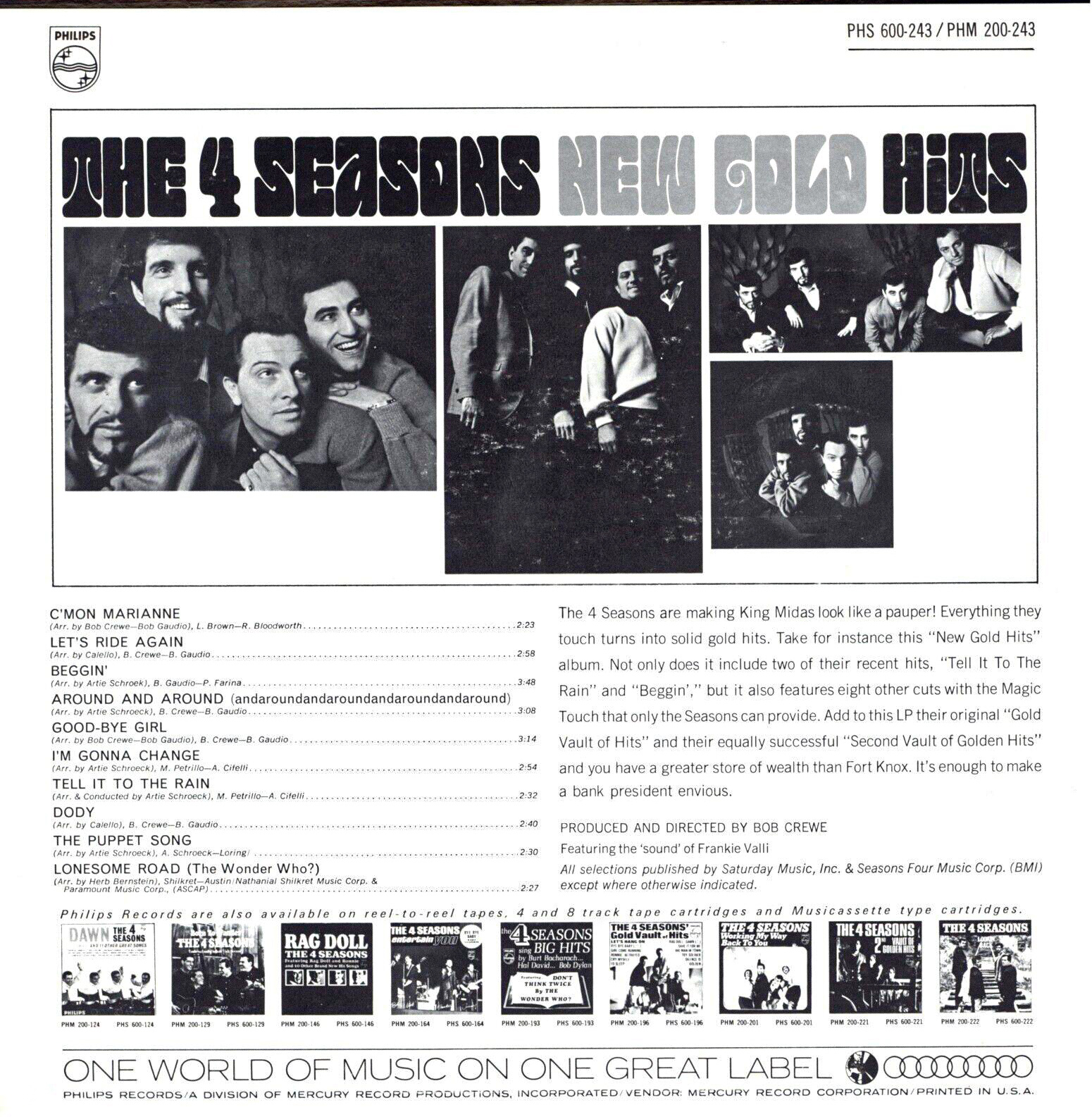 In this album, it includes some of The Four Season’s hit singles, “C’mon Marianne”, “Let’s Ride Again”, “Beggin’” and others.