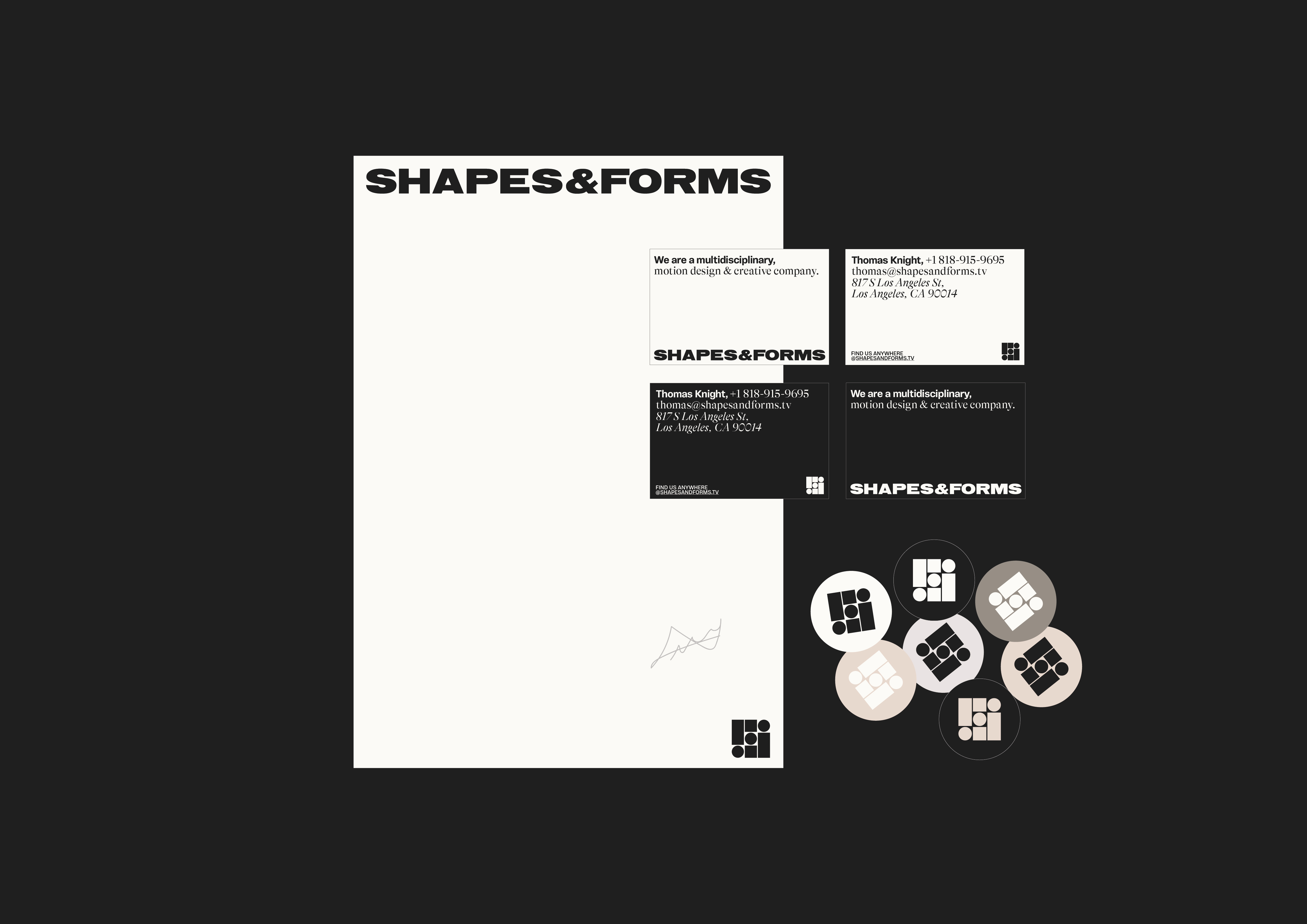 In recent months, I have had the opportunity to work with Shapes & Forms, a multidisciplinary motion design and creative company based in Los Angeles, New York & Medellín. The objective was to introduce the DNA of Shapes & Forms working with other different big companies (NFL / SuperBowl, Netflix, Stiiizy…) while collaborating with designers/motion designers all over the world. The visual identity had to be integrated into a simple and impactful design, based on the use of typographic and modular grids in order to highlight the different types of content while keeping a strong and identifiable graphic universe. The case study focused on the creative direction and design of different communication media such as: brandbook, stationery, signage, website, clothing and objects, environmental design, social network posts (Instagram, Behance, LinkedIn…)