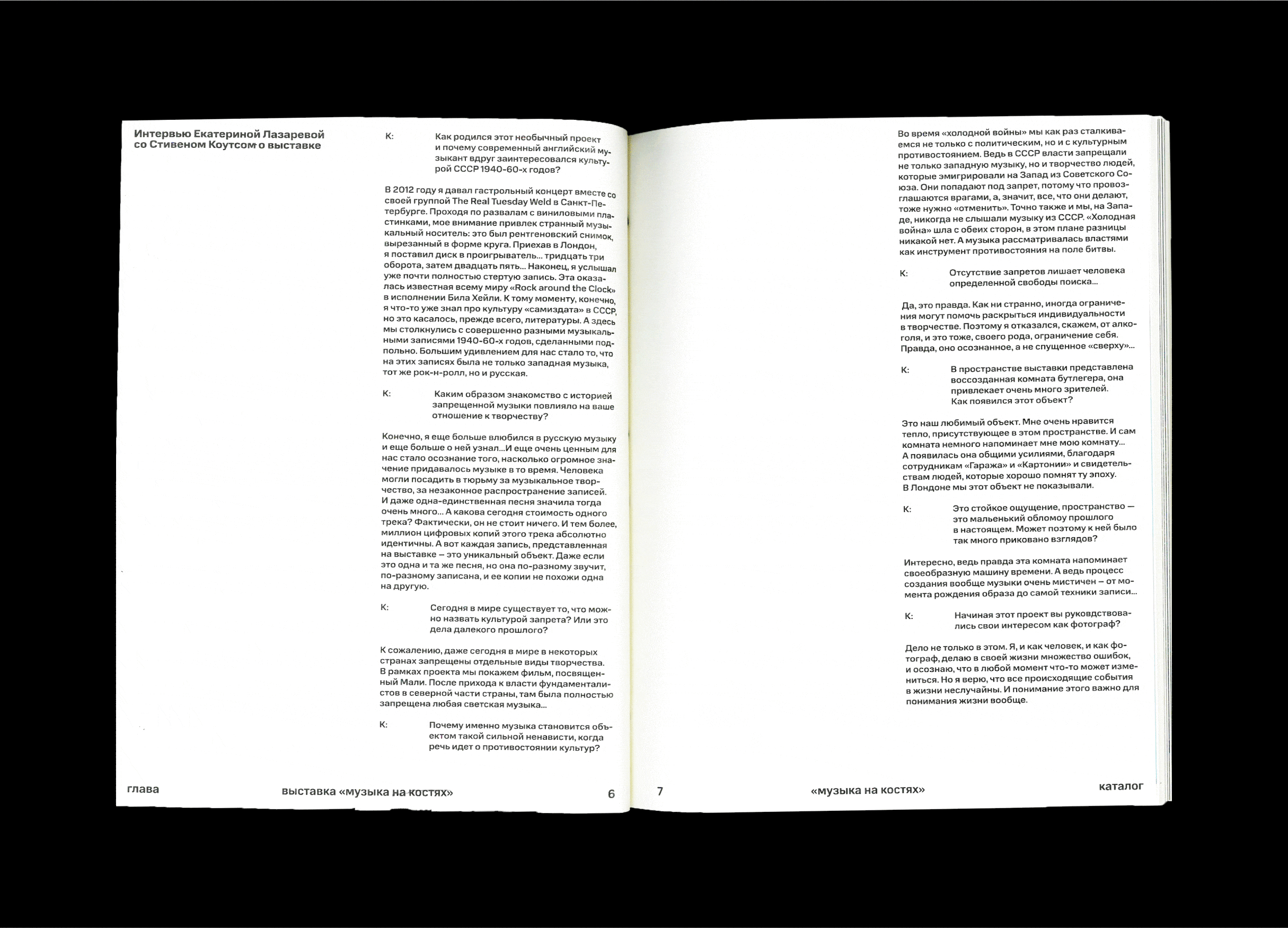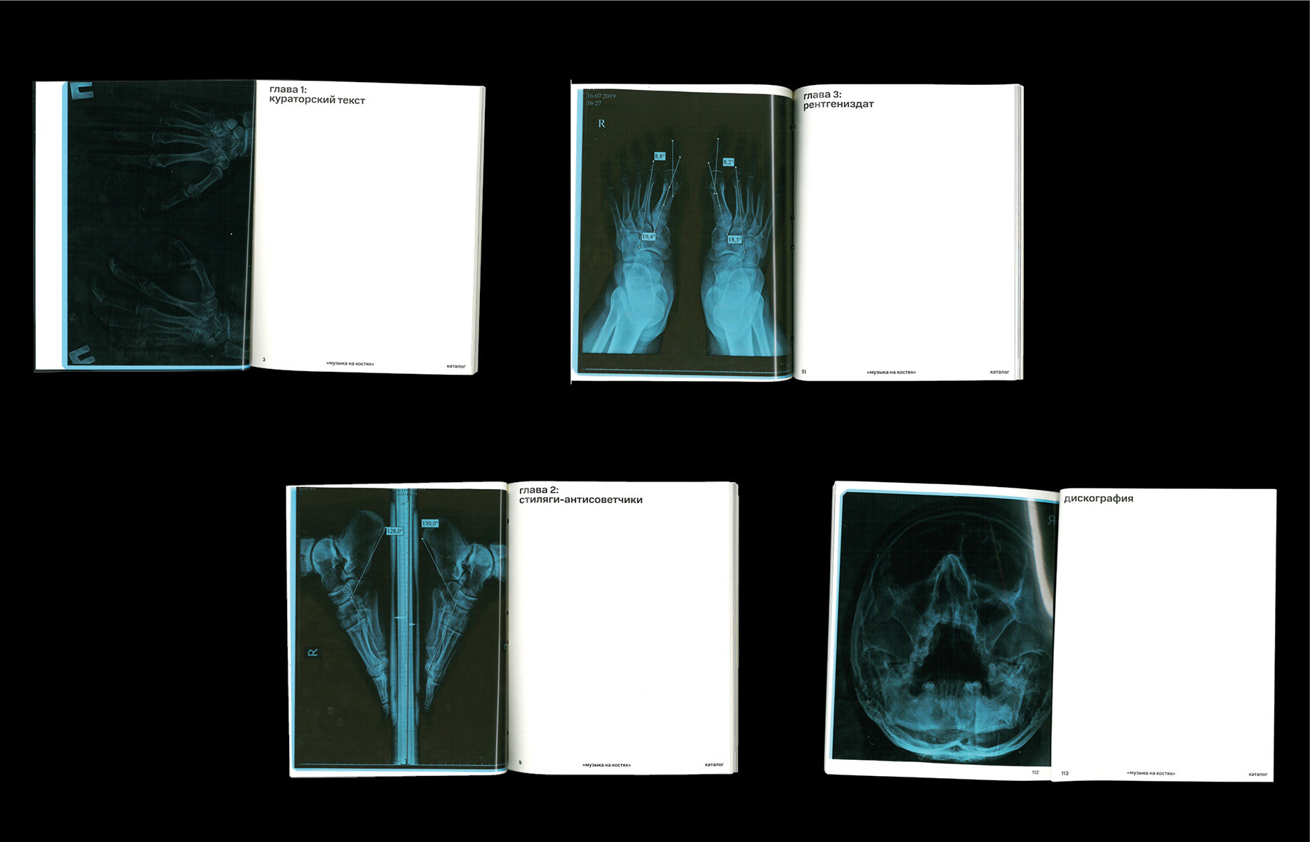 The show had no catalogue and Tasya Degtyar, a student of HSE University Art and Design, decided to fix this by her project in 2020. The book she made tells about the objects on display in the exhibition and even shares an X Ray recording DIY technique. The typography is serviced by Normalidad, designed at CSTM Fonts.