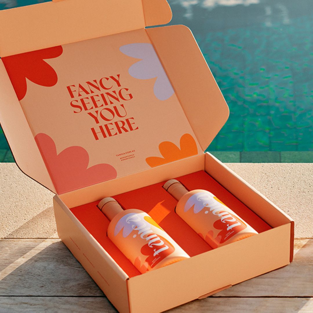 TT Tangerine from Tropical Type was the perfect blend of fun and fashion for Tanica, a beautiful botanical beverage. Tanica was launched in November 2021 by Adriane McDermott and Kate Napier.