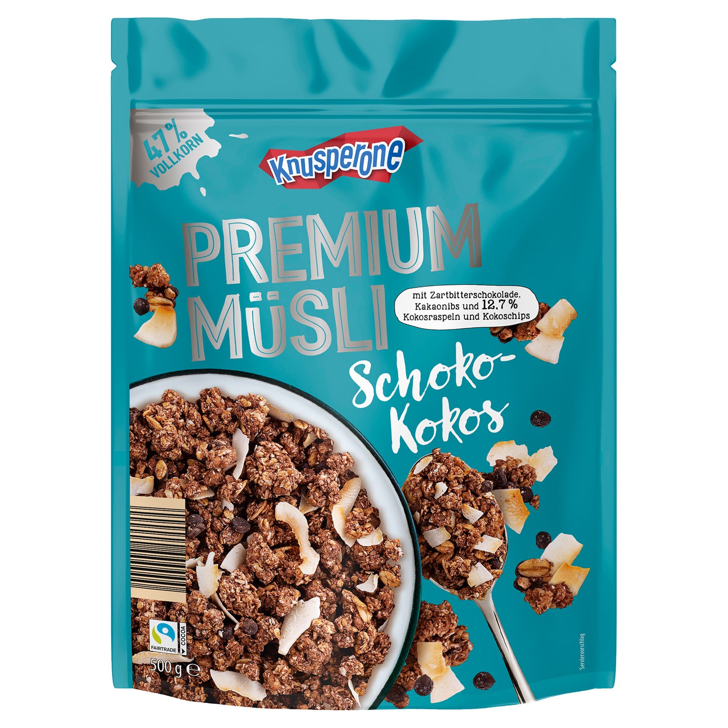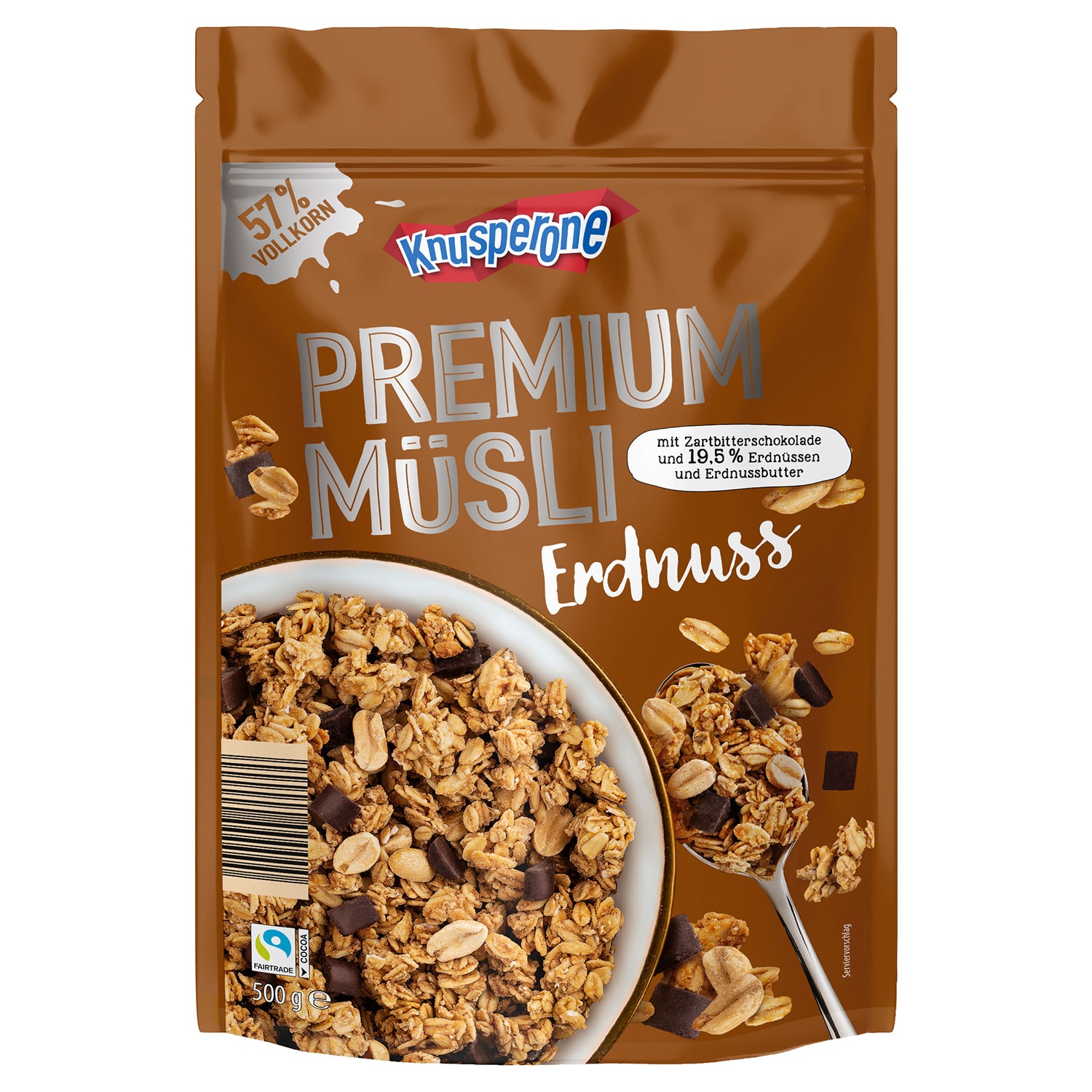 Knusperone is the house brand for cereals by the ALDI discount supermarket chains. The impactful font used for their “Premium Müsli” is Peperoncino Inline, printed with silver ink.