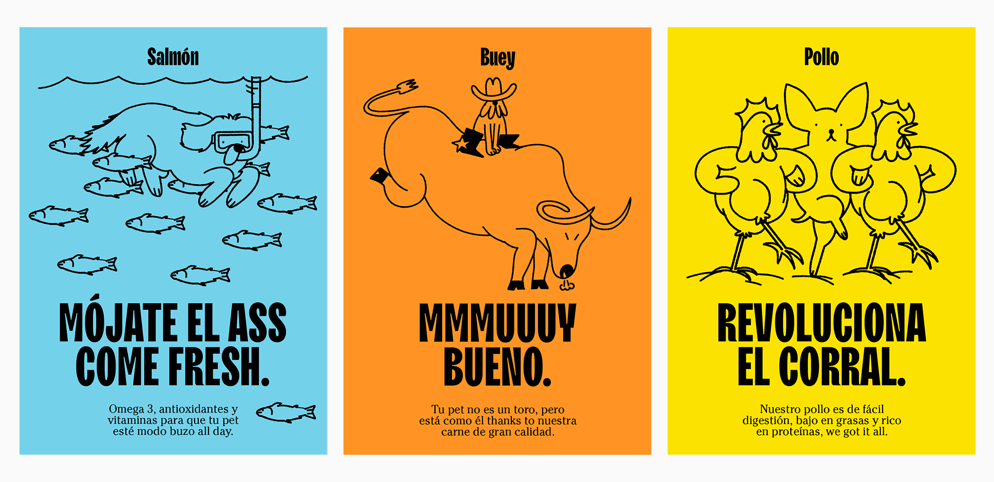 This is how we start working. Stop treating our pets like babies and celebrate, as they like, the freshest instincts with an extremely simple, modern and groundbreaking tone of voice and message.