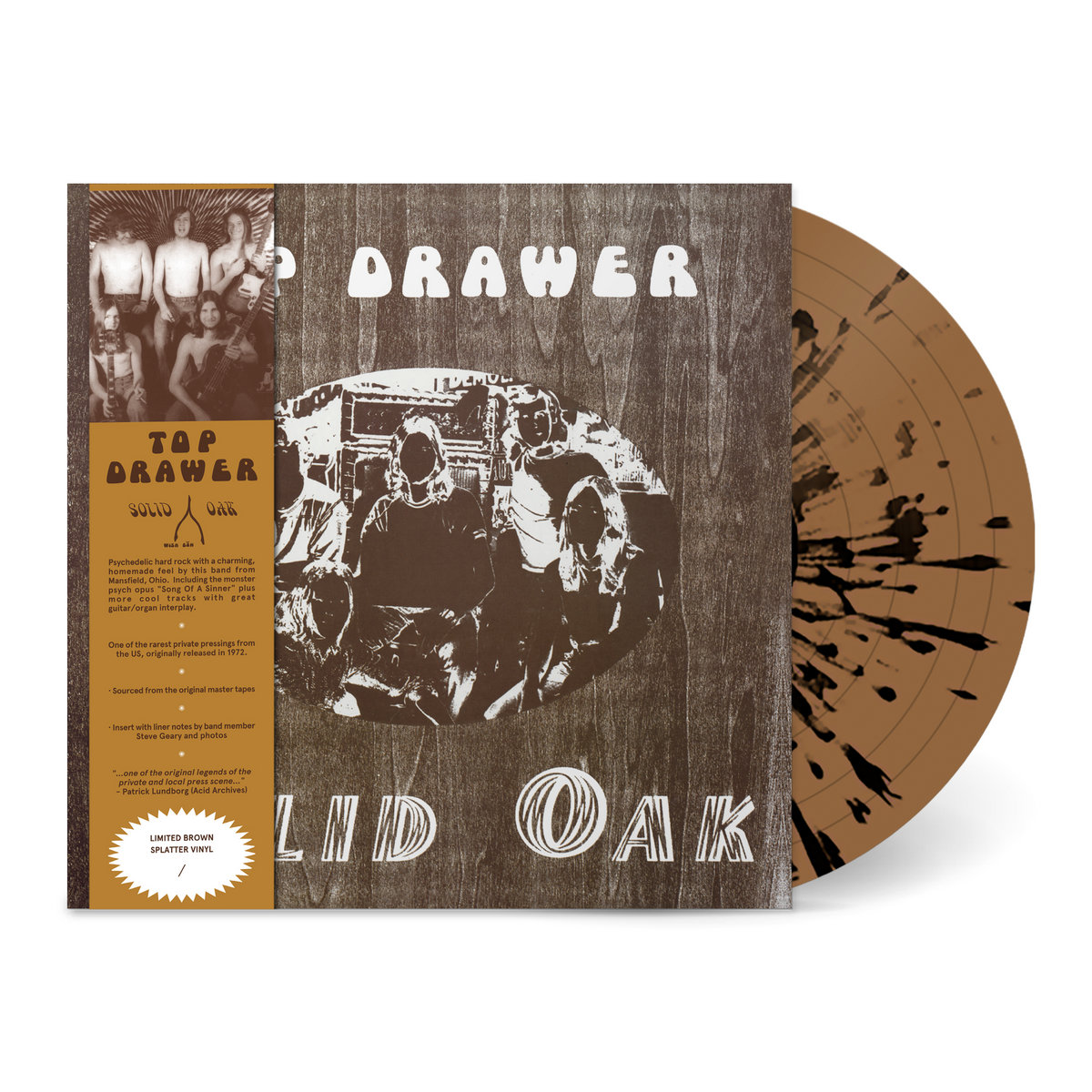 Top Drawer was a psychedelic rock band from Mansfield, Ohio, that released one single album, Solid Oak. The album was recorded at Fultz Recording Studio in Louisville, Kentucky. The first song of the album, “Song Of A Sinner”, brought the band fame.