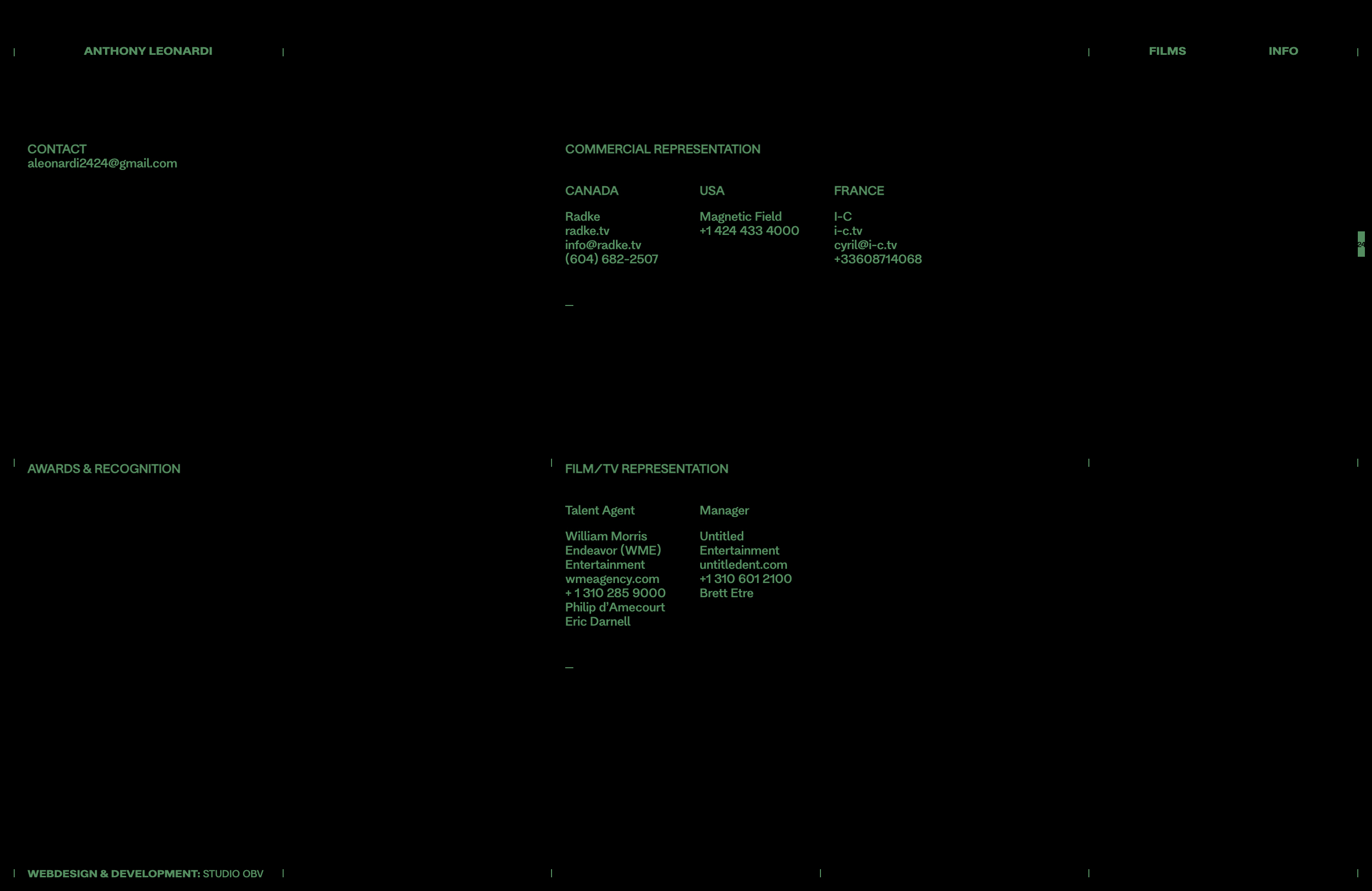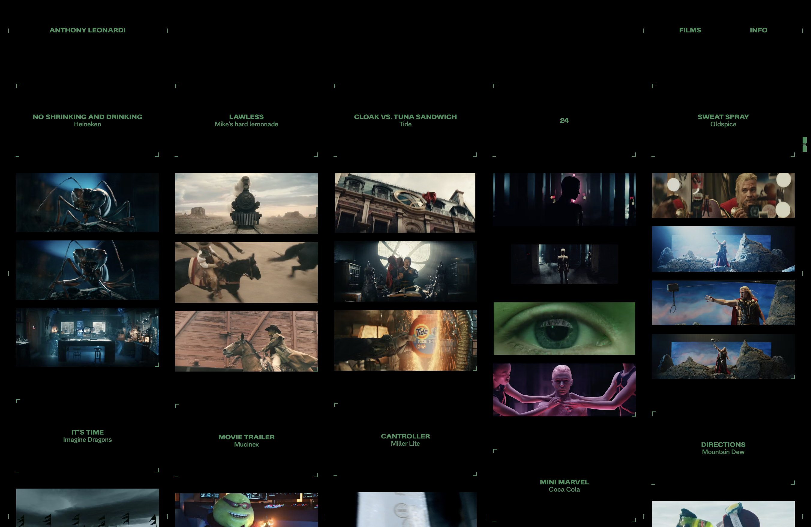 Anthony Leonardi III website Contributed by Studio OBV on Oct 10th, 2023. Artwork published in 2023. Source: www.anthonyleonardi.work License: All Rights Reserved. Anthony Leonardi III is a LA based director and artist. His portfolio website was designed by Studio OBV using Solina Medium and Solina Extended Bold. Source: www.anthonyleonardi.work License: All Rights Reserved. Source: www.anthonyleonardi.work License: All Rights Reserved. Typefaces More about SolinaGet Solina Formats Web (5566) Topics Film/TV (2012) Designers/Agencies Studio OBV (1) Tagged withwebsites (3517)portfolios (760)film directors (20)artists (11)multiple widths (555)green and black (195)reversed type (3335) Artwork location United States (9842) Los Angeles (561) In SetsDesigns by Women (Fonts In Use Staff) (3534)Web (Lucas Bevilaqua) (361)techy (Lucas Bevilaqua) (140)Distinctive Sans (Lucas Bevilaqua) (167)ANTARTIDA (fernanda basile) (7) Post a comment Name Email – will not be published Website Your response Submit Comment More in Film/TV Berlinale 20252025Claudia SchramkeContributed by Ivo Gabrowitsch Staff Pick For Promotional Use Only by A24c. 2021OrderContributed by Alex Chavot 46º Festival Sesc Melhores Filmes2020Lucas BlatContributed by Lucas Blat Sponsor More in Web Paramour websitec. 2023ParamourContributed by Margot Lévêque Typefaces Terminal 27c. 2021CTHDRLContributed by Adrien Menard Herzblut & Bock website and videosc. 2024Herzblut & BockContributed by Schrifteria Foundry The Nordvest Tour Travelogue2016Nina StössingerFrode HellandContributed by Frode Helland (Monokrom Skriftforlag) More Fonts In Use Edwin Antwerp store opening2022Stephanie SpechtContributed by Lucas Descroix Staff Pick Viking Line bus stop ads2004Photo(s) by Stephen Coles on Flickr. Staff Pick Pin It, Tack It, Hang It: The Big Book of Kids’ Bulletin Board Ideas by Phyllis & Noel Fiarotta1975Noel FiarottaPhyllis FiarottaContributed by Garrison Martin Staff Pick Dejan’s Olympia Brass Band – In Europe album art1969Stuart McMillanContributed by Florian Hardwig Staff Pick Los Angeles Dodgers social media2024Los Angeles DodgersContributed by Darden Studio Staff Pick 200 Years of the Frauenbad catalog2021MetaphorContributed by Ivo Gabrowitsch Staff Pick Park Restaurant, Distillery & Bar2015Glasfurd & WalkerContributed by Letters from Sweden Staff Pick Format–standard Web Magazine2010Didier LechenneContributed by Tânia Raposo Staff Pick