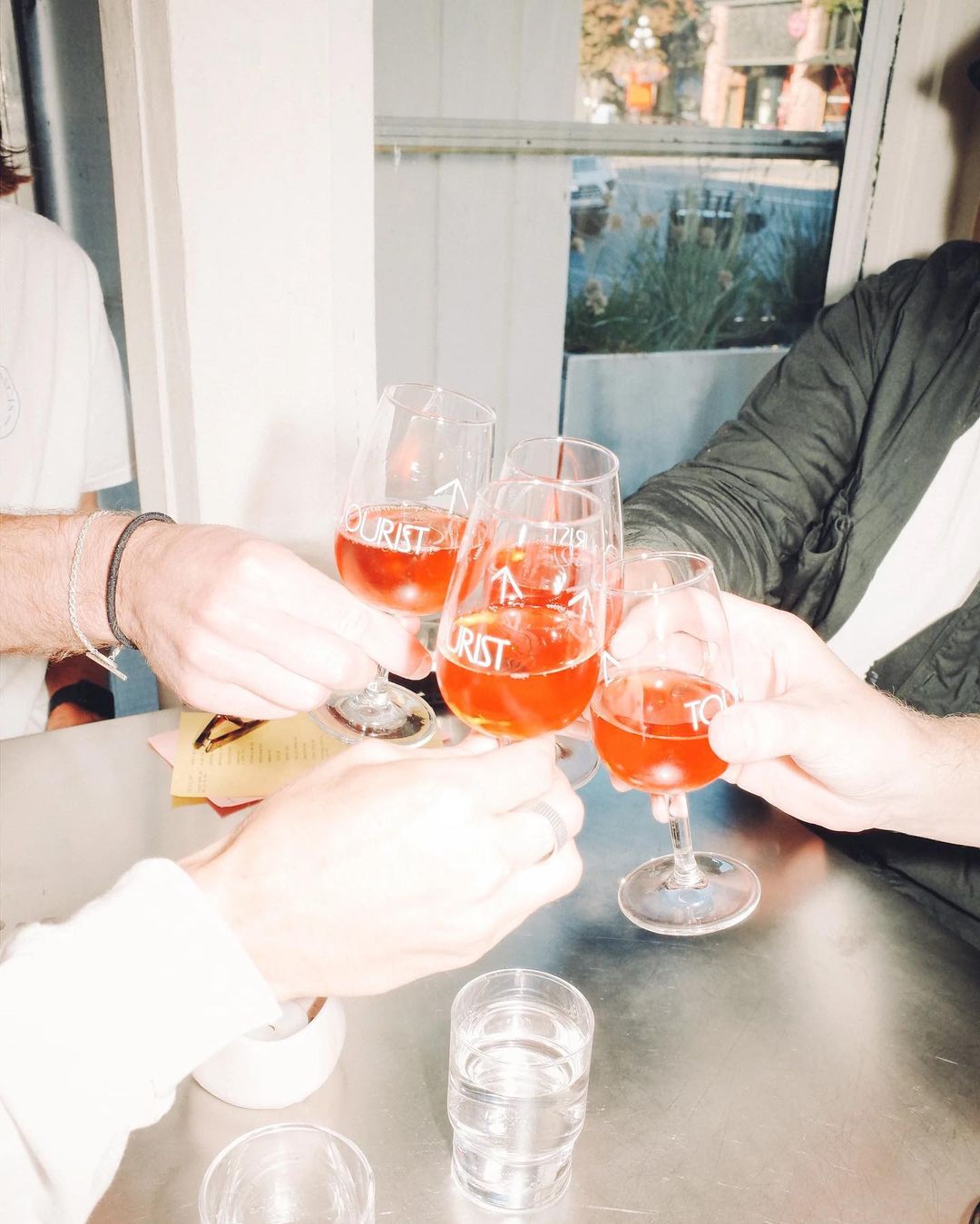 Tourist is a (natural) wine bar located in Victoria, Canada, founded in July 2023 by Guy Ferguson and Sean Partlow. The bar offers a large wine list from all over the world, with sharable plates inspired by the places they’ve travelled together. Their branding was designed by Sam Jayne using James including the set of arrows of the same font.