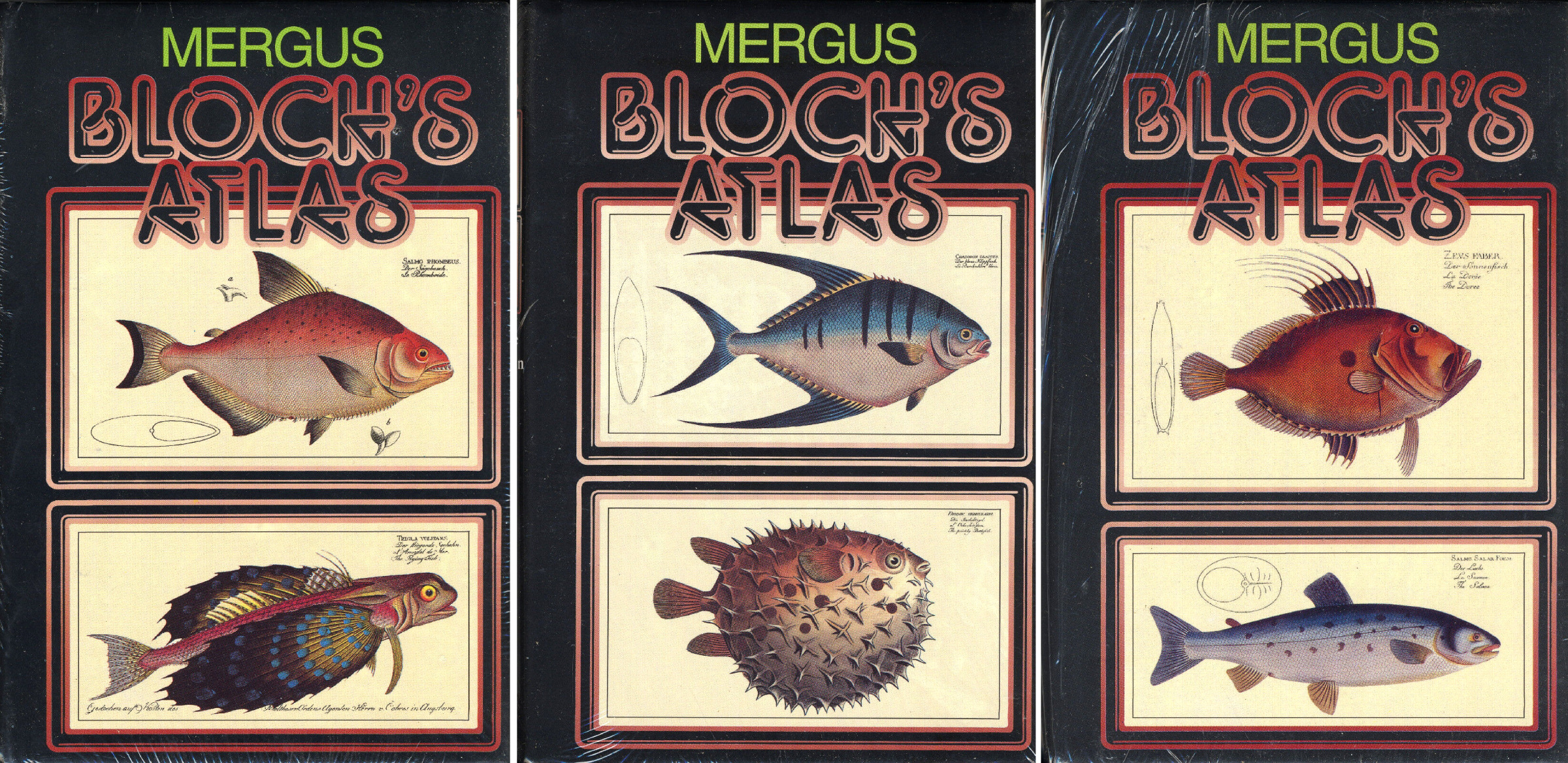 Over the years, the library has been expanded to 26 volumes. It comprises atlases about marine and freshwater fish, the historical Bloch’s Atlas, specialized volumes about cichlids, catfish, pond fish, and even fish fossils. There are hardback and paperback editions, and translations to English, French, and Spanish. Shown below is a selection of book covers and jackets.