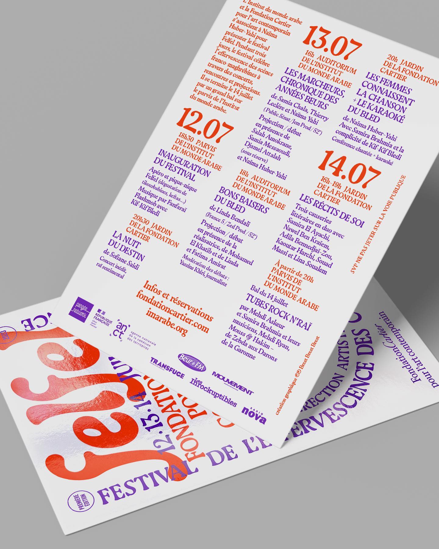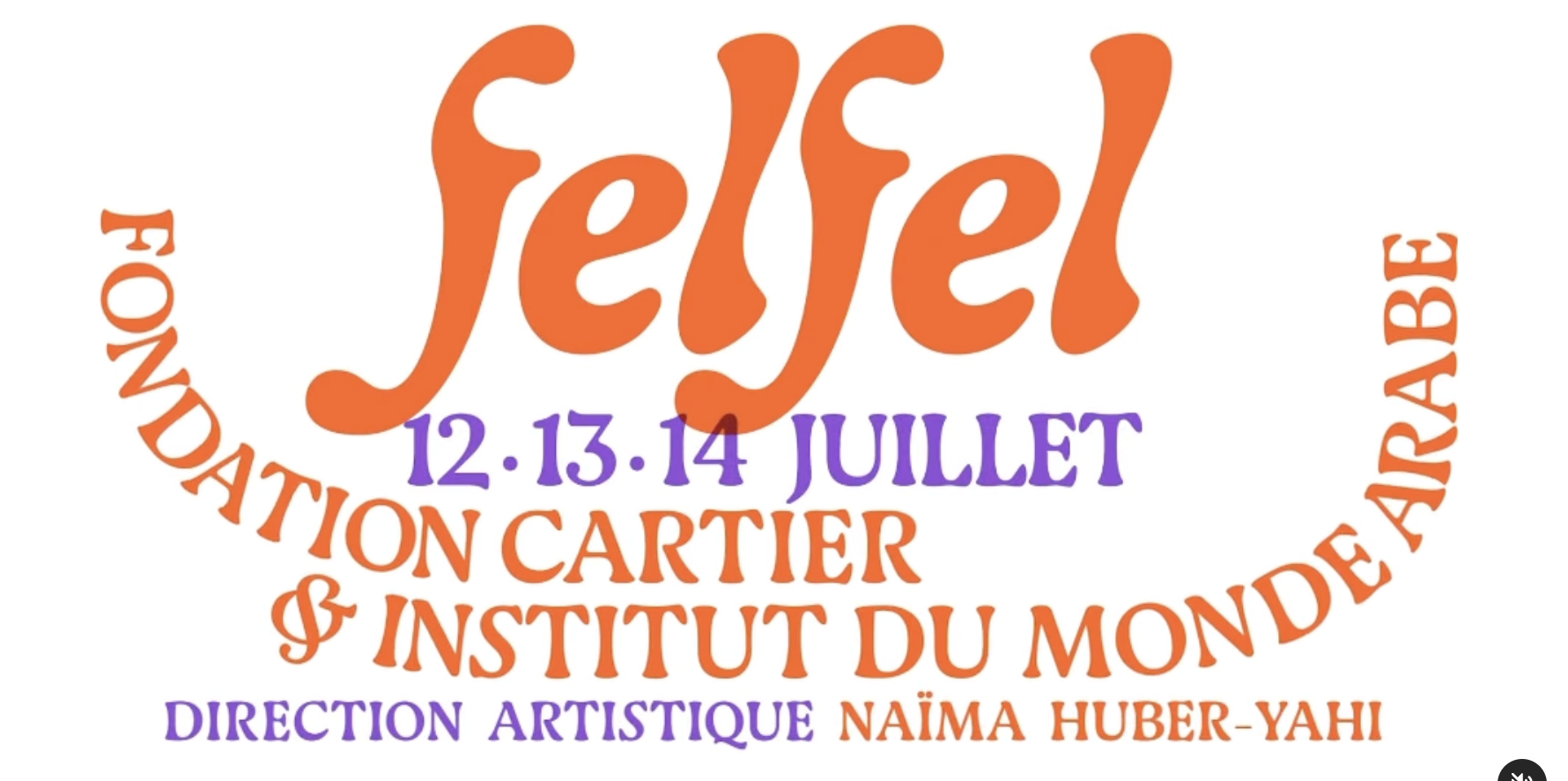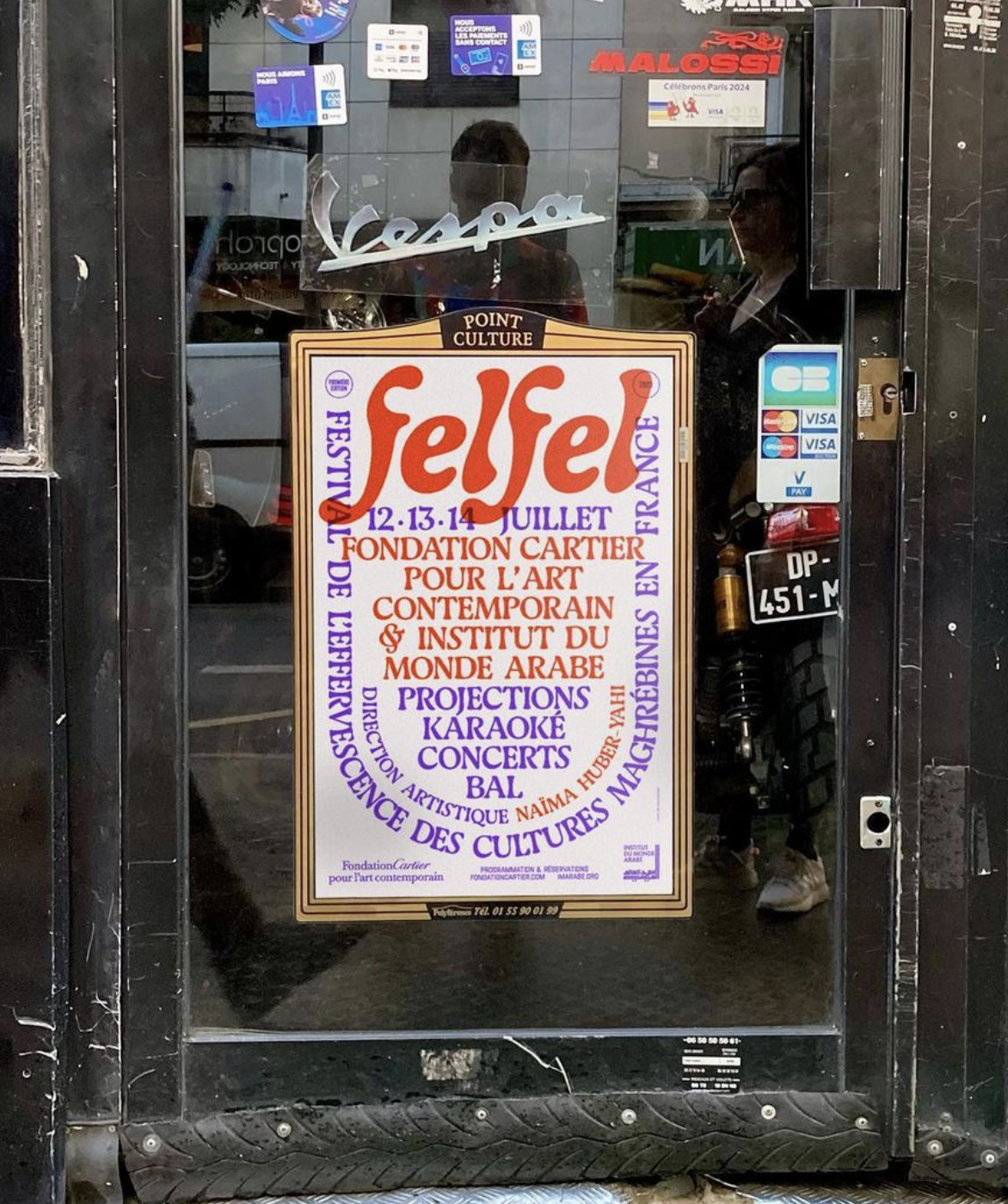 The Fondation Cartier pour l’art contemporain and the Institut du monde arabe joined forces with Naïma Huber-Yahi to present the first edition of Felfel, a festival of North African cultures in France. From July 12 to 14 2023, this event celebrated the Franco-Maghrebian scene through a shared program of concerts, meetings and screenings. It concluded on July 14 with a grand ball on the forecourt of the Arab World Institute in Paris.