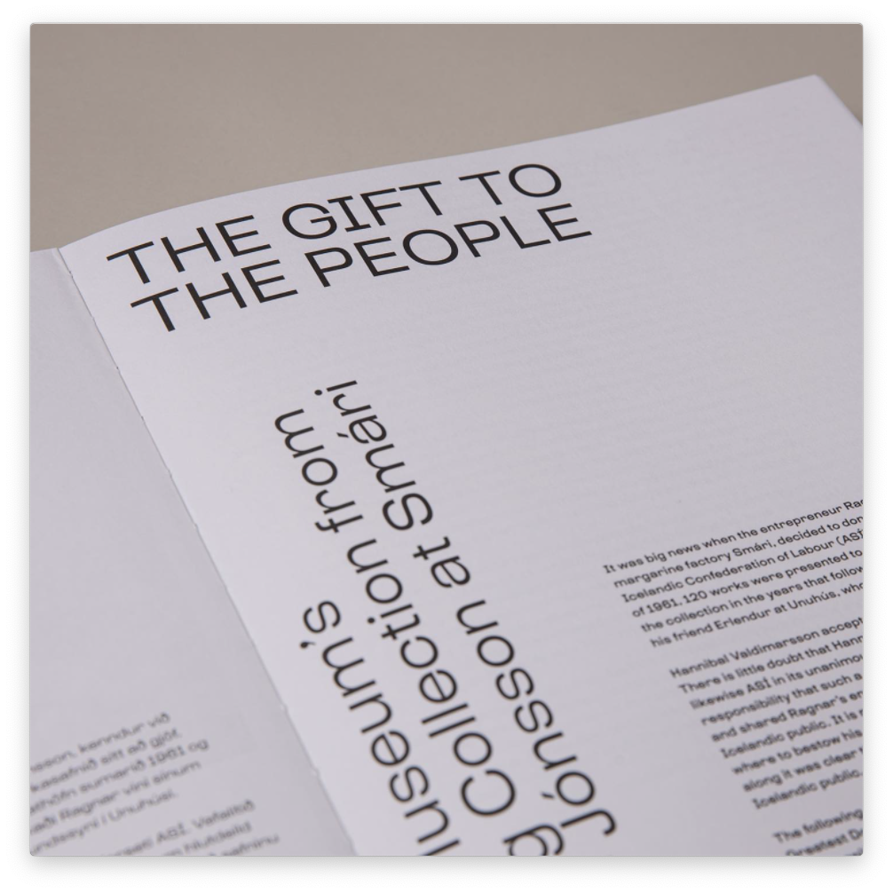 Designed by Arnar&Arnar and published by the museum itself, The Gift to the People won the golden prize at the FÍT – Icelandic Association of Graphic Designers Awards – in 2020.