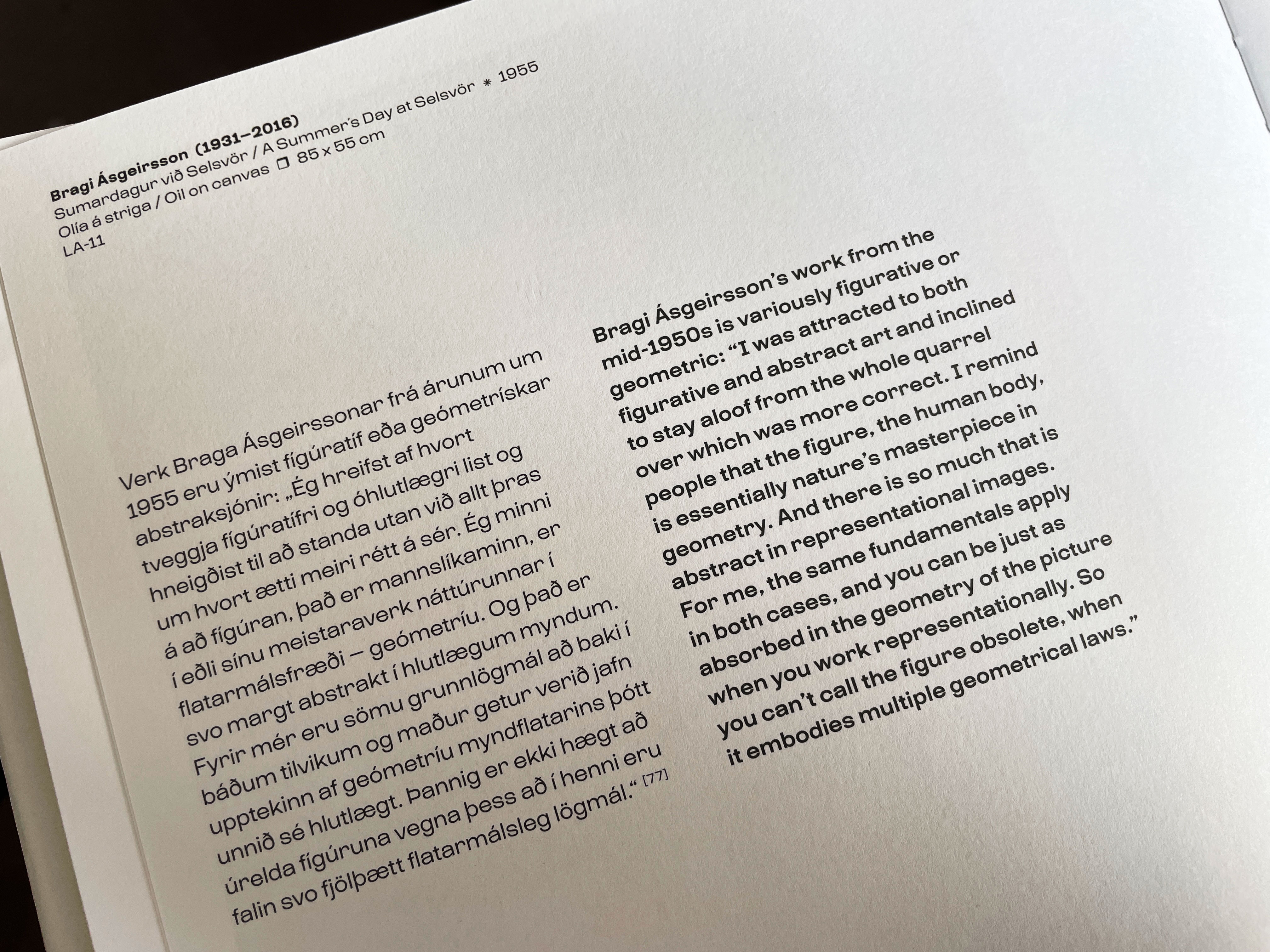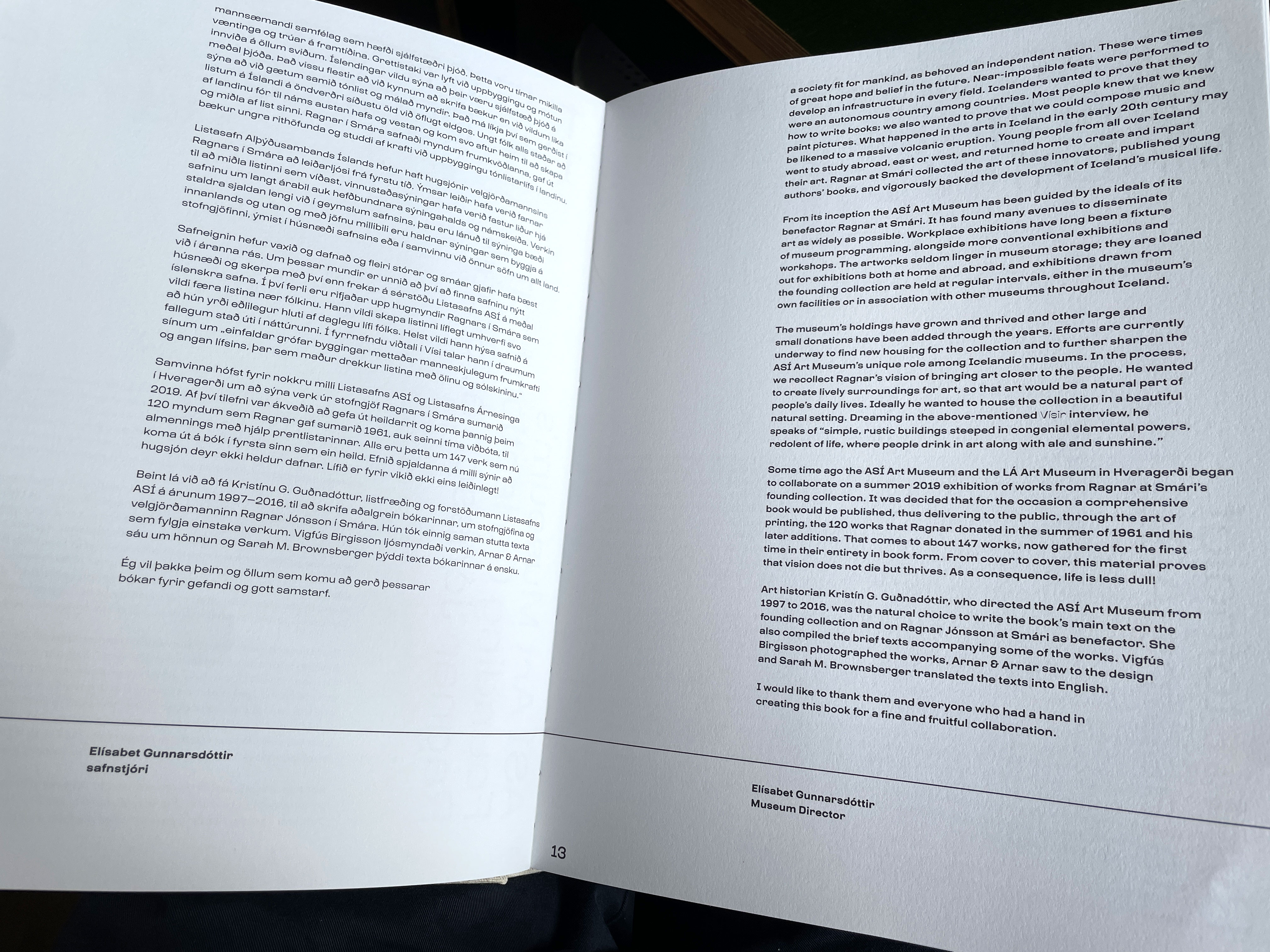 The book features reproductions of each artwork, paired with insightful commentary and historical context. Edited by museum director Elísabet Gunnarsdóttir, the book includes contributions from art historian Kristín G. Guðnadóttir, English translations by Sarah M. Brownsberger and photography by Vigfús Birgisson.