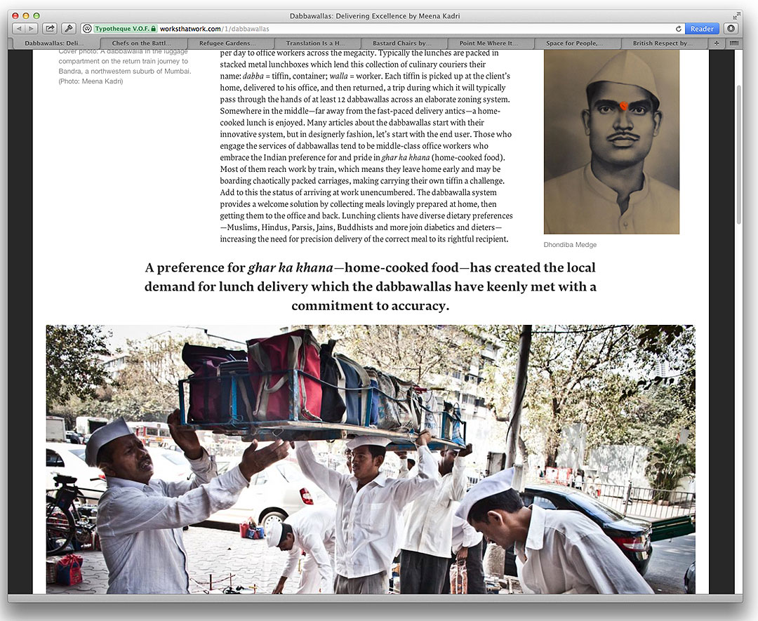 It was clear from the start that Works That Work would be an […] ambitious project: not only would it stretch across multiple platforms (online, eBook, PDF and print), but its content would also be available in various configurations. The typeface would be the sole constant characteristic, identifying the magazine regardless of whether a reader purchased a single article online or a complete issue in print. I wanted the typeface to be the voice of WTW — confident enough not to need to show off, with the comfortable, relaxed manner of an engaged storyteller, ready to handle long stories, but also small captions or titles. I named it Lava.