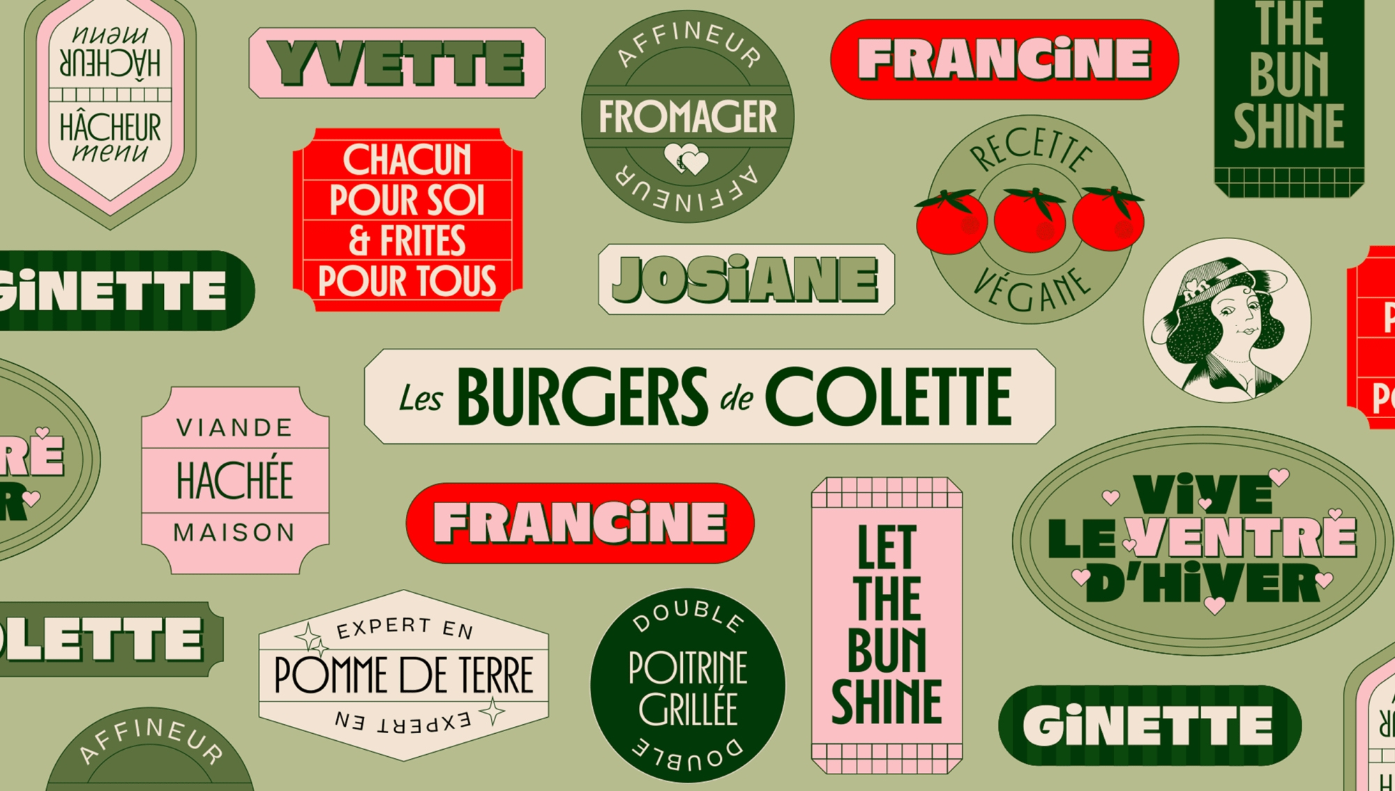 Les Burgers de Colette is a hamburger restaurant franchise that emerged in 2019 in the city of Bordeaux, France. To revamp its identity, Studio OUAM took on the project, breathing life into a complete renovation. This involved the creation of innovative graphic elements, ranging from new typefaces to captivating illustrations. Furthermore, they worked on an updated menu and a graphic style that exudes a cozier and more familiar atmosphere.