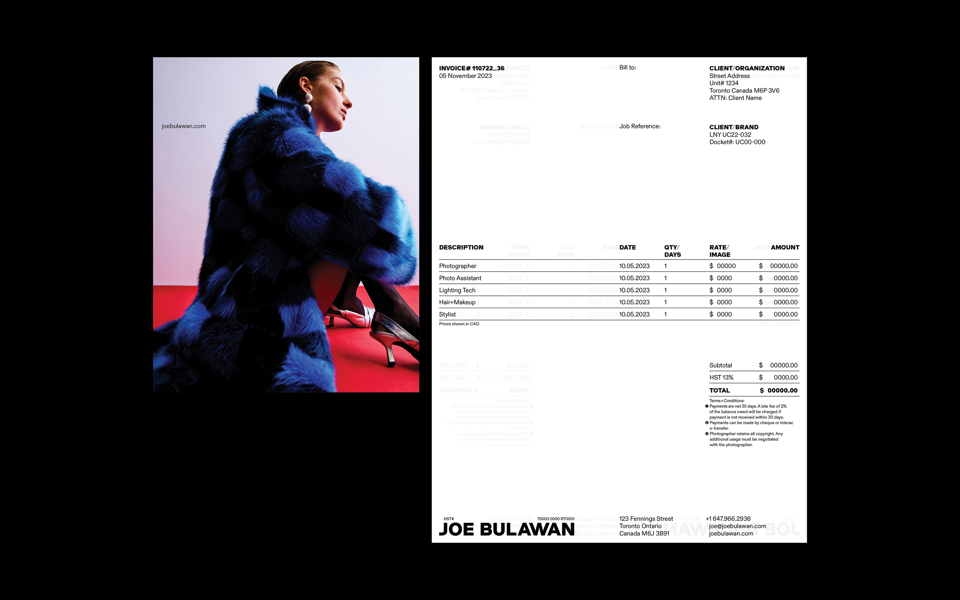 Visual identity for photographer Joe Bulawan. Pulling inspiration from roots in fashion and beauty, we developed an unmistakable brand reflective of Joe’s confidence and deep passion for his work. The identity revolves around a bold wordmark, harmonious font pairing, and a grid system built around facial proportions. The identity is versatile in its ability to be bold or restrained, allowing the exceptional photography to do the heavy lifting or for the design to stand on its own. It’s built to emphasize Joe’s impressive range as he continues to expand his body of work.