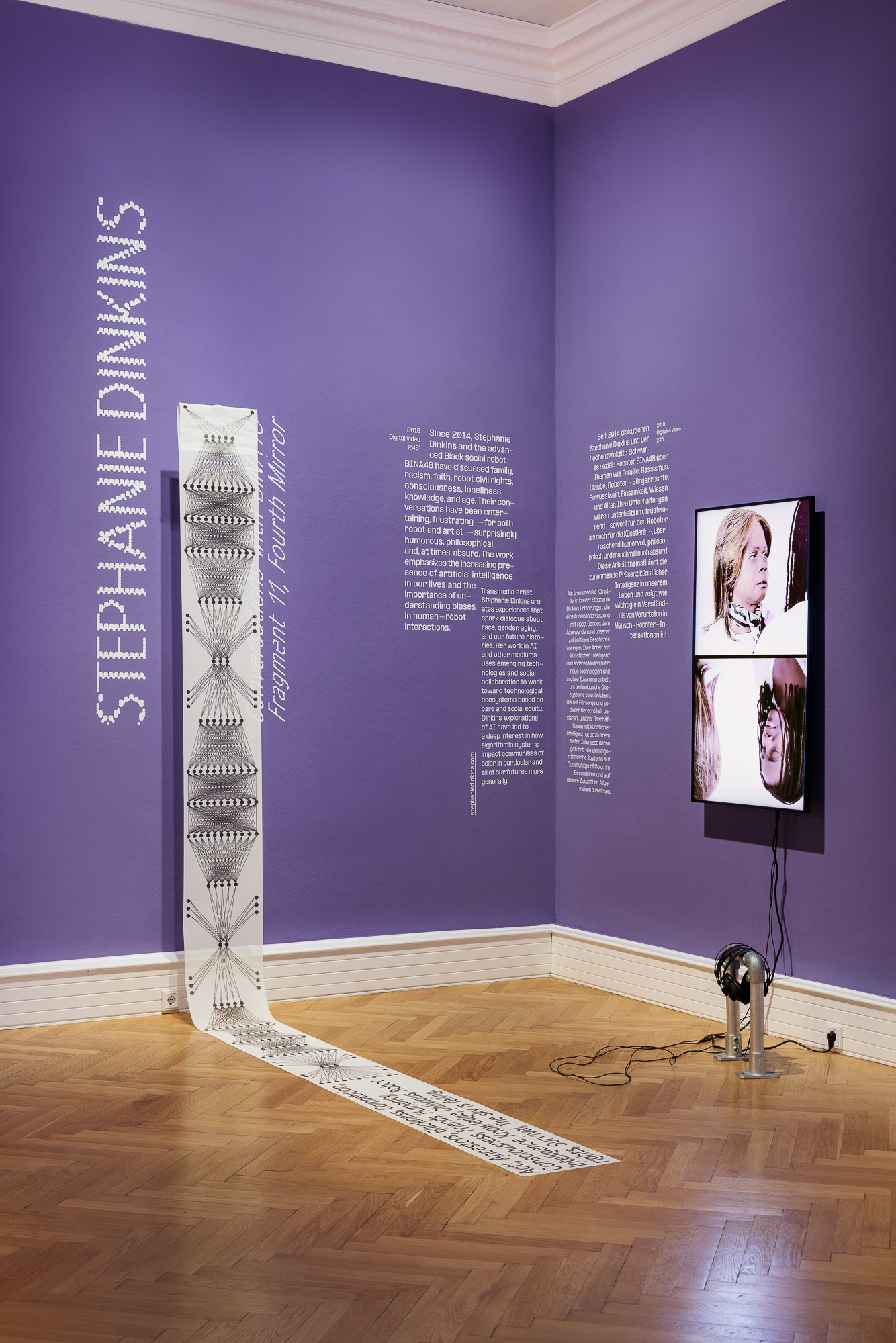 The title of the exhibition “Extensions of Self” refers to a conversation between artist Stephanie Dinkins and the Black social robot Bina48, who asks her if robots should be considered an extension of human existence.