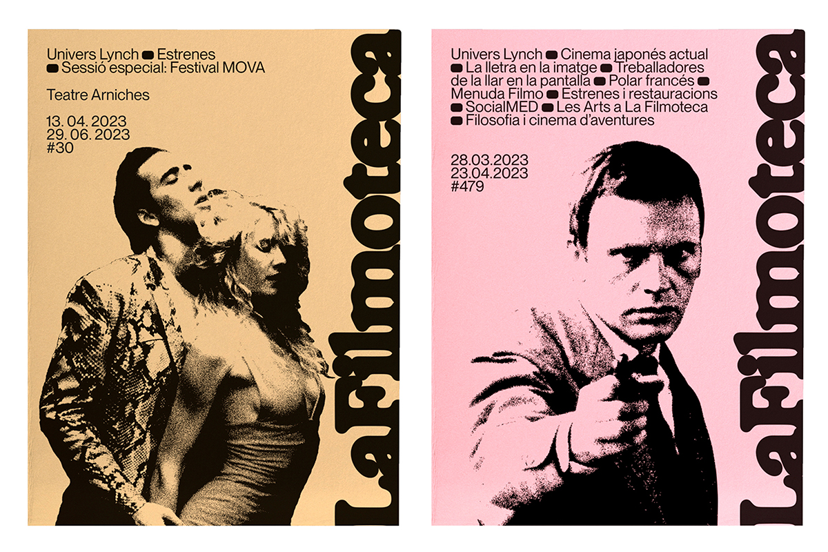 The visual identity of La Filmoteca was designed by Democràcia, using Exposure by Federico Parra Barrios and Neue Montreal by Mathieu Desjardins.