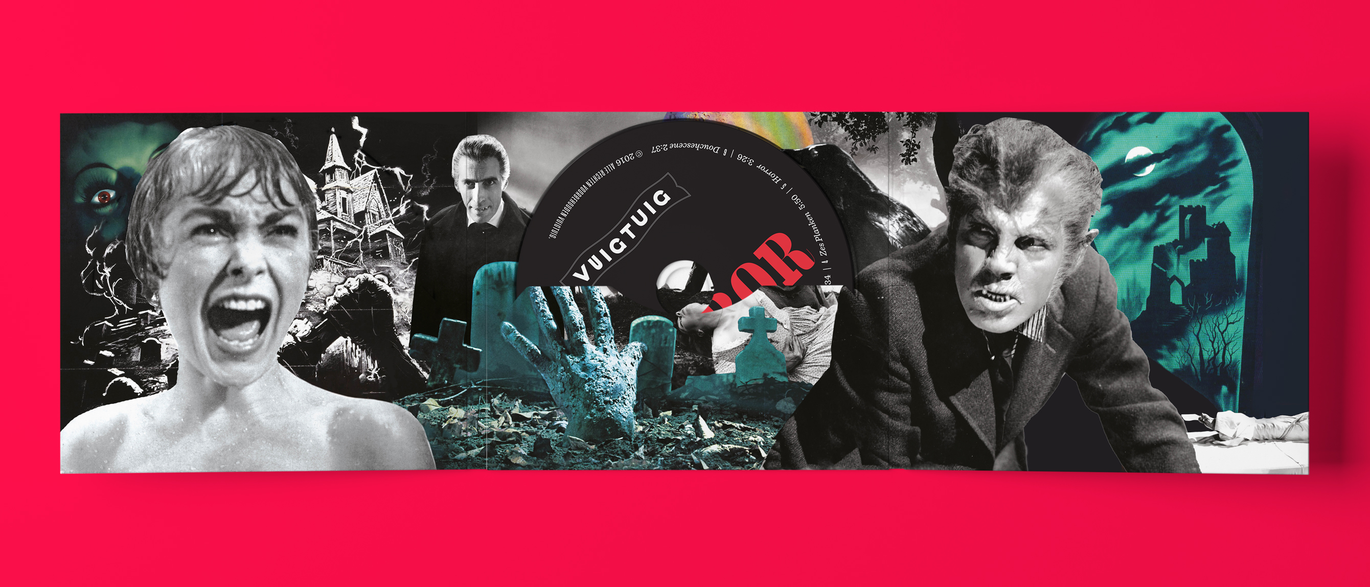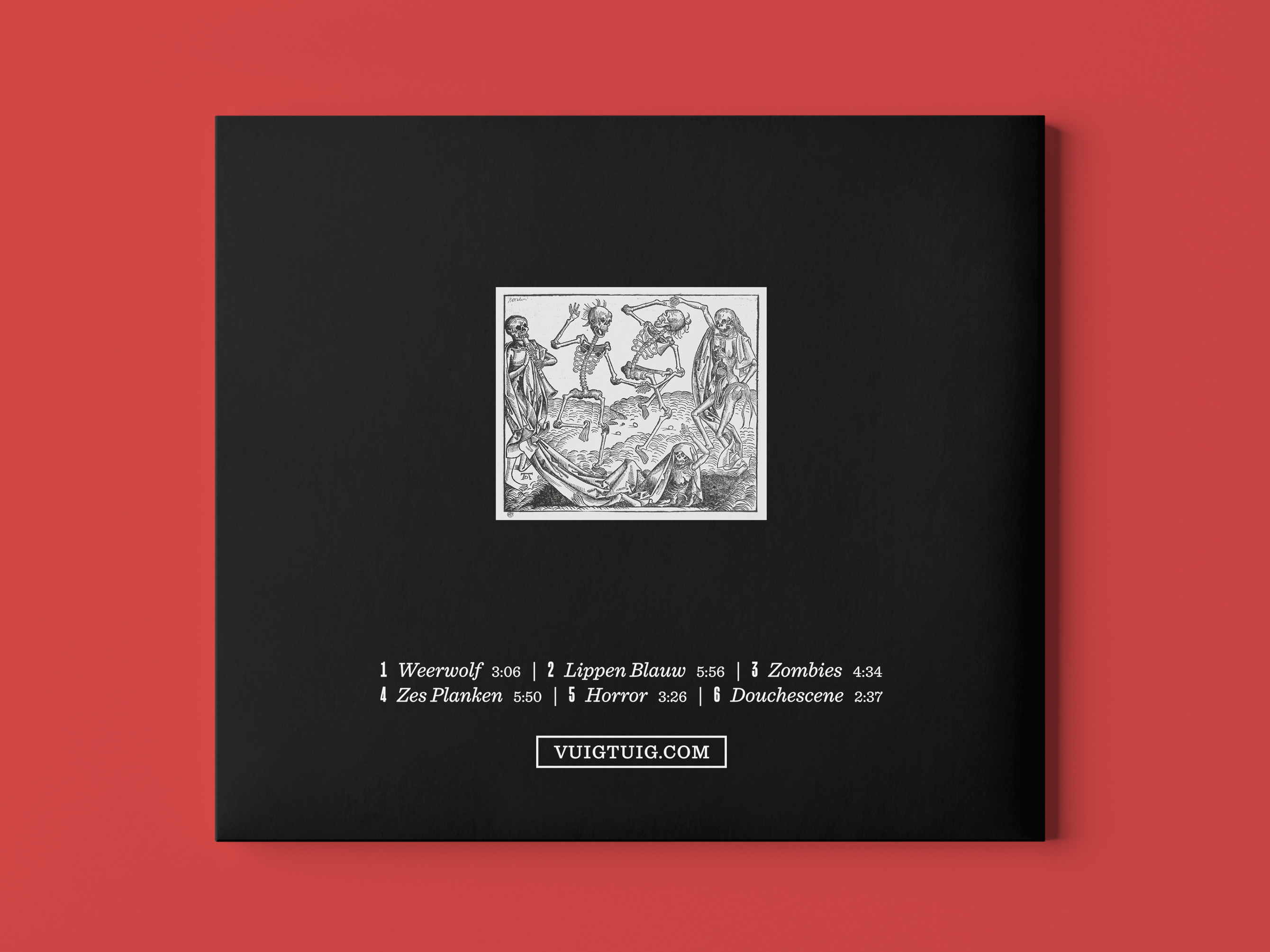 During Halloween 2016, The Hague based indie band Vuigtuig released their second album, full of macabre and morbid humour and haunting fictional horror sound tracks. The album artwork uses the recently released Krana Fat for its band logo, and the album title is rendered in Nihilist (released just in time for finishing the artwork). Information is set in a mix of Sentinel, Venus Condensed and Errata.