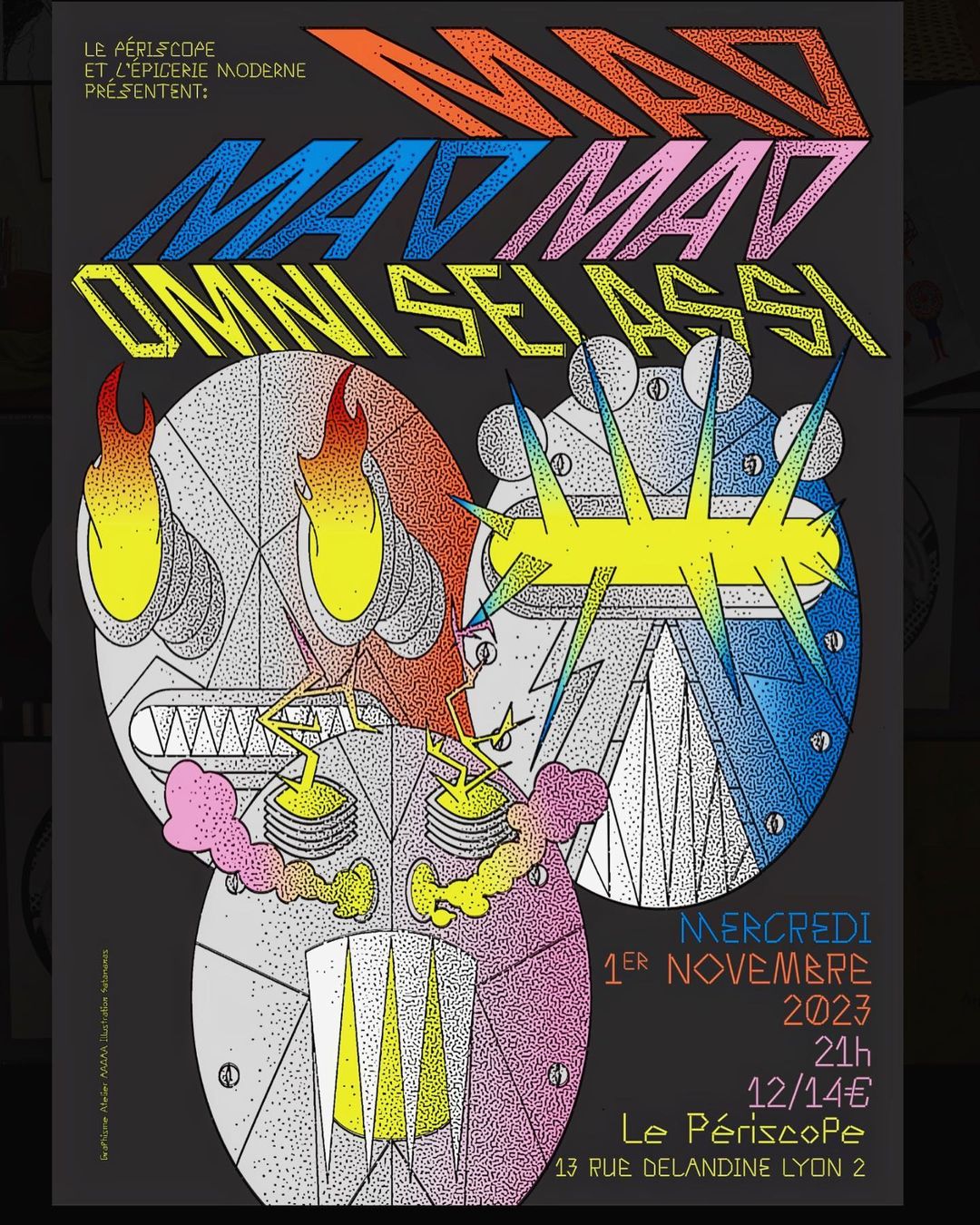 MADMADMAD and Omni Selassi at Le Périscope concert poster