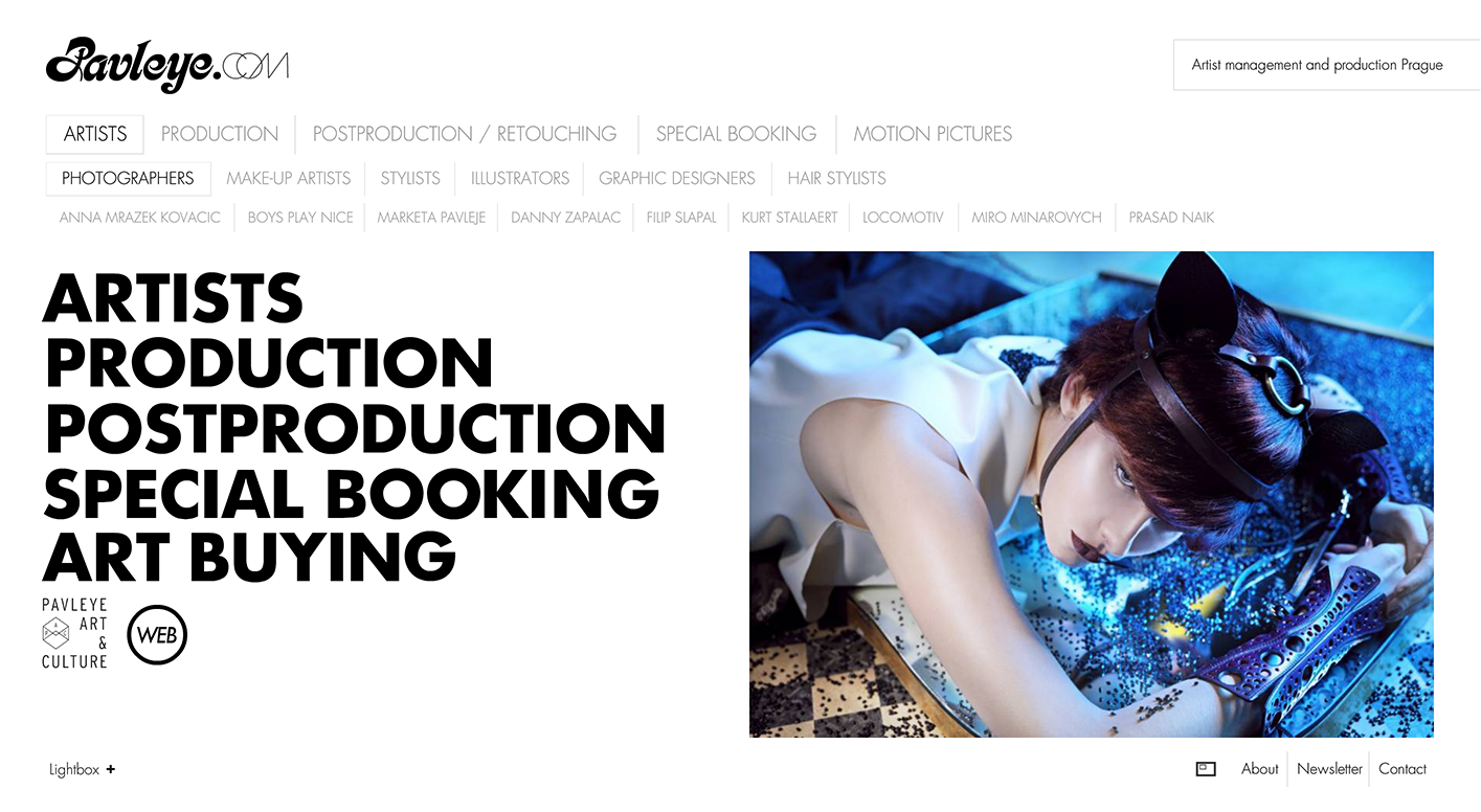 Pavleye is an artist management and photo production agency in Prague. The logo uses Kalligraphia and ITC Avant Garde (with alts). While the fonts contrast visually, they are historically in sync, as both were popular 1970s releases.