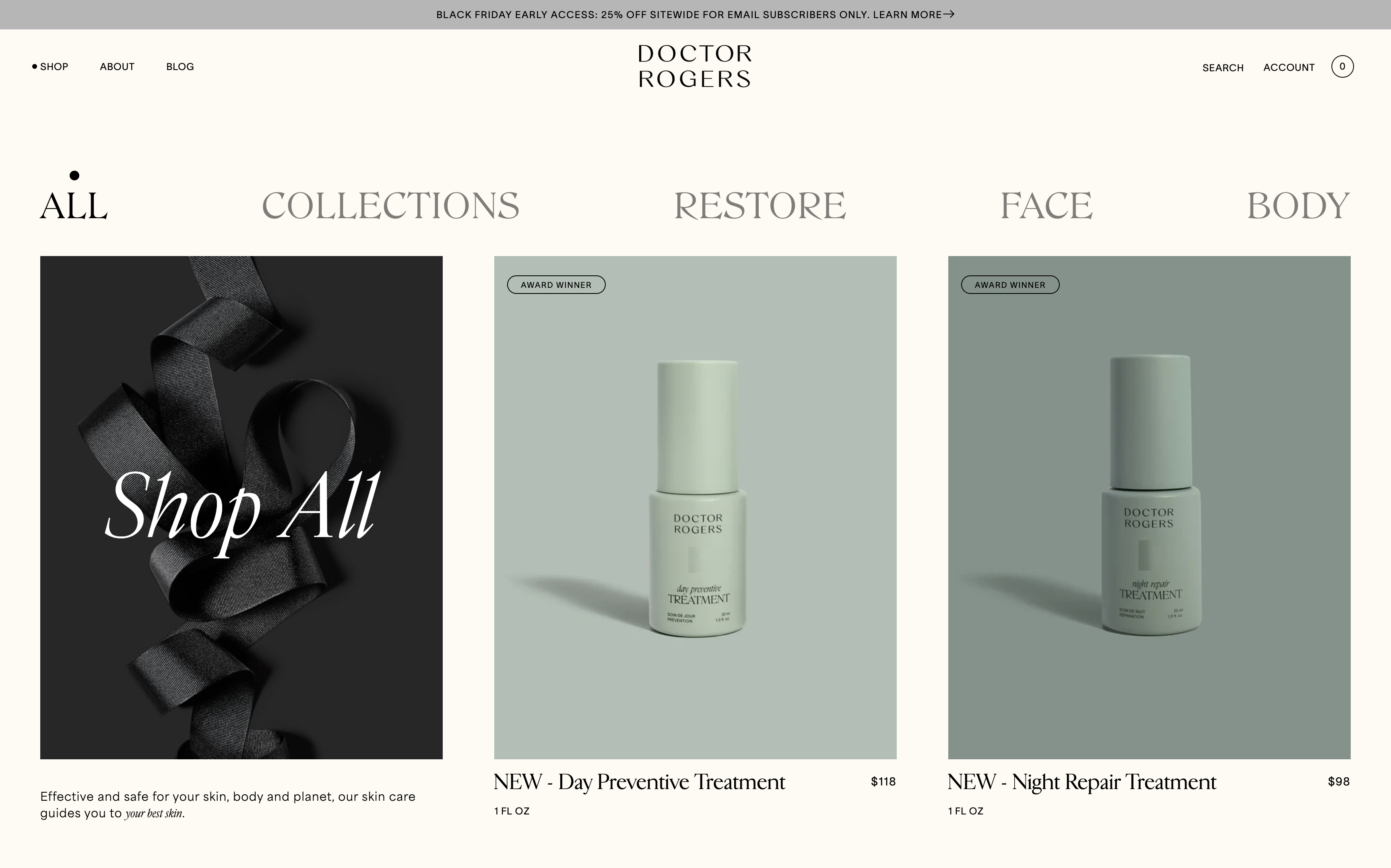 Doctor Rogers, specializing in dermatologist-formulated skin care products, sought to rebrand and enhance their website to mirror their informed, skin-positive approach. This rebrand, executed by Forner Studio, transformed Doctor Rogers from its original identity as Doctor Rogers Restore to a more sophisticated Doctor Rogers Skin Care, featuring a refined, elegant packaging design.