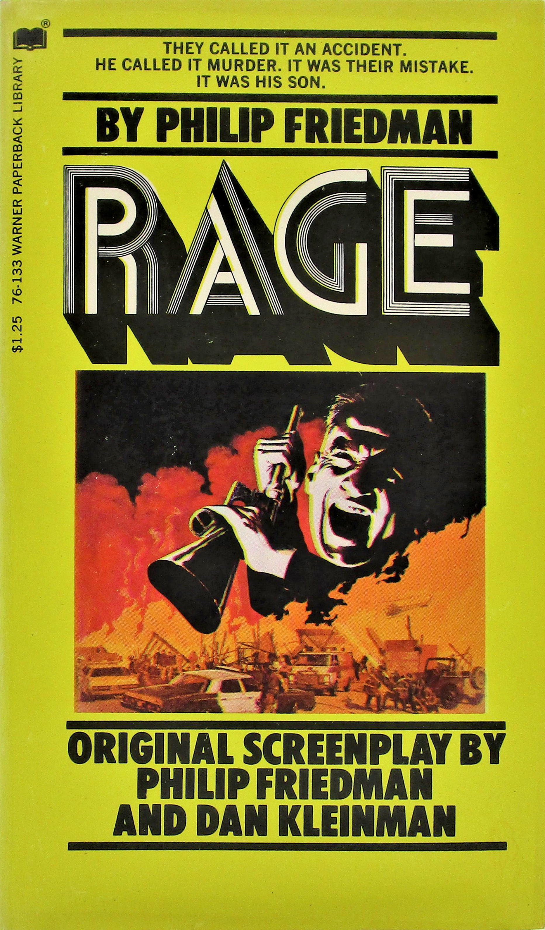 This movie tie-in paperback edition of Philip Friedman’s novel-turned-screenplay Rage was published by Warner Paperback Library in February 1973.