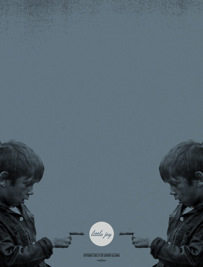 “A gig poster for the band Little Joy. We think it might have something to do with parallel dimensions. A limited edition, two-color (black, silver), hand-pulled 18″×24″ screenprint on slate blue stock.” — Cast Iron